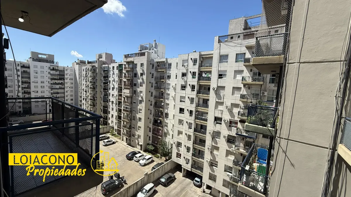 Three-room apartment with 2 bedrooms, living-dining area and separate kitchen. Seventh floor, courtyard-facing (contrafrente) with a balcony. Includes an (assigned) parking space and building lift; building fees are about ARS 90,000 as of March 2026. Maximum occupancy is 4 people; pets are not accepted. Rental guarantee: rental insurance (seguro de caución). Payment is by bank transfer, with payment due between the 1st and 10th.