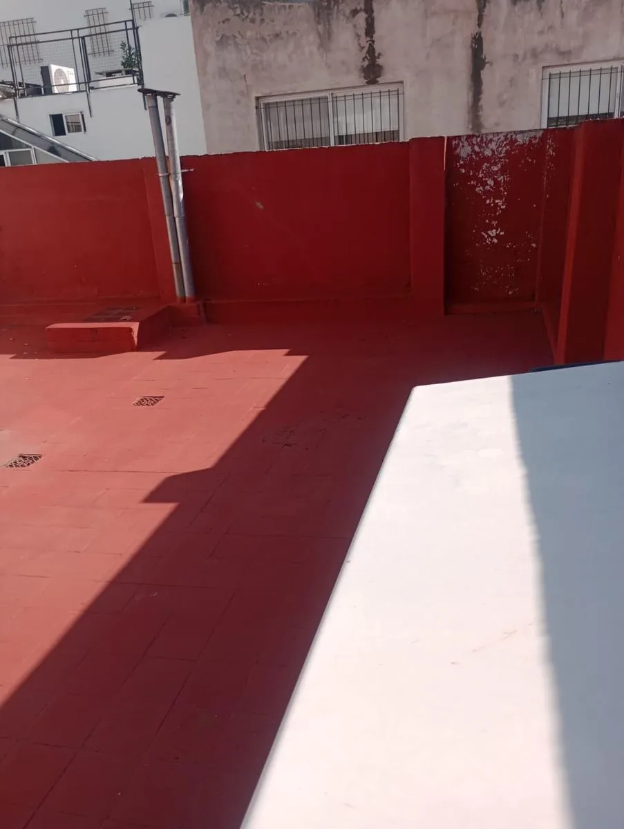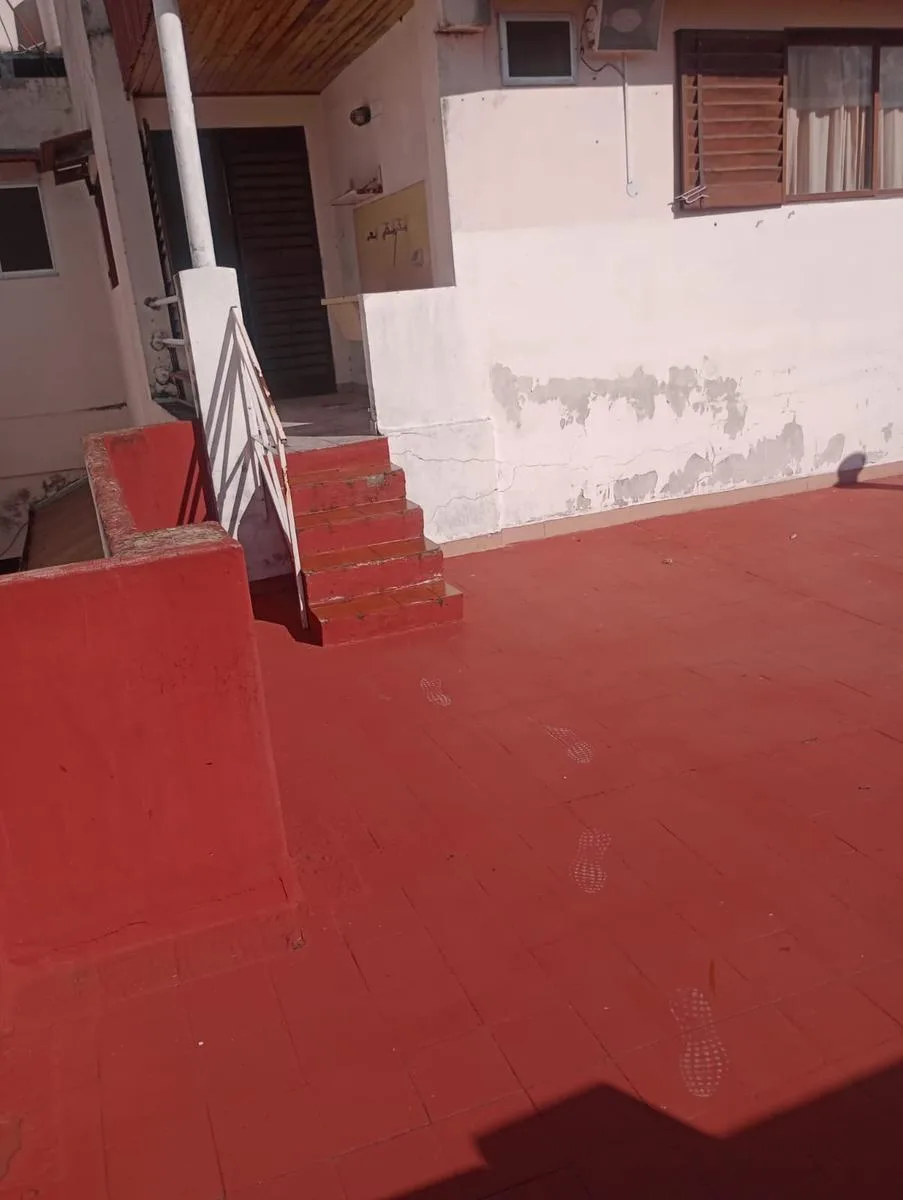 Ground-floor or upper unit (PH) for rent in Villa Lugano with approximately 48 m². It includes a living-dining area, kitchen, laundry area, a full bathroom, and a terrace. There are 2 bedrooms, one of them on a loft accessed by stairs.