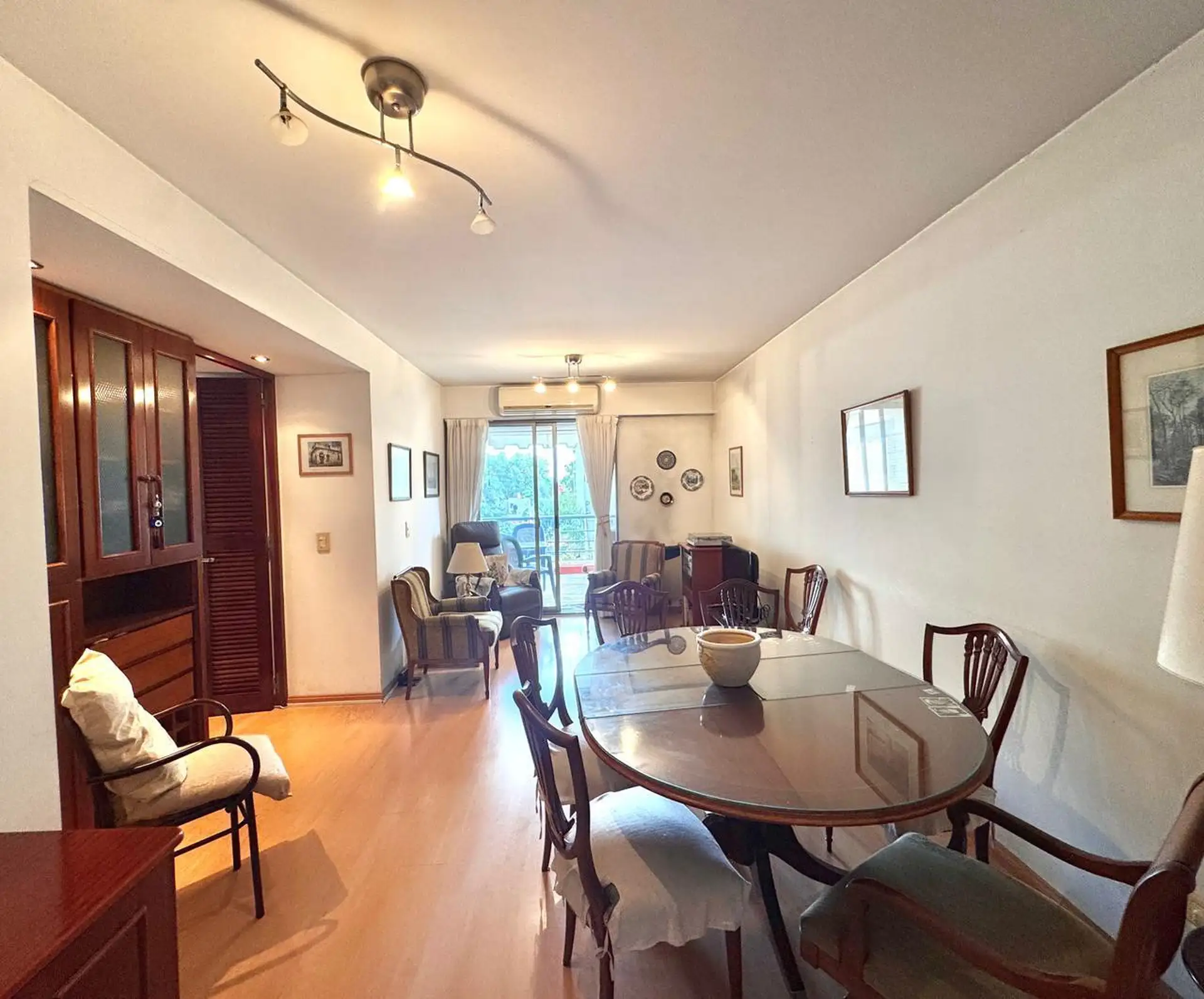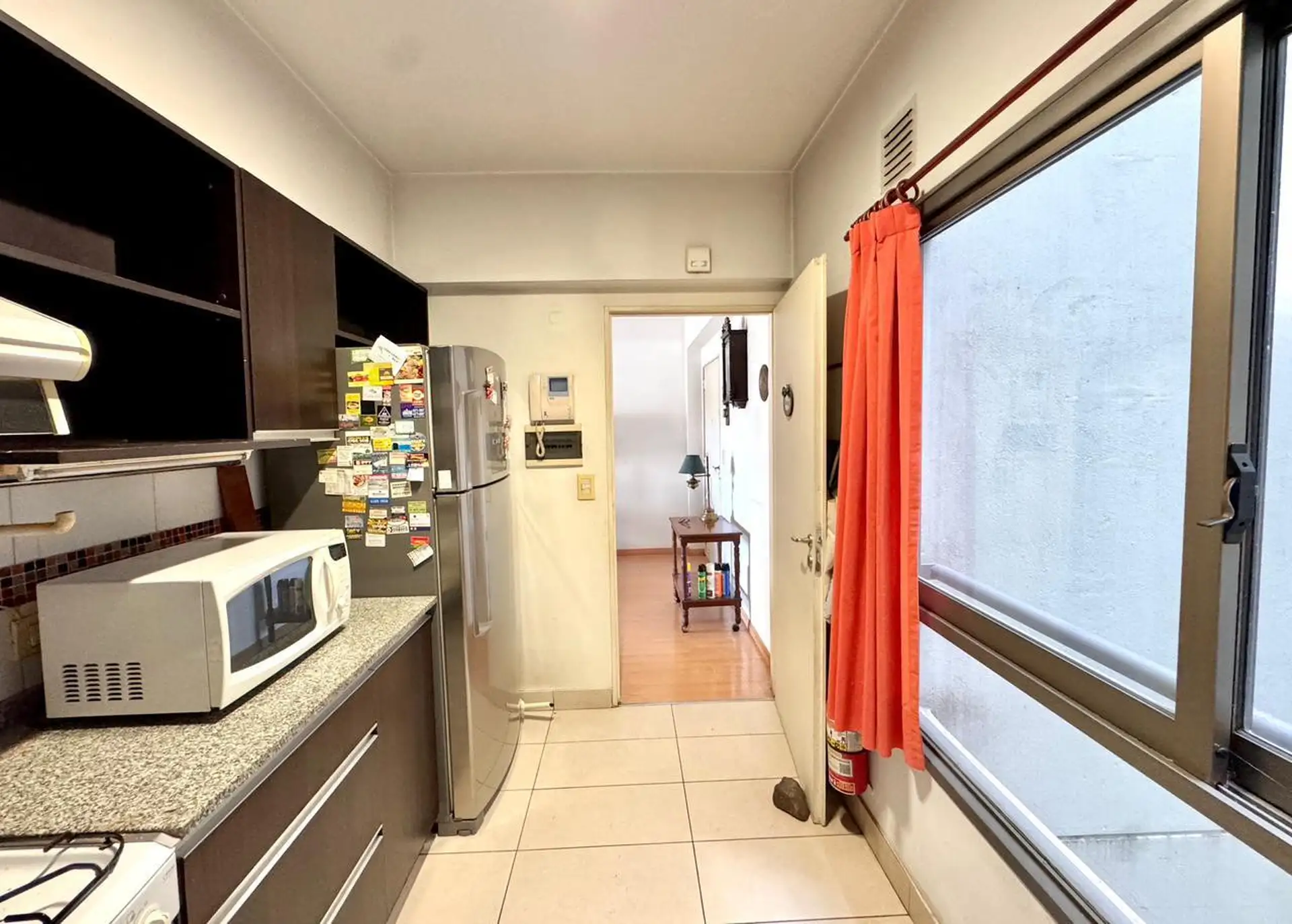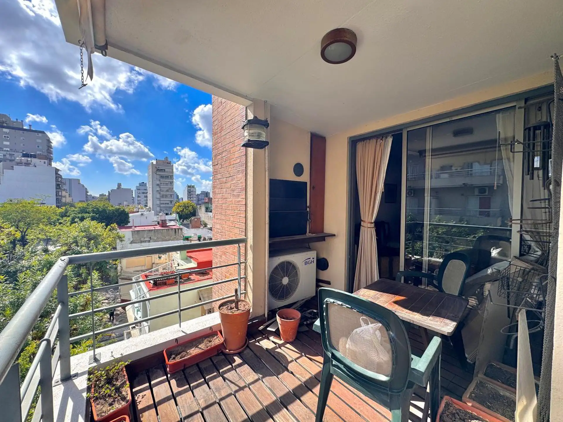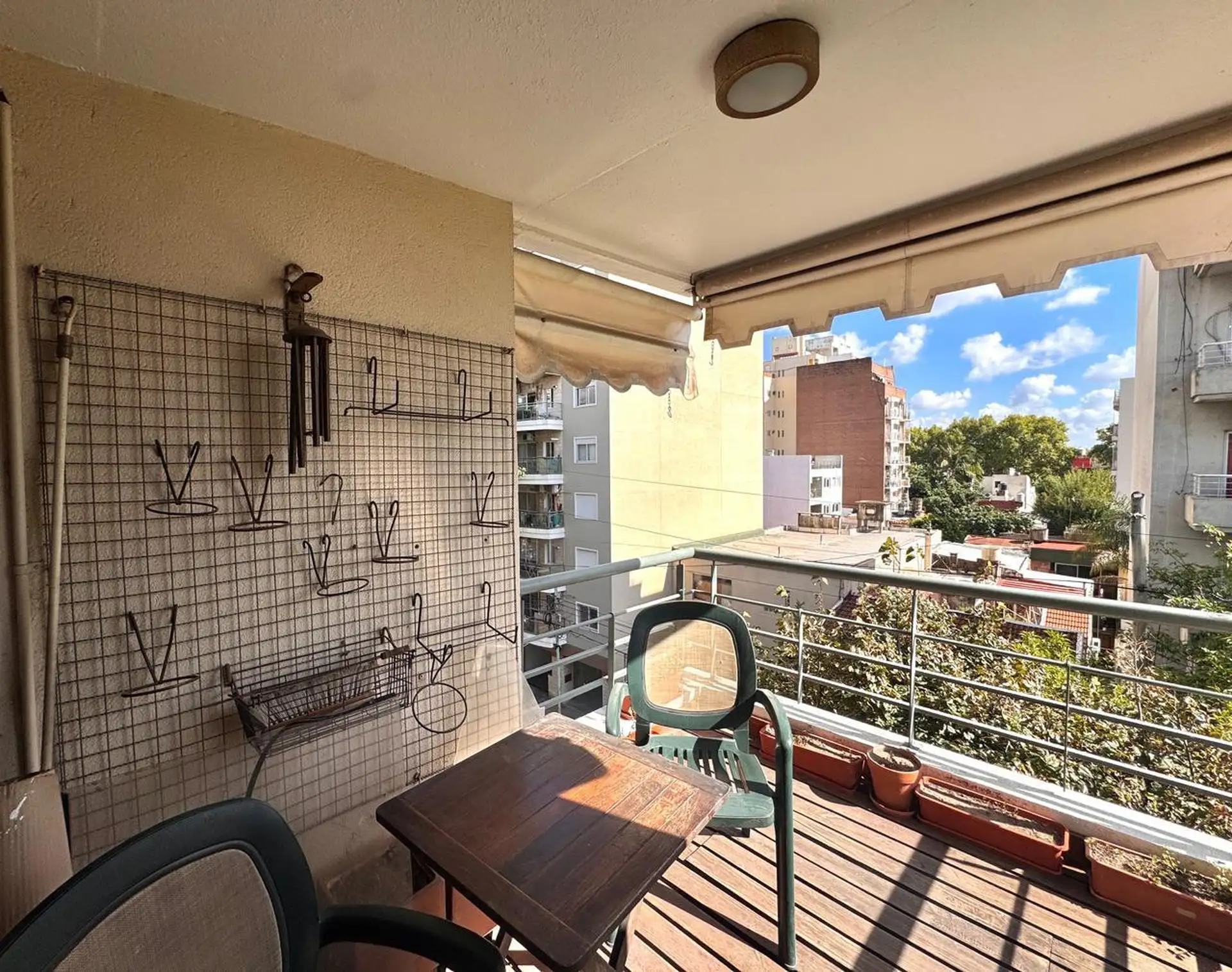 Three-room apartment with a private balcony and outdoor grill in Villa Pueyrredón, Buenos Aires. It has a living-dining area, an independent kitchen, and two bedrooms, one en suite and both with wardrobes. There are 2 bathrooms, one en suite and another with a shower in the hallway. Building amenities include a quincho, outdoor grill area and a communal-use terrace. No pets allowed.