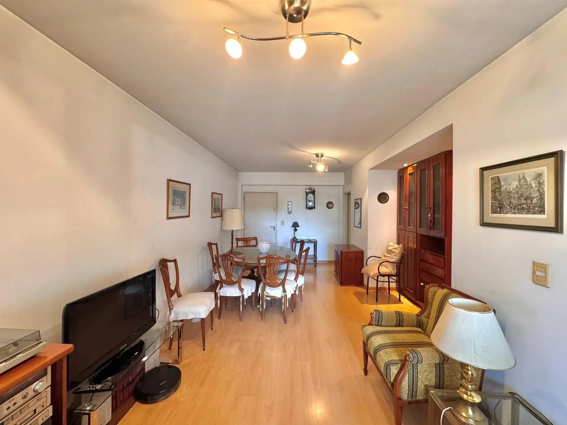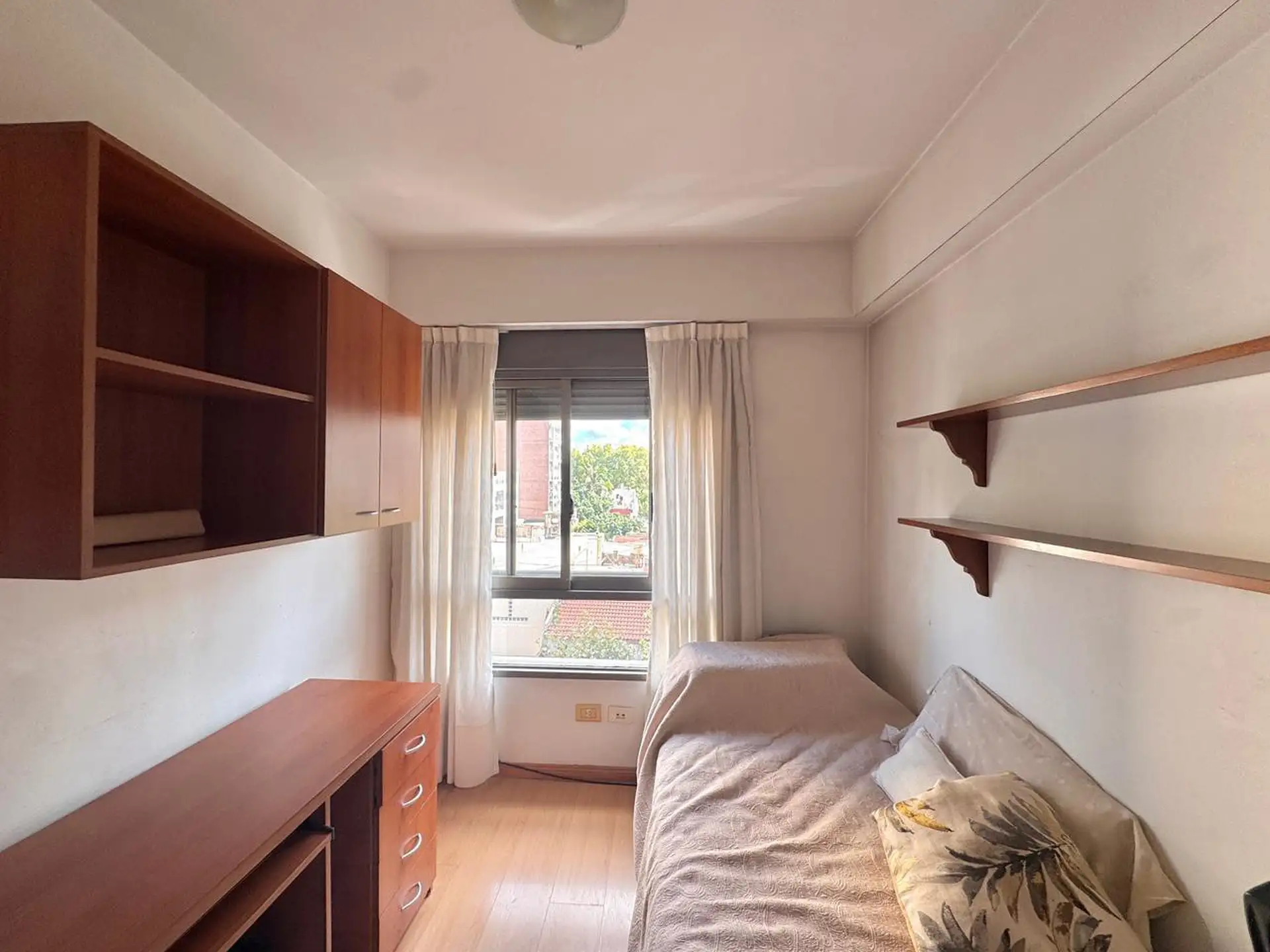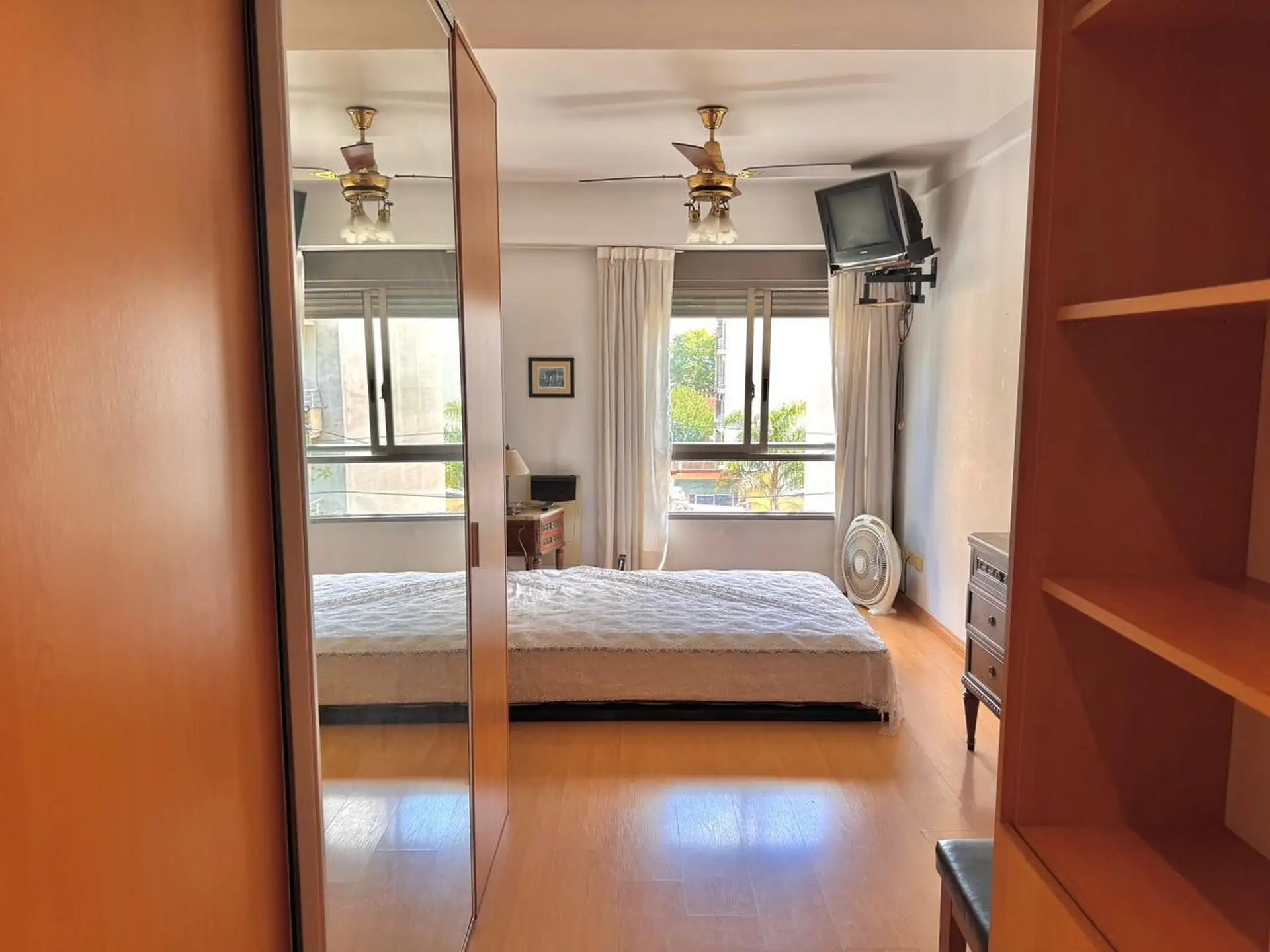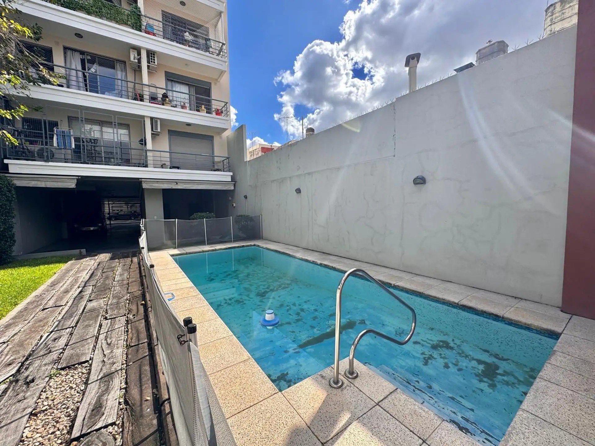 Three-room apartment with a private balcony and outdoor grill in Villa Pueyrredón, Buenos Aires. It has a living-dining area, an independent kitchen, and two bedrooms, one en suite and both with wardrobes. There are 2 bathrooms, one en suite and another with a shower in the hallway. Building amenities include a quincho, outdoor grill area and a communal-use terrace. No pets allowed.