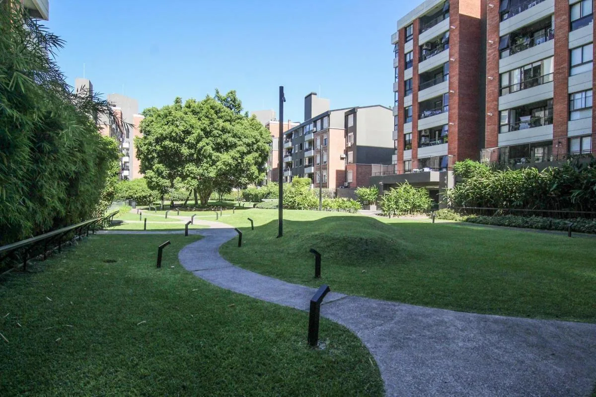 Three-room apartment for rent in Las Fresias Garden, Villa Santa Rita, on Remedios Escalada de San Martín 2750. The unit is on the 2nd floor, lateral, inside a 5-storey traditional construction building. It has 63.57 m² total (58.80 m² covered and 5.07 m² uncovered), a living-dining area, 2 bedrooms, one en suite with a dressing area, 1 additional full bathroom, and an enclosed balcony with a grill; air conditioning. The complex offers 24-hour security, a pool, a football pitch, a communal room