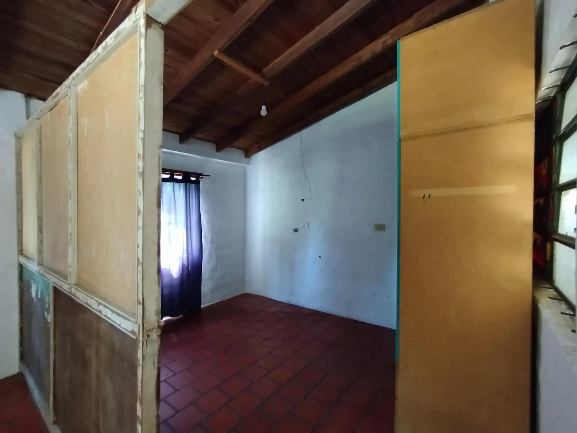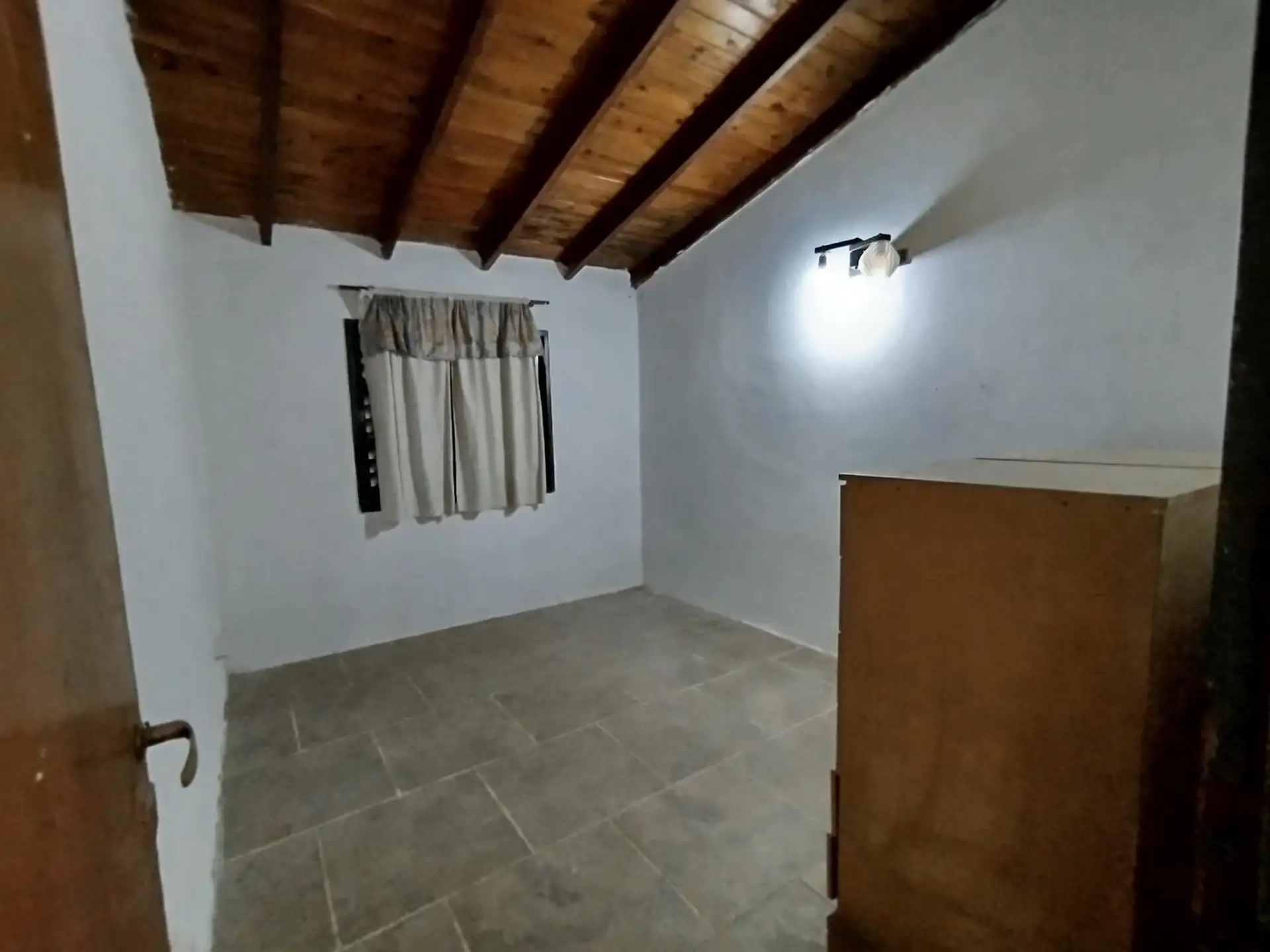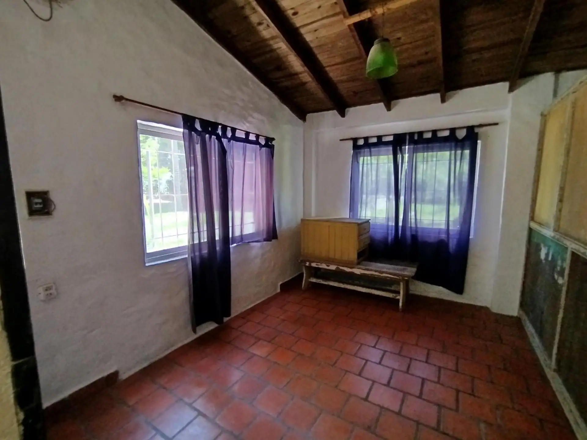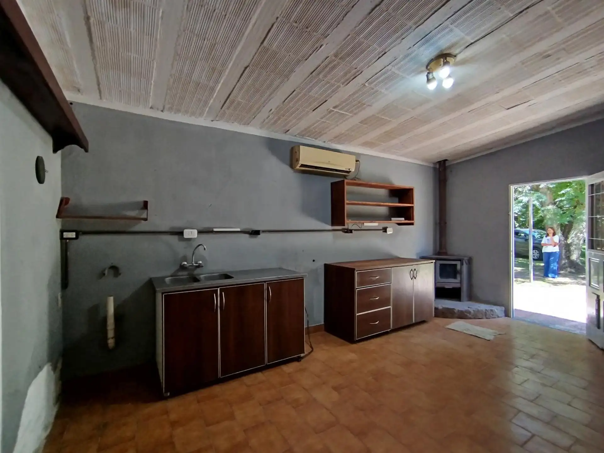 House with 2 bedrooms and 1 bathroom. Separate kitchen-dining area with air conditioning. Includes a small outbuilding (galponcito), a grill area and a landscaped, tree-filled garden, plus a communal-use annex (SUM).