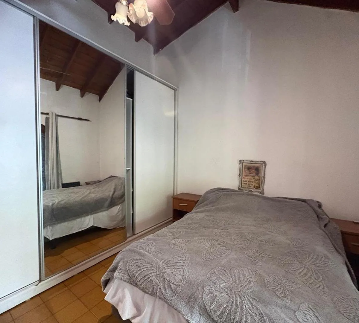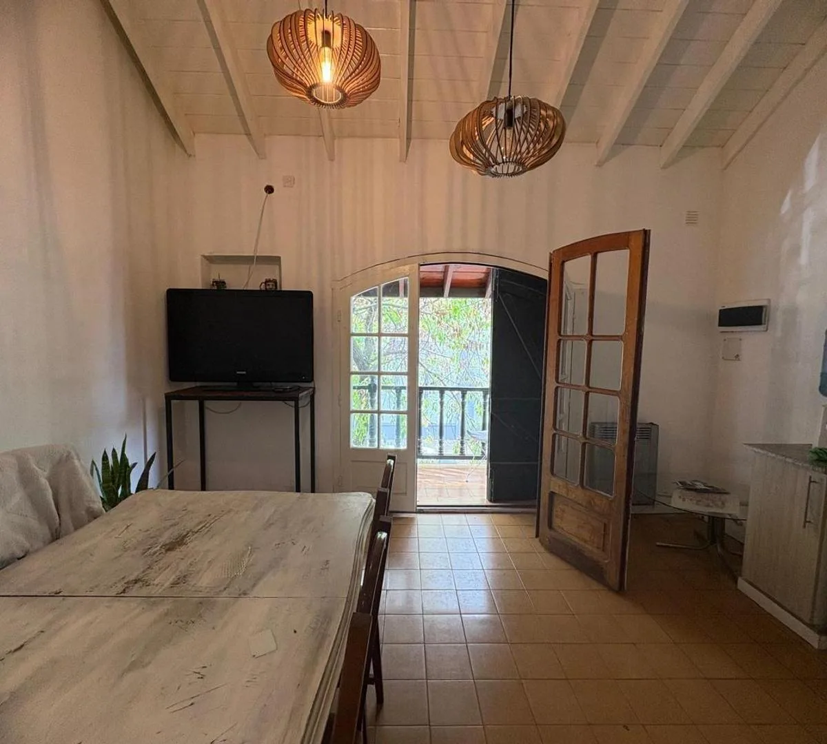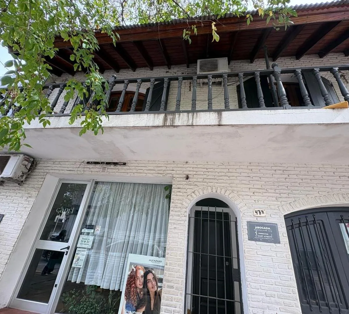 House for rent in Zárate with an independent entrance. The unit is arranged over 2 levels: on the first level there is an open-plan kitchen-dining area with access to a street-facing balcony, 2 bedrooms with built-in closets, and a full bathroom. On the second level there is a covered gallery/playroom-style space. The property is unfurnished, has balanced-flue heating in the main living area and in one bedroom, and air conditioning in another bedroom. No building fees. Immediate availability.