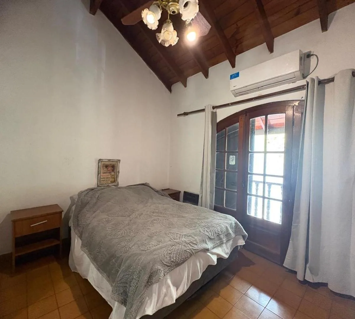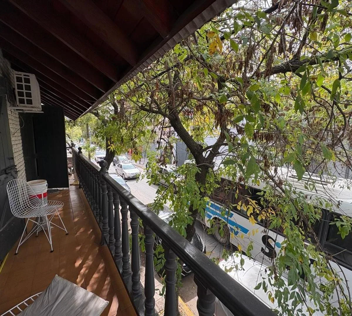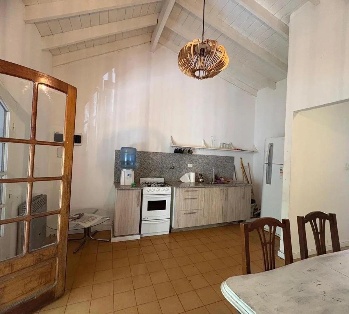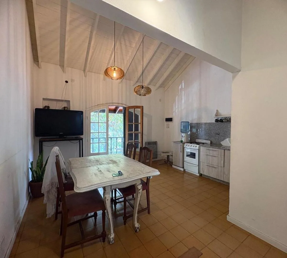 House for rent in Zárate with an independent entrance. The unit is arranged over 2 levels: on the first level there is an open-plan kitchen-dining area with access to a street-facing balcony, 2 bedrooms with built-in closets, and a full bathroom. On the second level there is a covered gallery/playroom-style space. The property is unfurnished, has balanced-flue heating in the main living area and in one bedroom, and air conditioning in another bedroom. No building fees. Immediate availability.