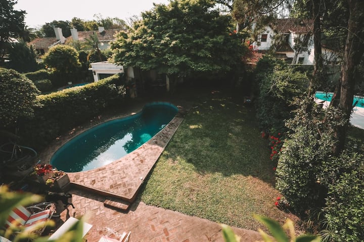 Apartment with 3 bedrooms in Acassuso, in San Isidro. It has a swimming pool and garden. A 15-minute walk from Hipódromo de San Isidro, with the Rio de la Plata coast about 200 metres away.