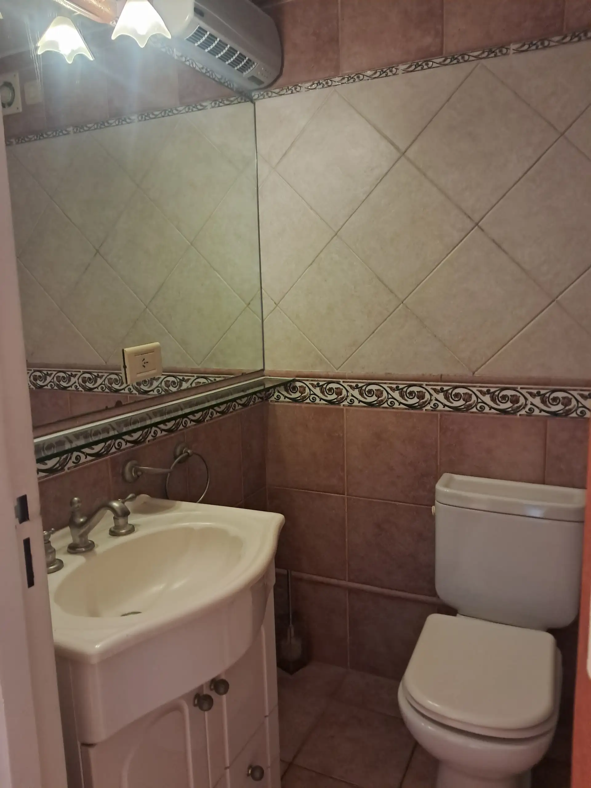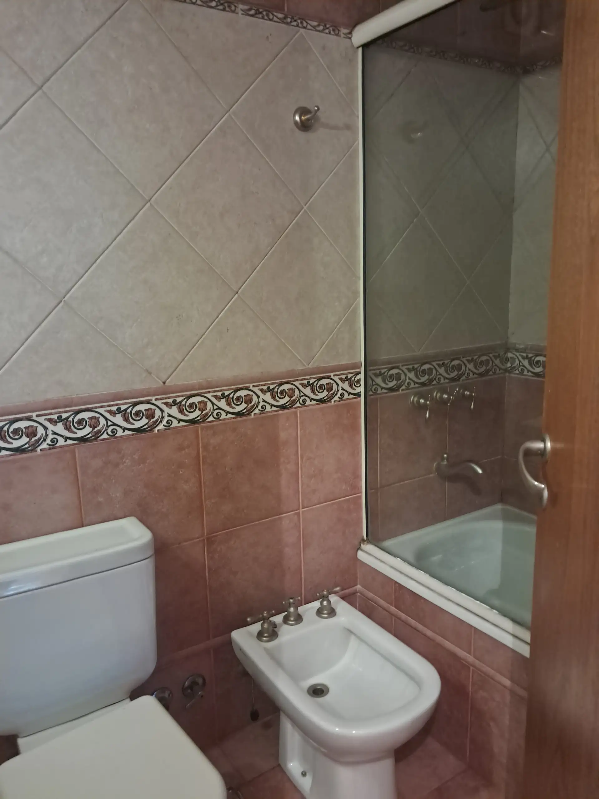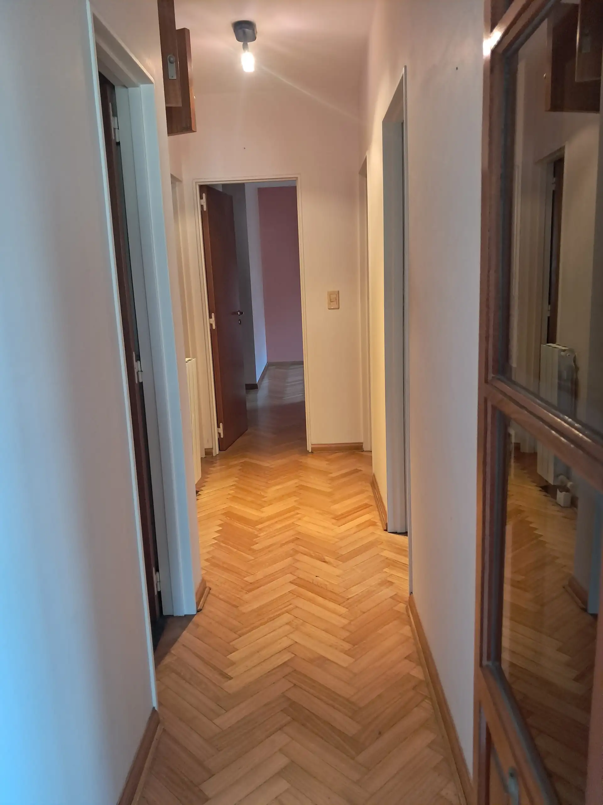 Three-bedroom apartment with a large living room at the building’s upper levels. Includes a street-facing balcony with sliding blinds, separate dining kitchen with daily-meal area, laundry area, a guest toilet, and a full bathroom plus an en-suite bedroom with dressing room and hydro-massage shower. Hot water is provided by an individual boiler; parquet floors with plastified guatambú, air conditioning in all rooms, and cable/TV connections in all rooms. The unit has a fixed, covered (assigned)