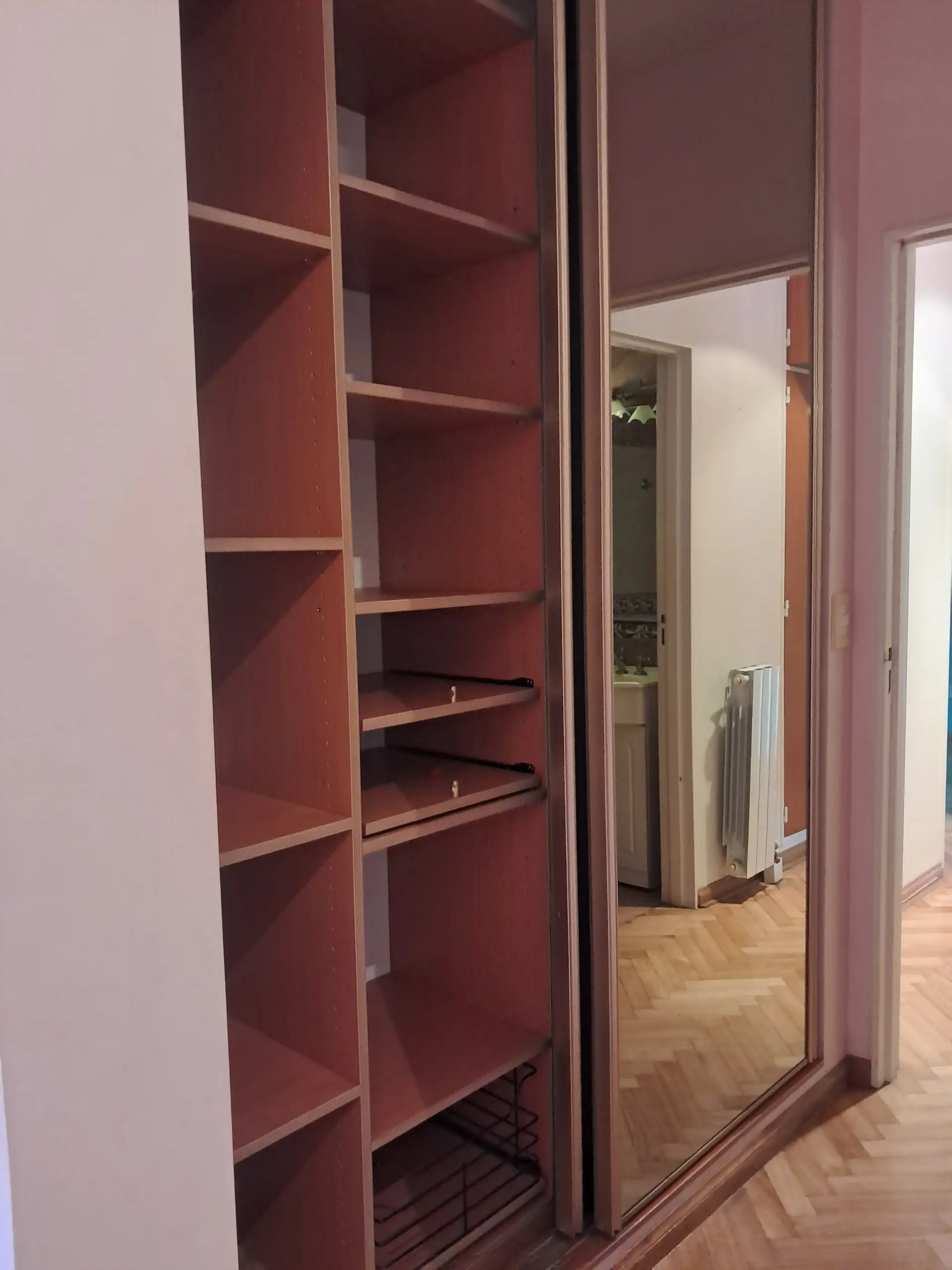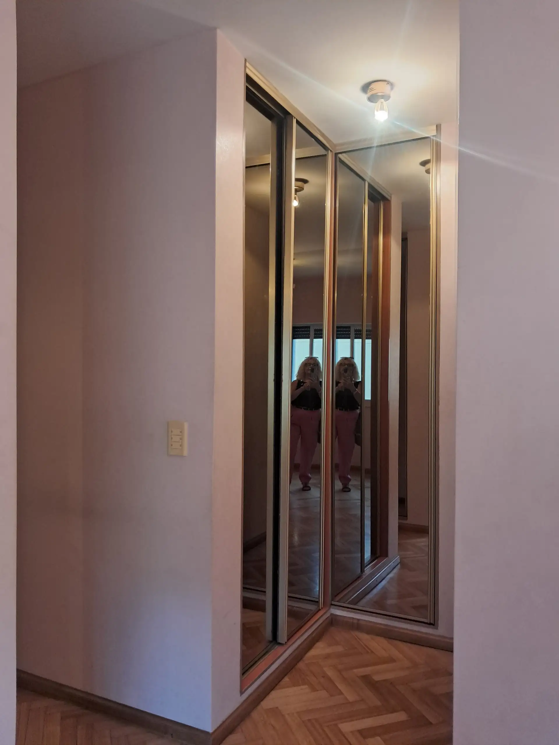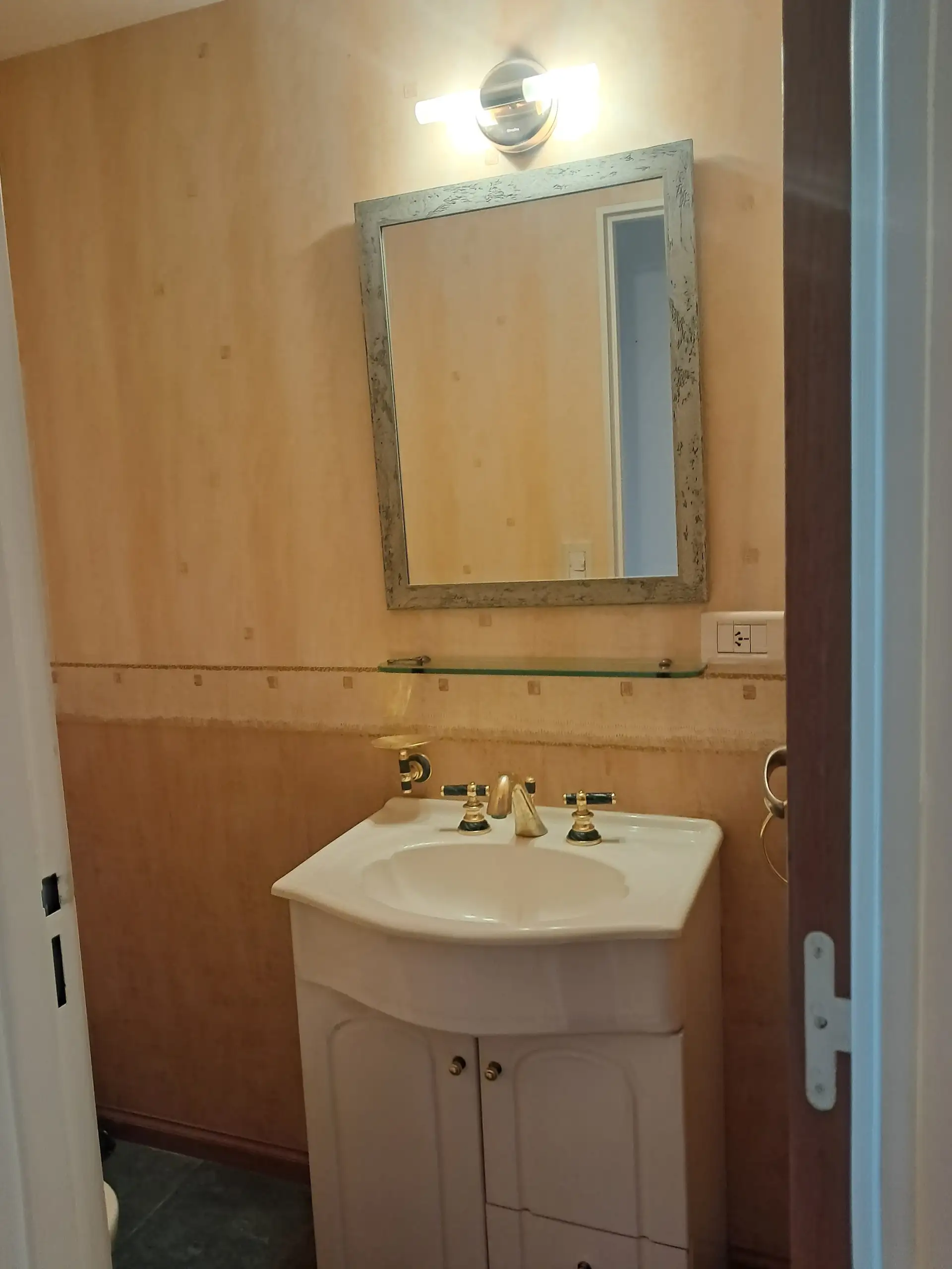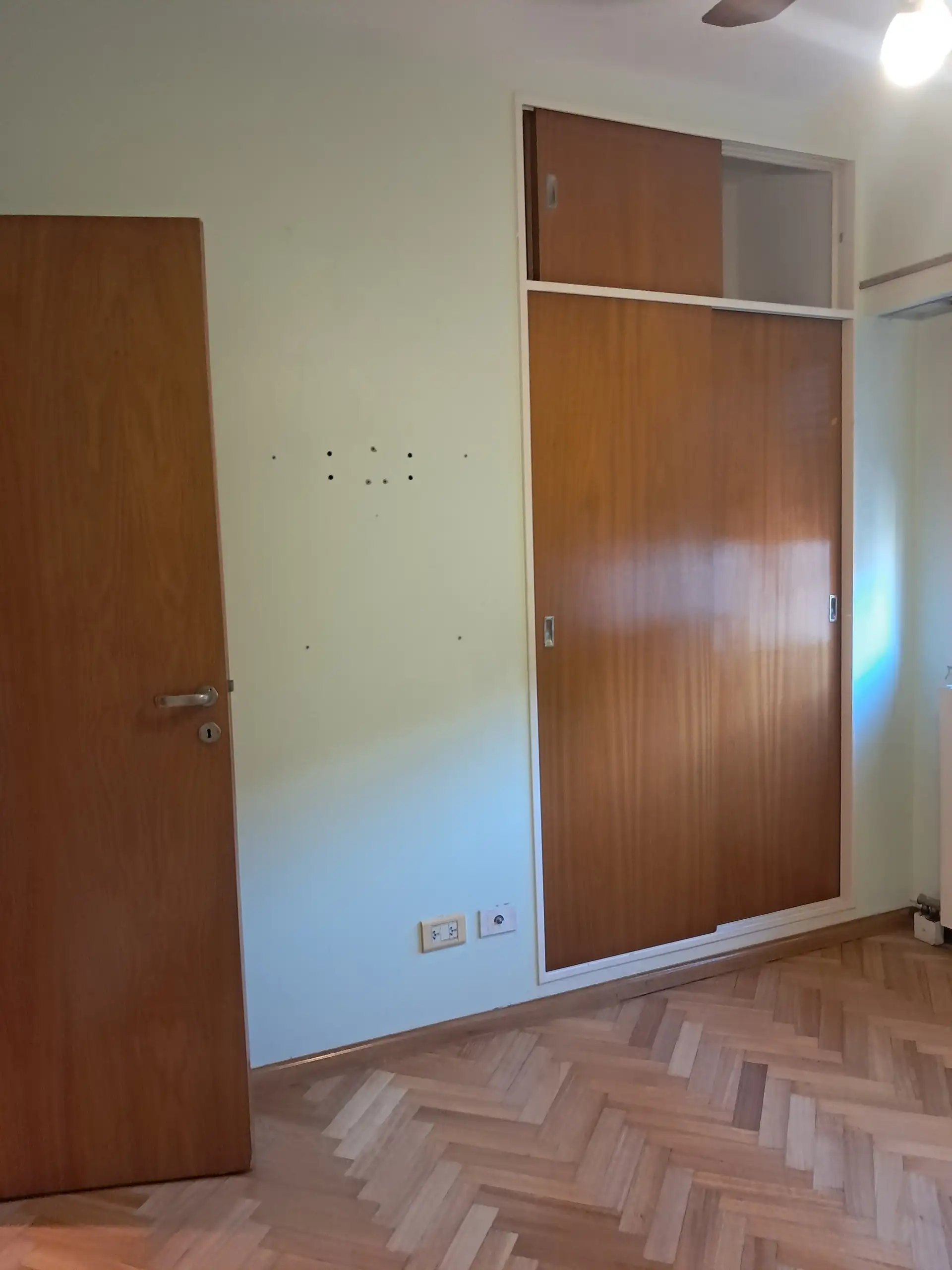 Three-bedroom apartment with a large living room at the building’s upper levels. Includes a street-facing balcony with sliding blinds, separate dining kitchen with daily-meal area, laundry area, a guest toilet, and a full bathroom plus an en-suite bedroom with dressing room and hydro-massage shower. Hot water is provided by an individual boiler; parquet floors with plastified guatambú, air conditioning in all rooms, and cable/TV connections in all rooms. The unit has a fixed, covered (assigned)