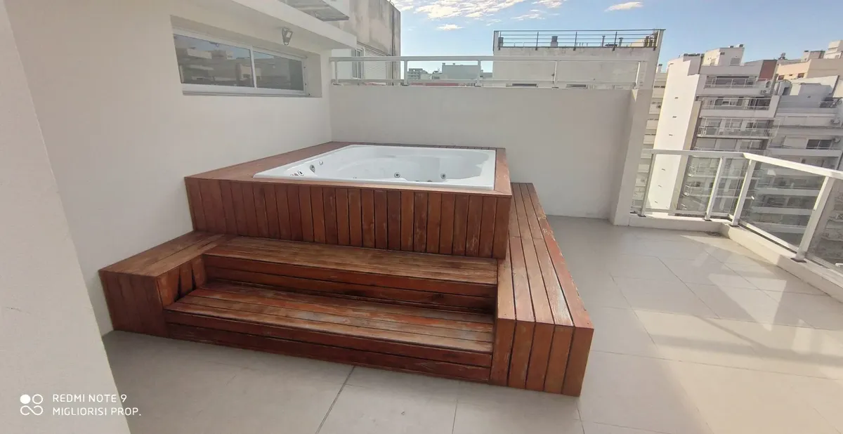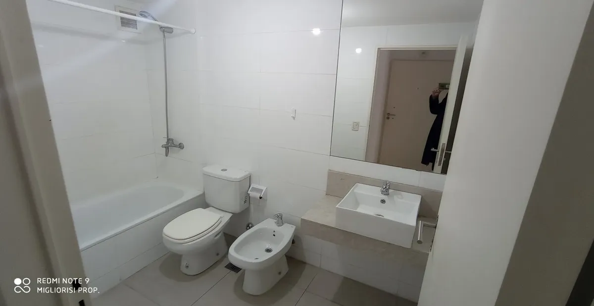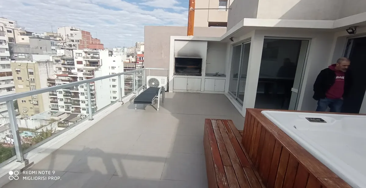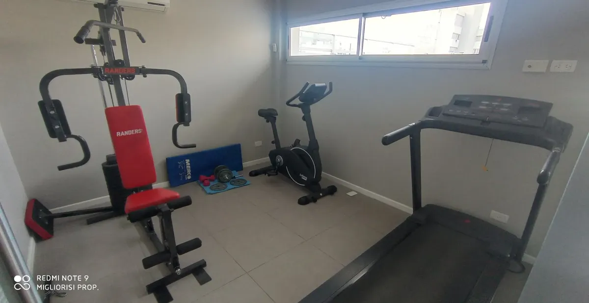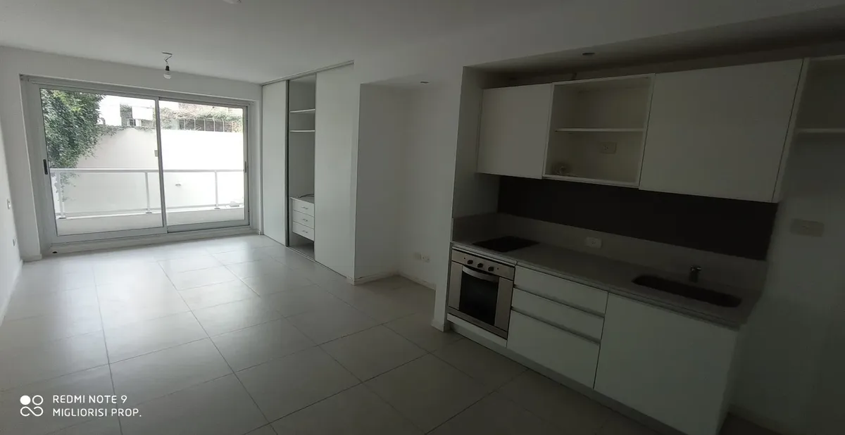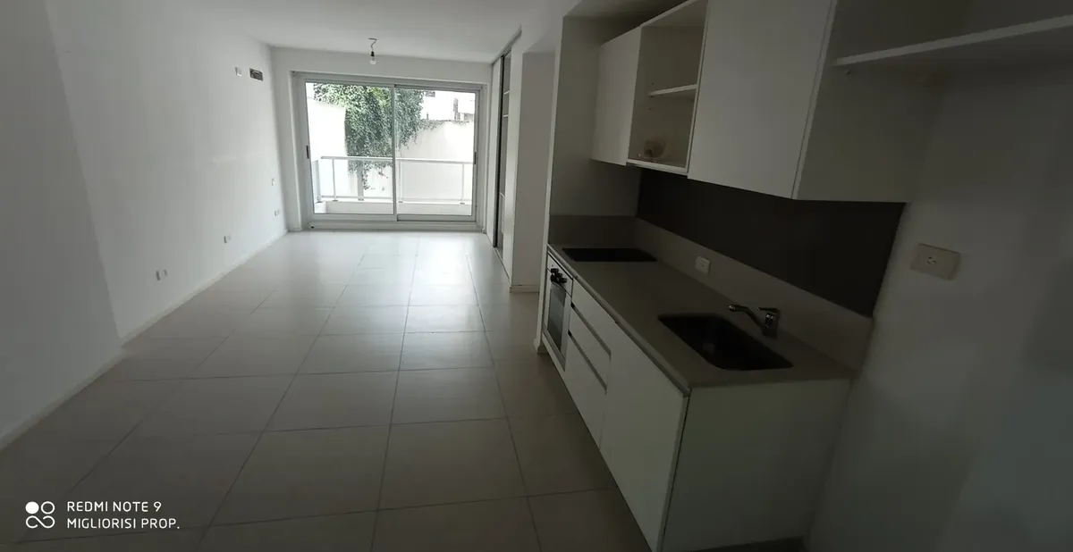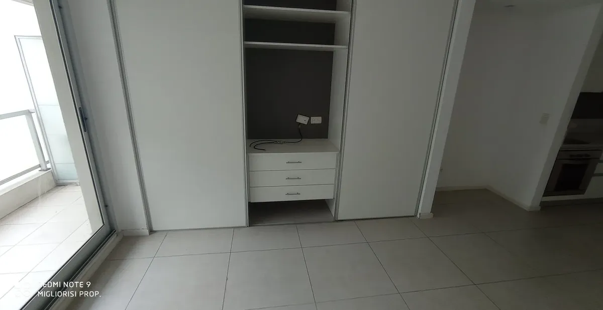 Studio apartment in Villa Crespo. The unit includes porcelain tile floors and built-in wardrobes with a storage room (baulera). The building has a communal room, gym, jacuzzi, solarium and a grill, with low building fees (expensas).