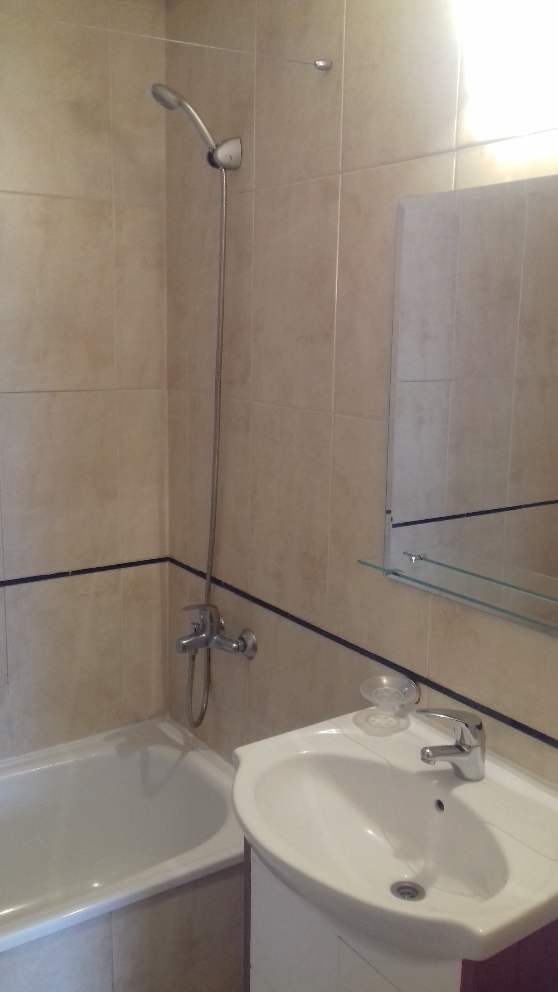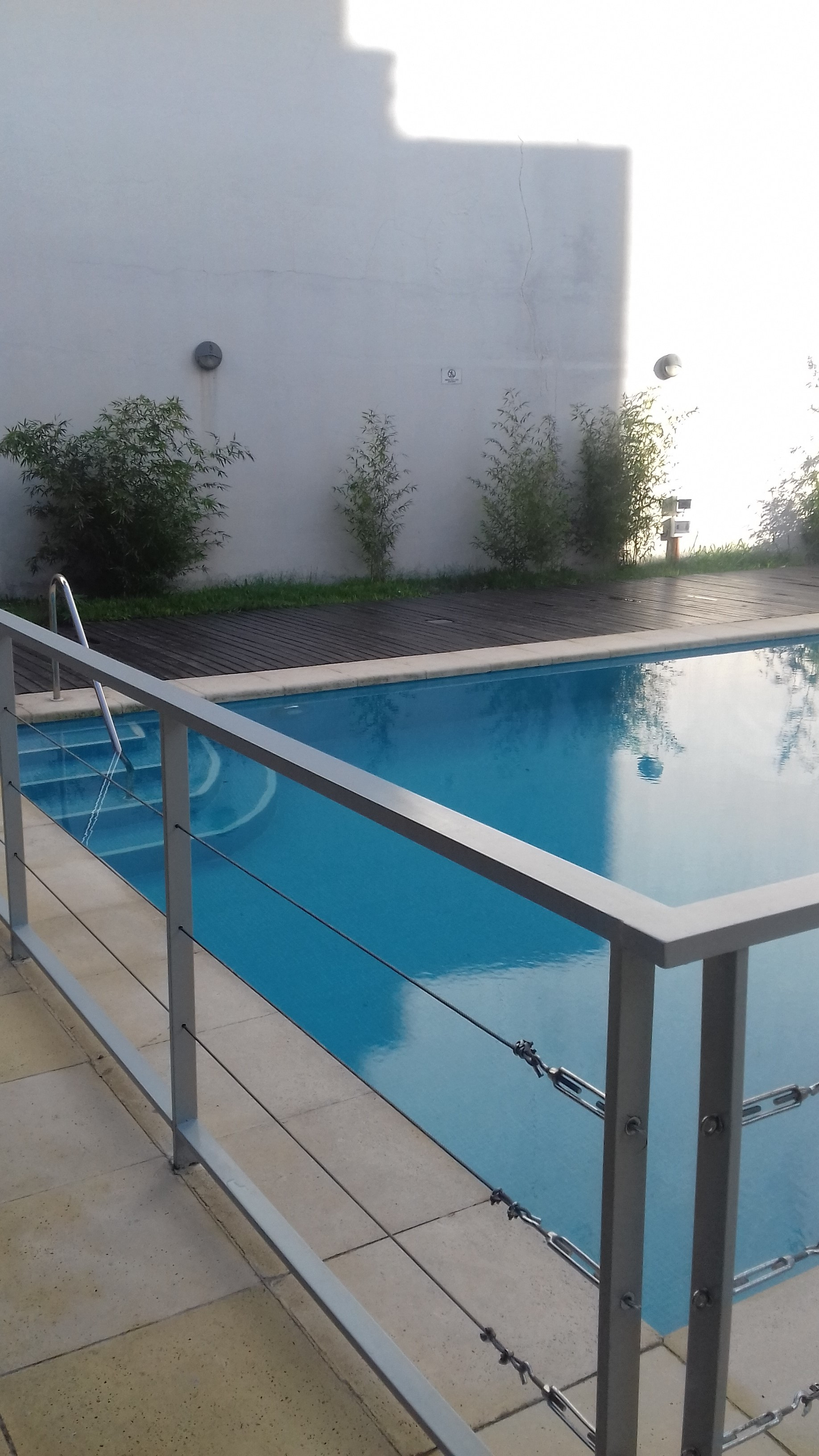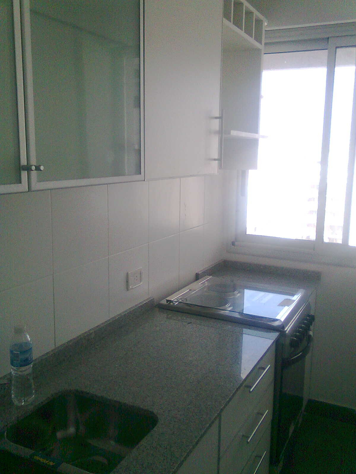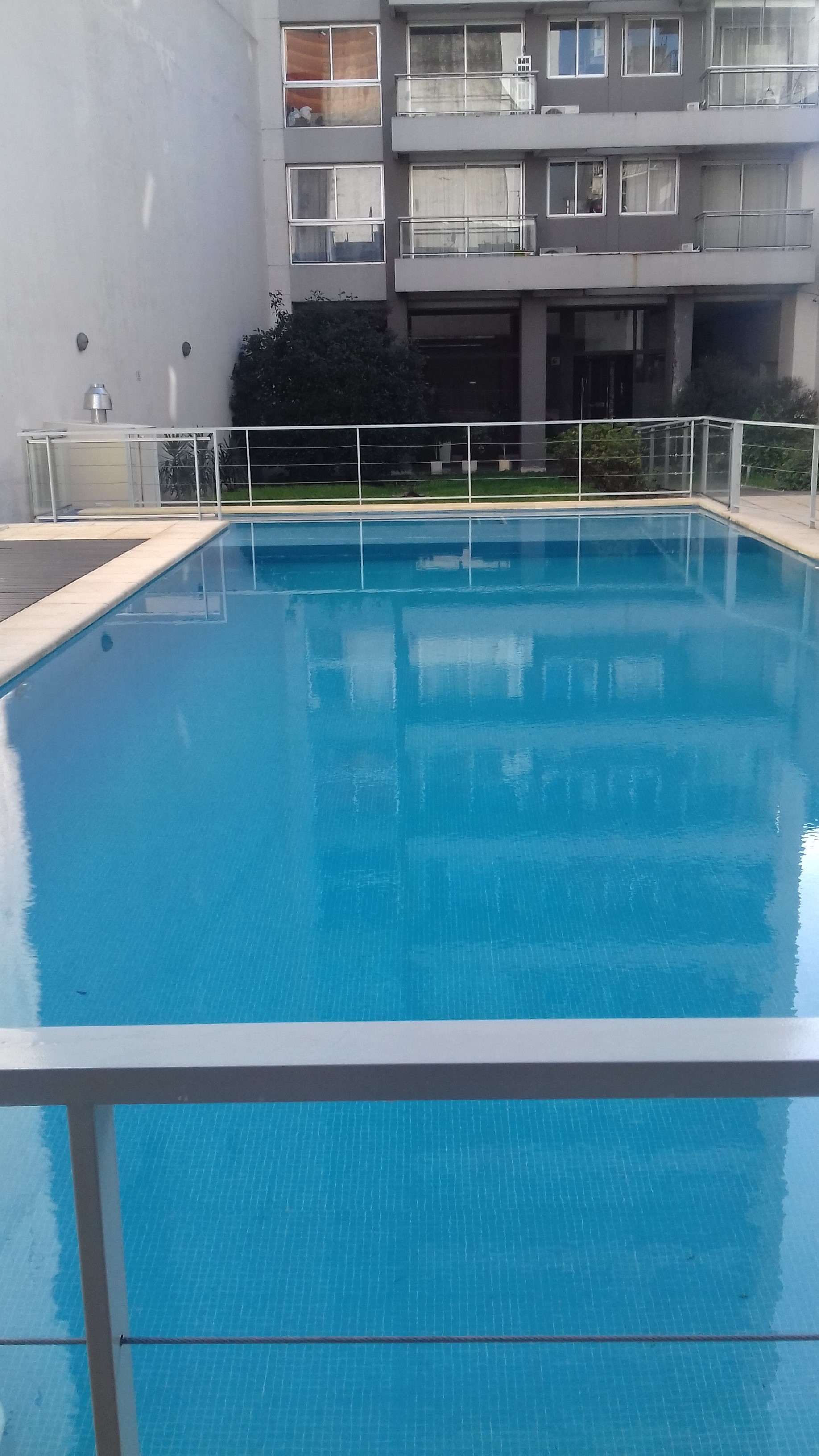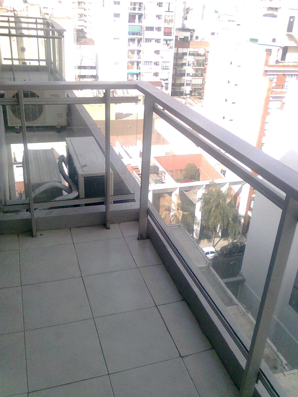 Apartment for rent in Almagro on Av. Corrientes at 3,700, 11th floor unit “C”, courtyard-facing. The unit has 3 bedrooms, a full bathroom and a half bathroom, and a fully fitted kitchen. It includes hot and cold air conditioning (2 units, in the main bedroom and living/dining room), blackout curtains in the bedroom, installed lights, and a large balcony; the flooring is plasticised parquet. Building amenities include a pool, communal room (SUM), and grill, plus a gym and laundry.