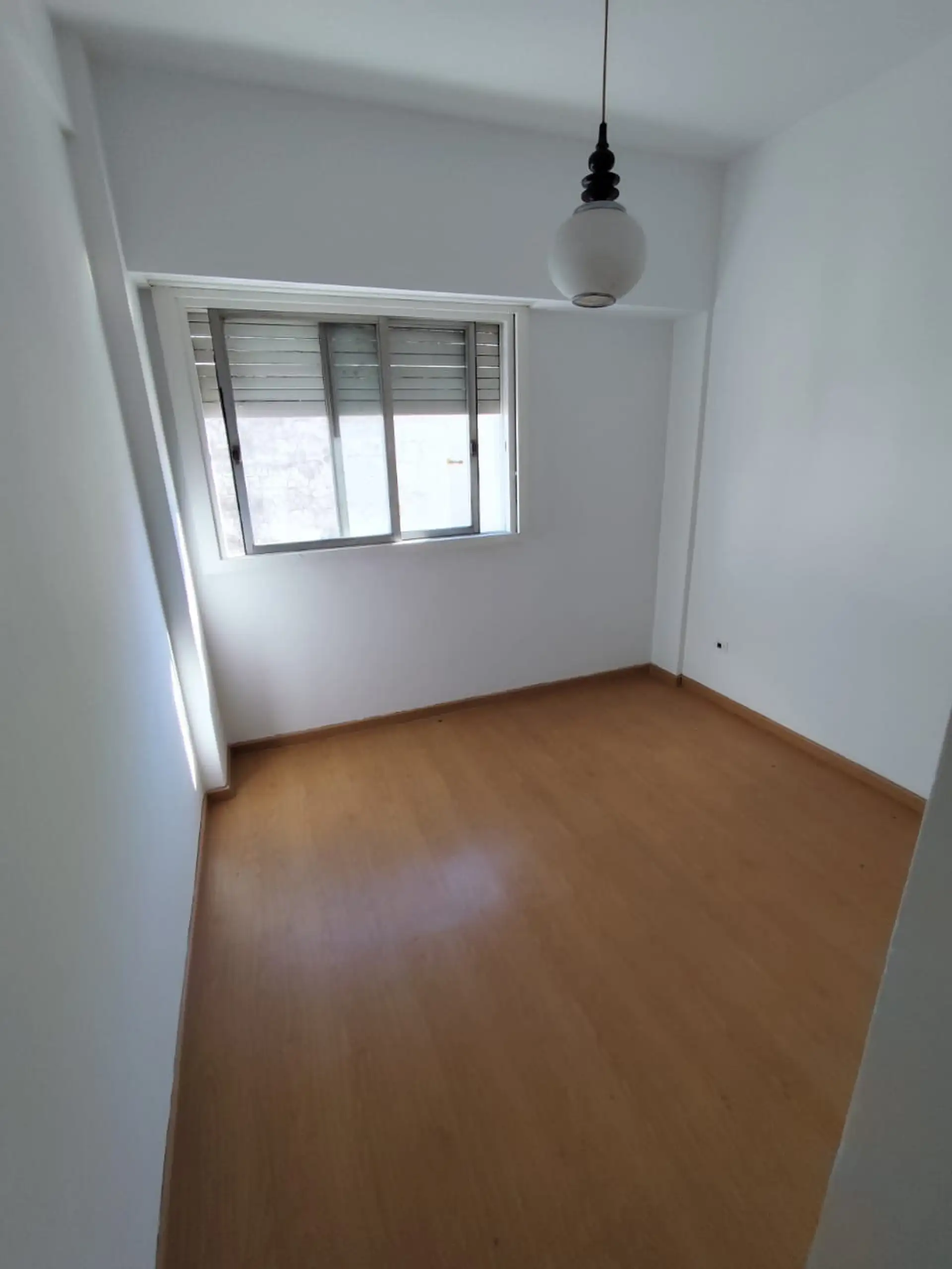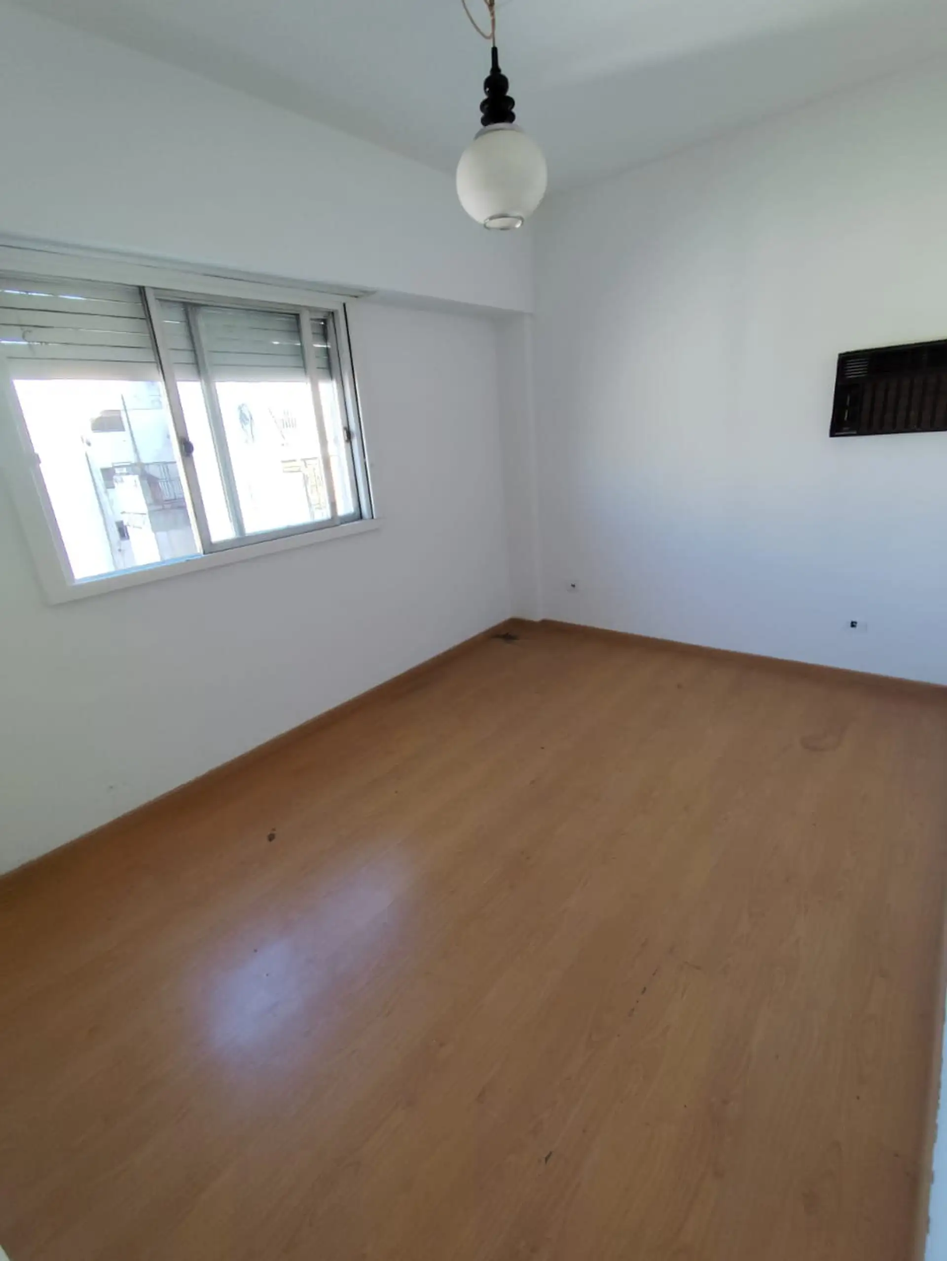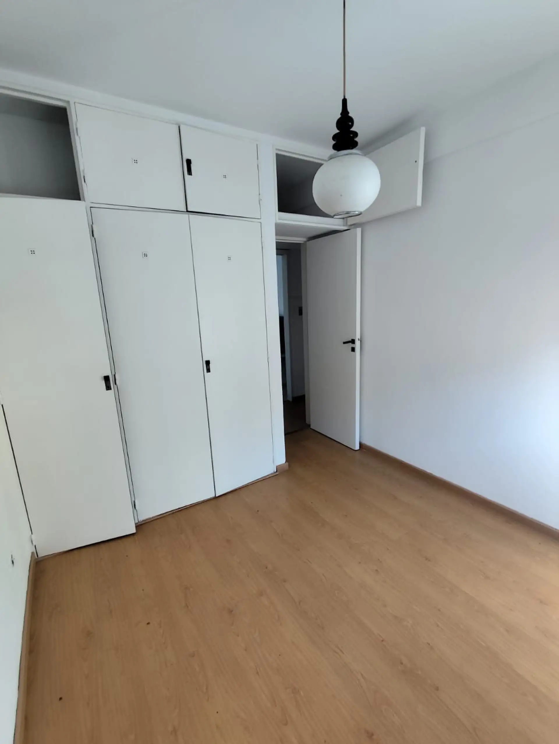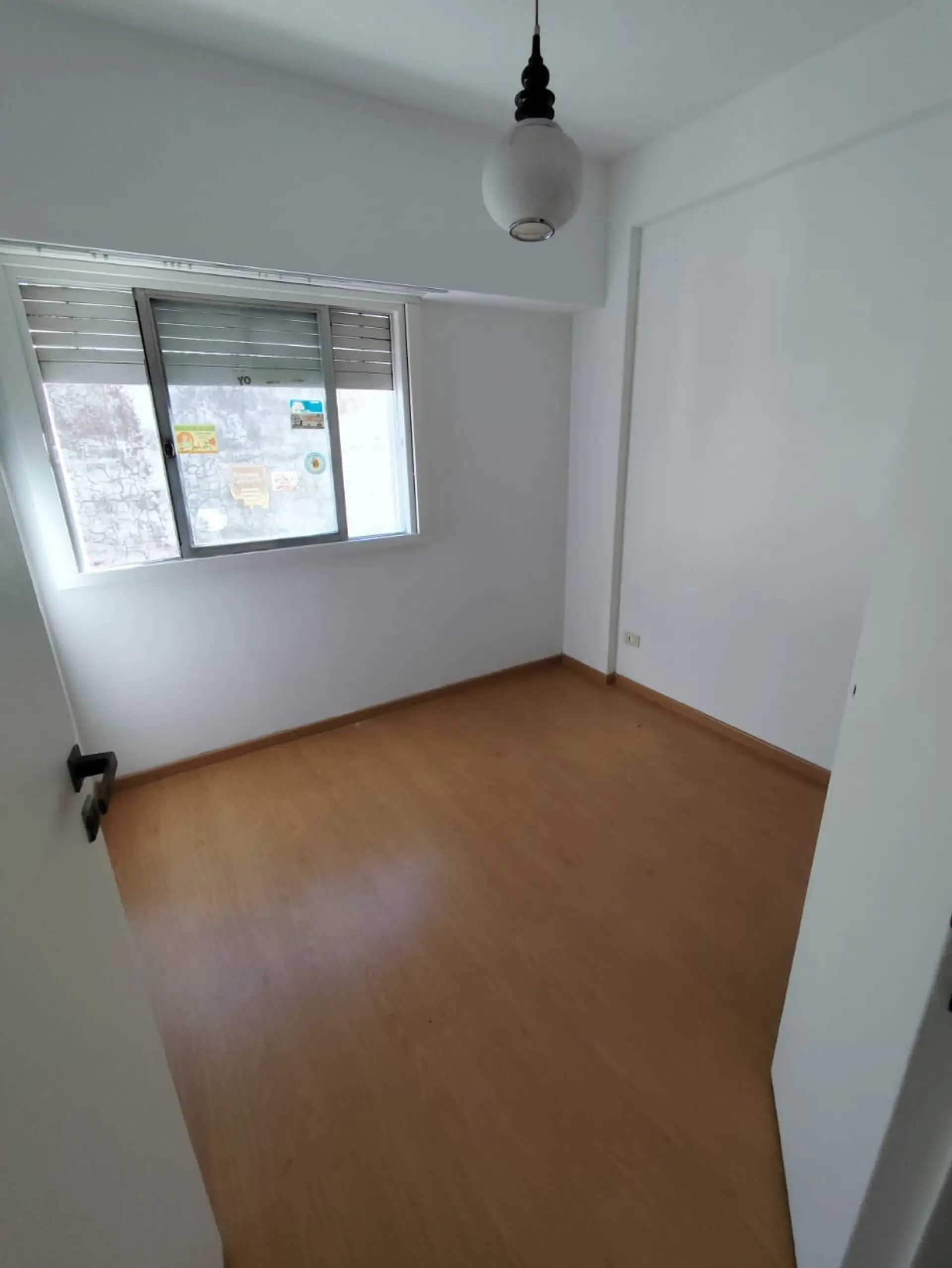 Four-room apartment in Almagro. It has a separate gas kitchen with built-in lower cabinets and wall units, a living-dining area with access to a courtyard-facing balcony, a laundry area, and three bedrooms with windows and closets. The unit was recently painted and includes storage in storage rooms (bauleras); the building has a ground-floor patio and a communal room (SUM) equipped with a refrigerator, oven and air conditioning. Building fees are ARS 124,000. Rental terms require a rental guaran