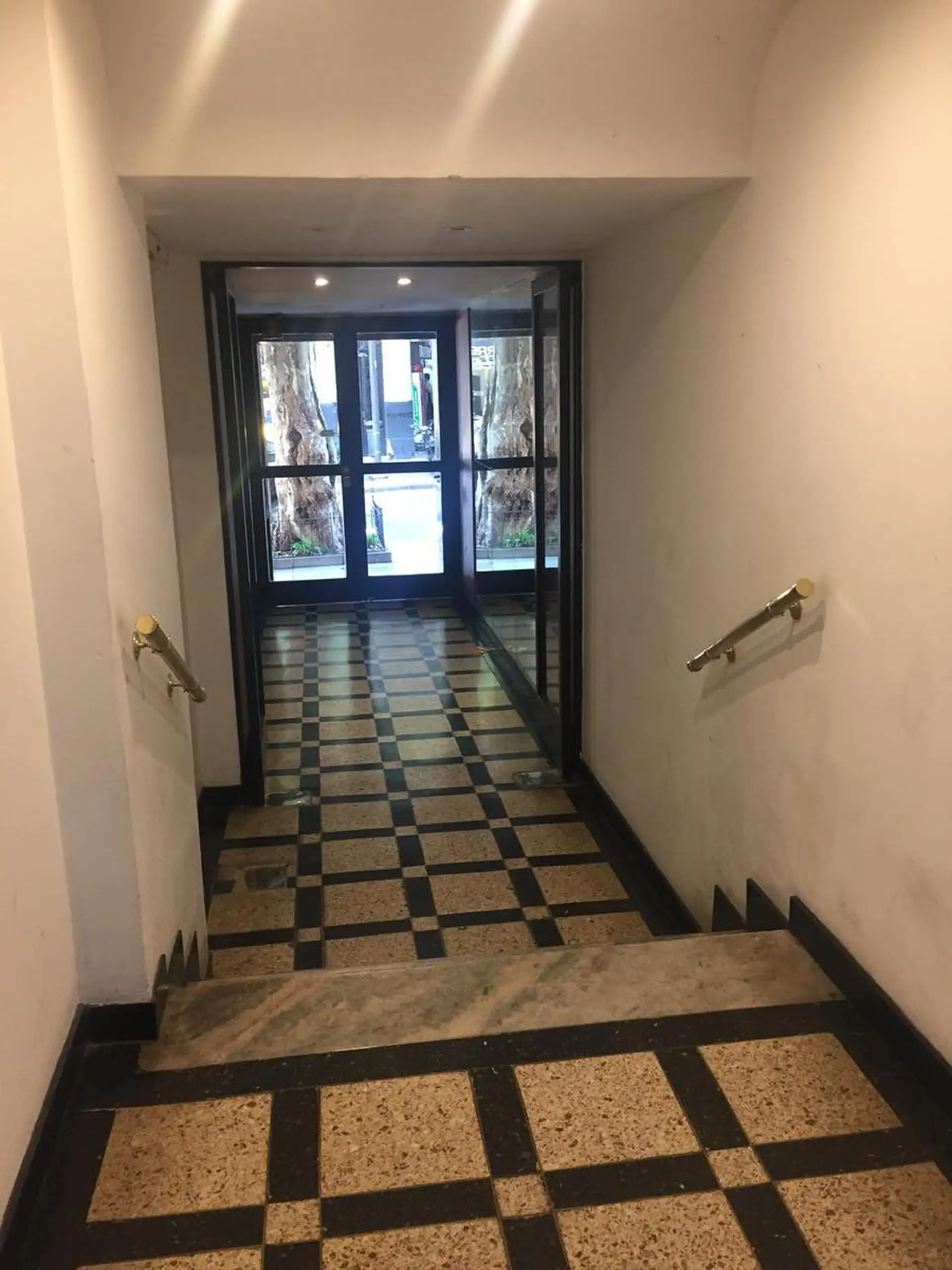 Four-room apartment with a service room, on a high floor, street-facing with a wraparound balcony. It is located on Sarmiento between Junín and Ayacucho, one block from Av. Corrientes and within walking distance of Av. Callao, Av. Santa Fe and Av. Rivadavia, with Subte lines A, B and D nearby. The unit includes a large living-dining area with balcony access, a separate kitchen with space for a washing machine, two bedrooms with built-in wardrobes, a separate main bedroom with balcony access and