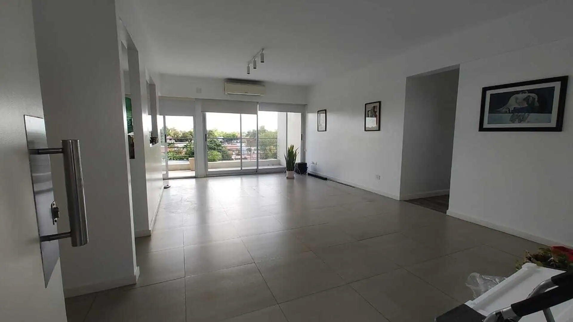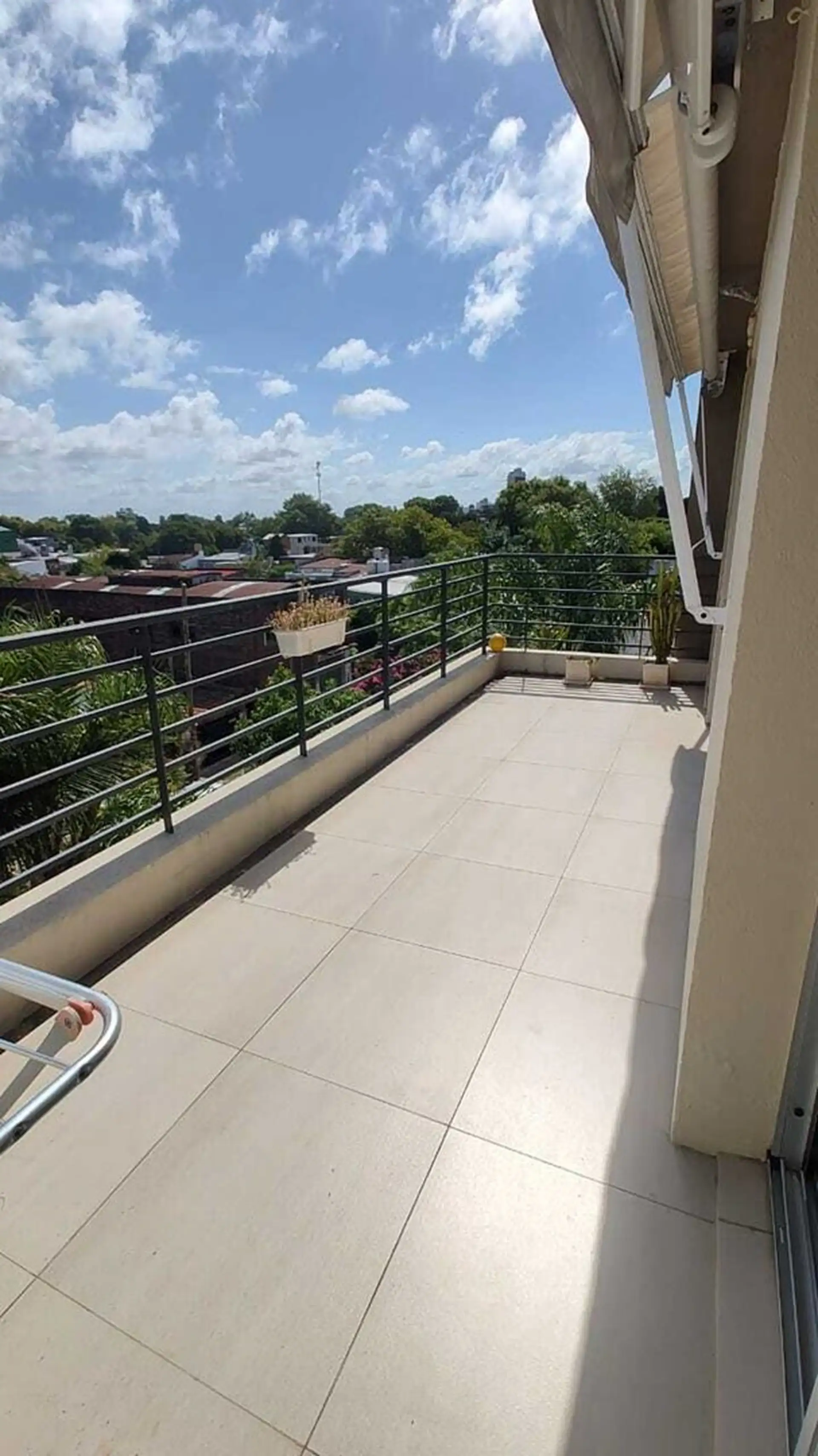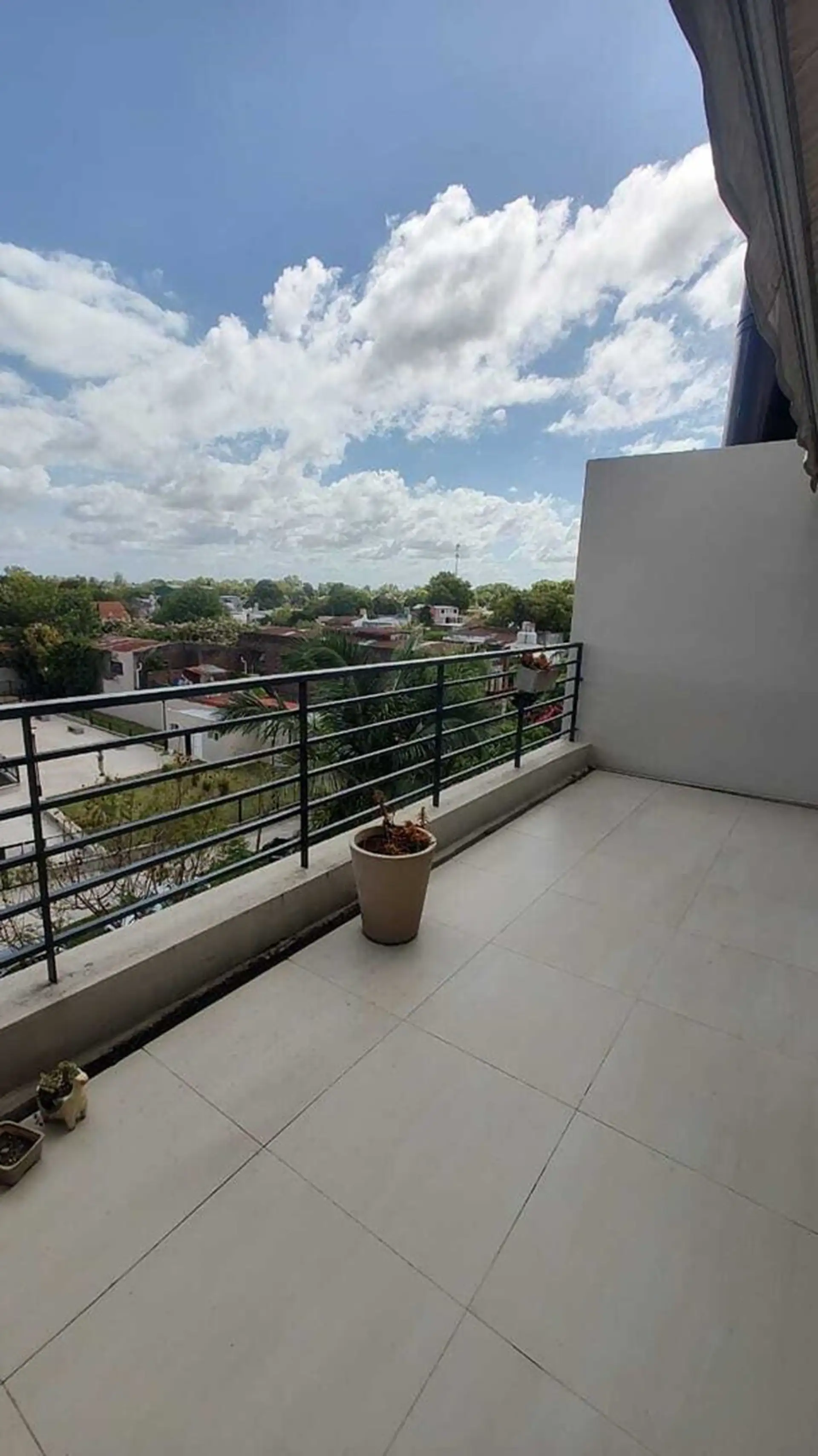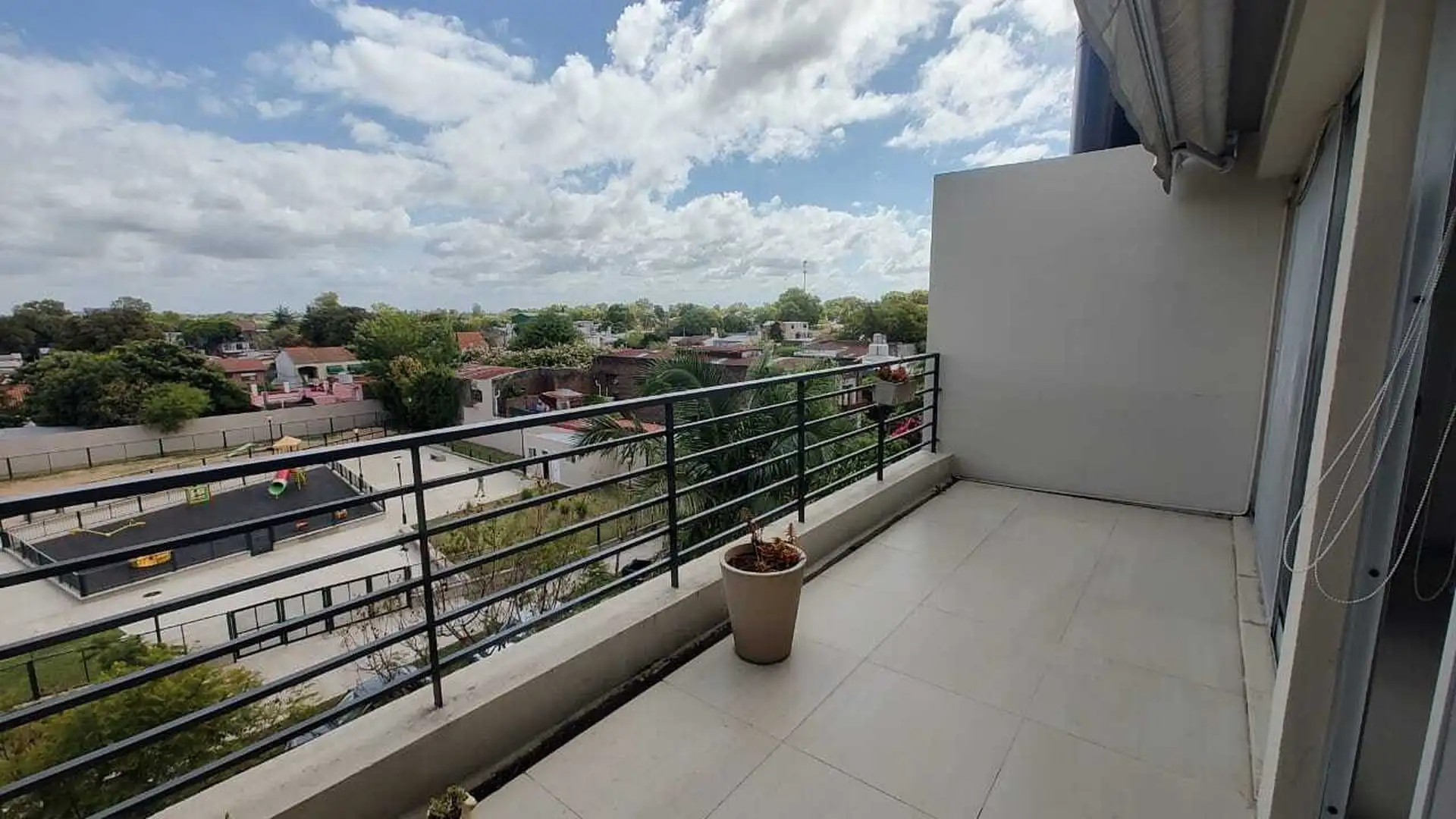Four-room apartment on one level in Beccar, street-facing with open views. It has a living-dining area with access to a large terrace balcony with a private grill, a separate kitchen with two entry points, storage cabinetry and space for a dishwasher, plus a separate laundry area. There are 3 bedrooms: the main suite includes a large window and an ample built-in wardrobe, while the other two rooms have fitted wardrobes and access to a second large terrace balcony. The unit has 2 full bathrooms,