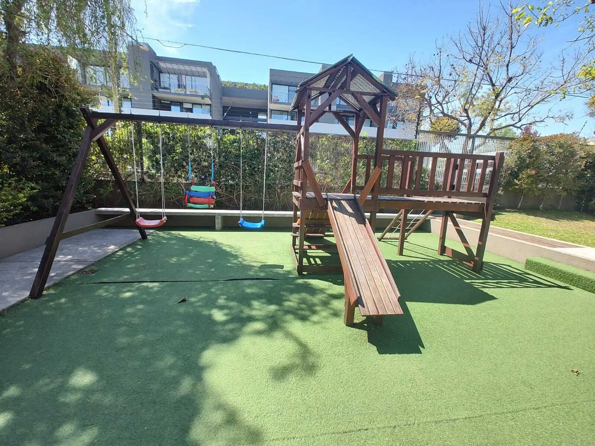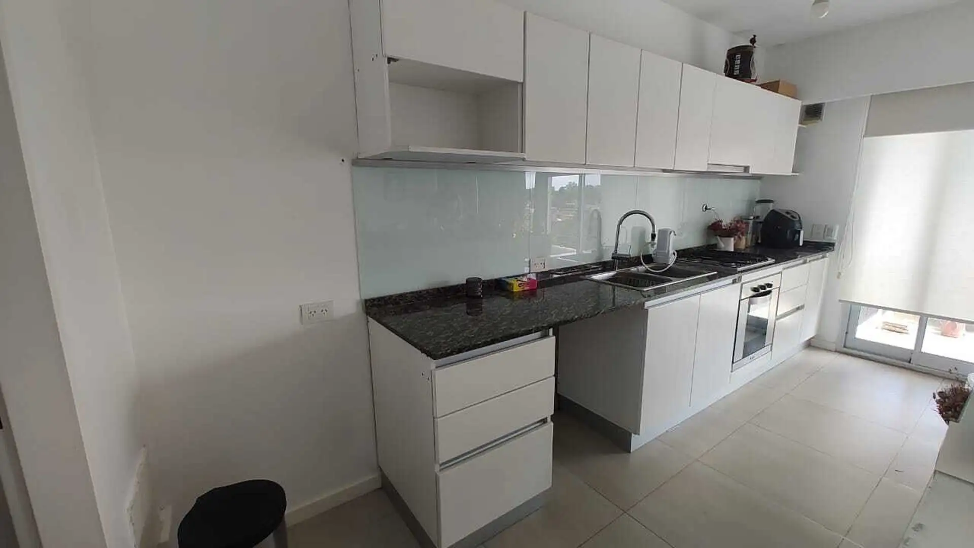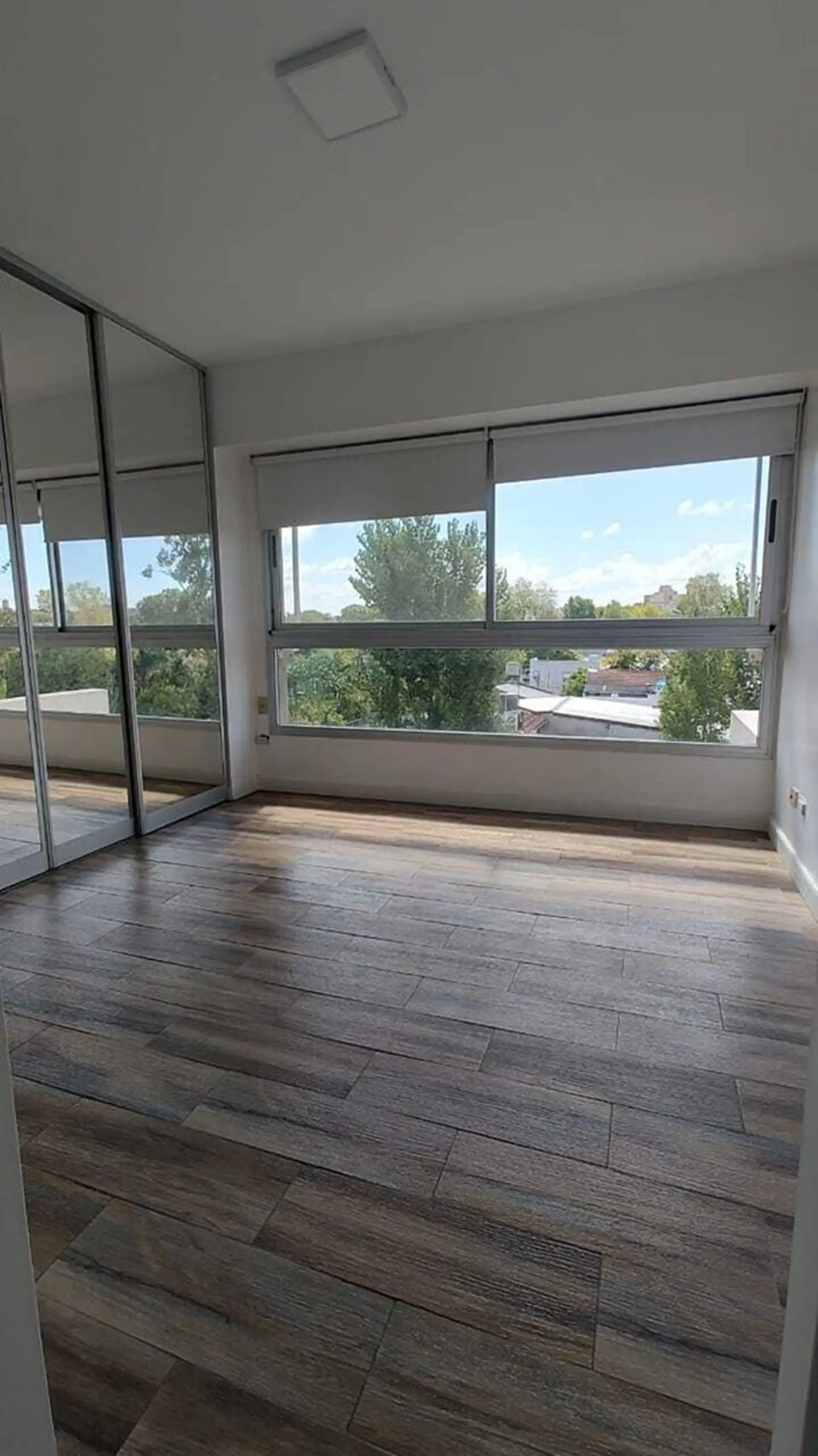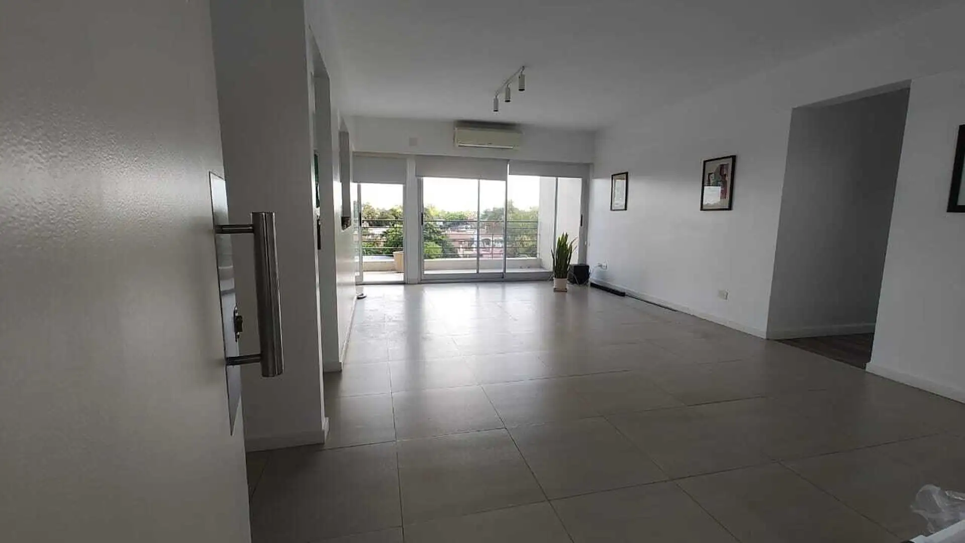 Four-room apartment on one level in Beccar, street-facing with open views. It has a living-dining area with access to a large terrace balcony with a private grill, a separate kitchen with two entry points, storage cabinetry and space for a dishwasher, plus a separate laundry area. There are 3 bedrooms: the main suite includes a large window and an ample built-in wardrobe, while the other two rooms have fitted wardrobes and access to a second large terrace balcony. The unit has 2 full bathrooms,