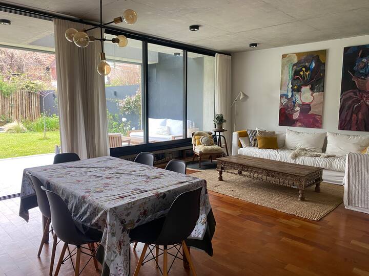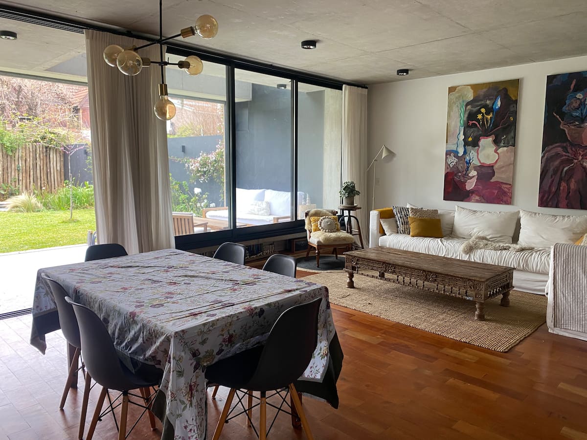 House in the La Horqueta neighbourhood, San Isidro, with 3 bedrooms. Includes a garden, grill and pool. The description states the property is modern and bright, with access to the North Zone.