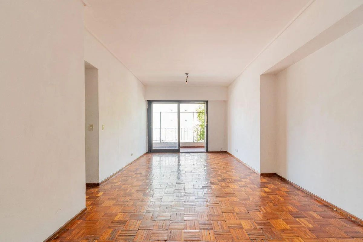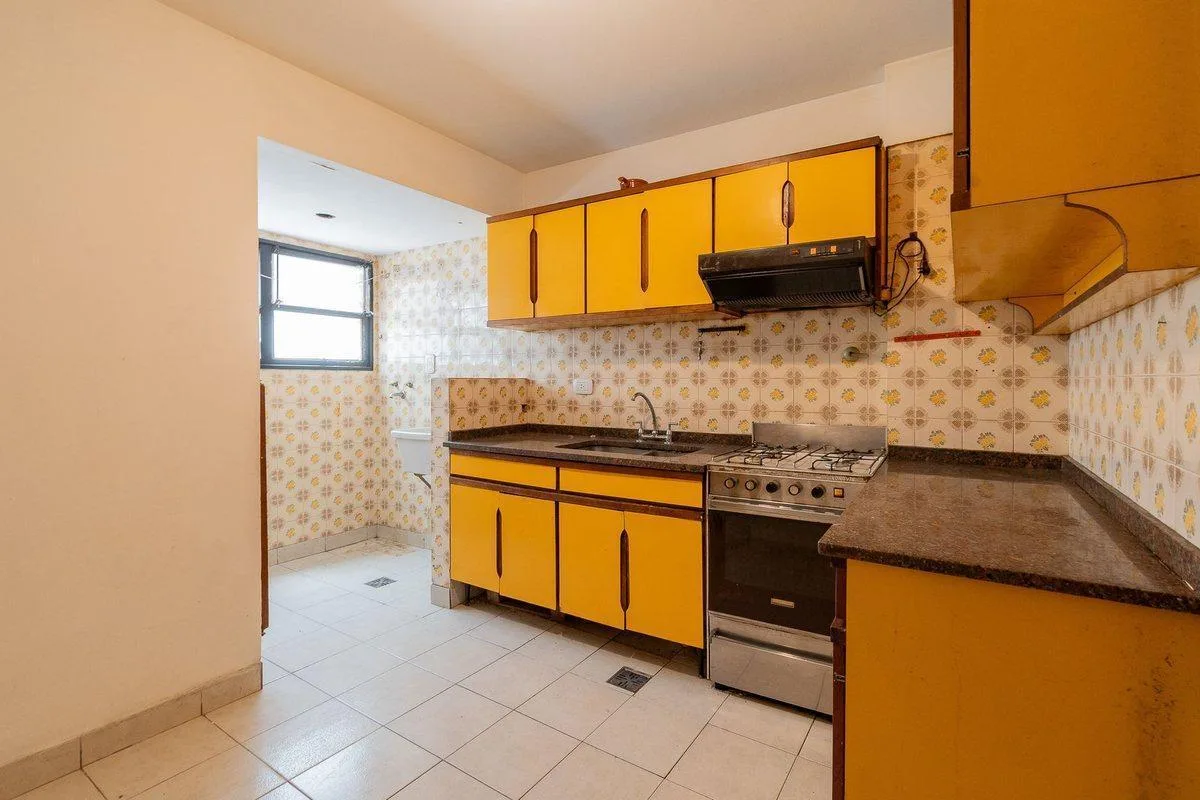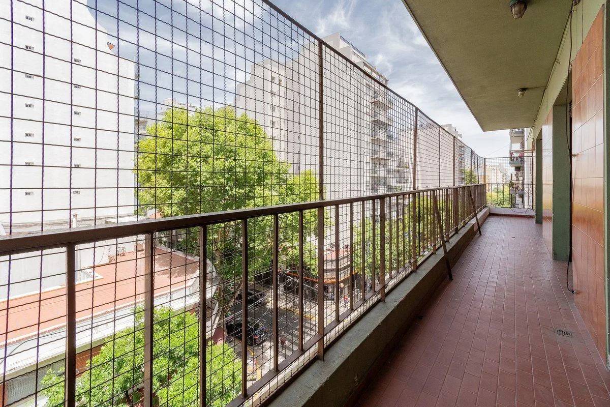 Four-room apartment of 90 m² in Flores, street-facing on Ramón Falcon. It has three bedrooms, a full bathroom, a separate toilet, a separate kitchen and a living-dining room, plus a long balcony with south orientation. Built in 1980, it has wooden floors and includes built-in wardrobes and radiant-floor heating; the building has a main elevator and a service elevator. Building fees are low; the lease terms include a 2-year term, one month in advance, a two-month deposit and 5% annual adjustment.