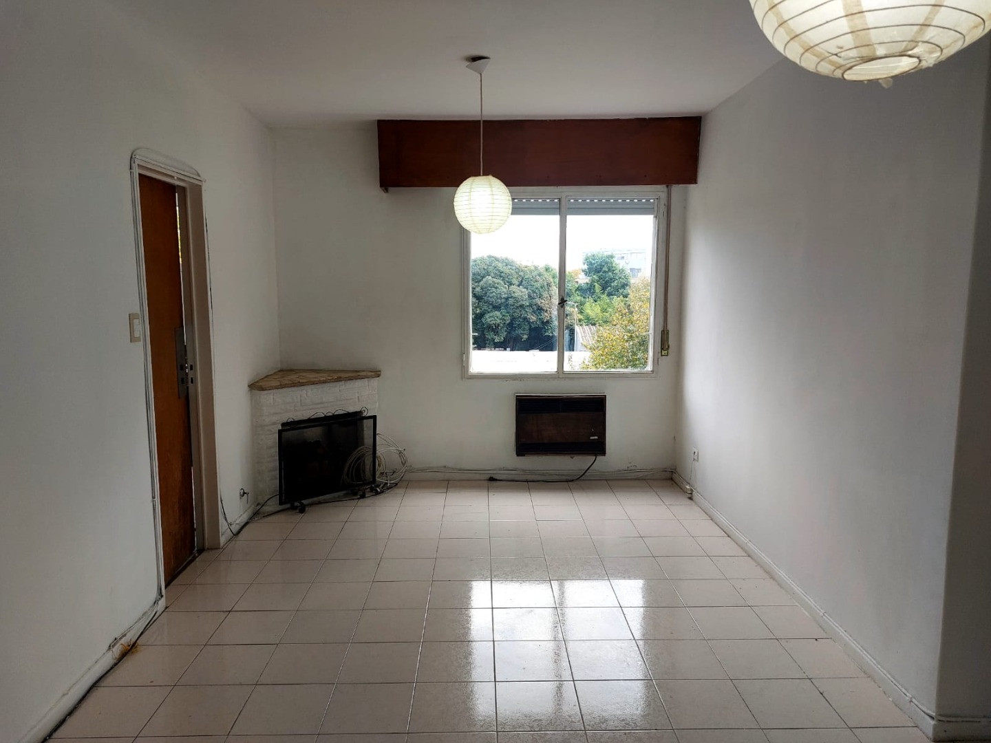 Apartment with 4 rooms, 3 bedrooms, in Florida (Florida Mitre/Este). Living-dining room with a fireplace and porcelain-tile floors. Distribution hall to the three bedrooms with floating floors and built-in wardrobes, plus a bathroom with shower and a linen closet. Kitchen with upper and lower cabinetry and an independent laundry room. The building has two elevators and a communal garden, with a ramped landing (palier).
