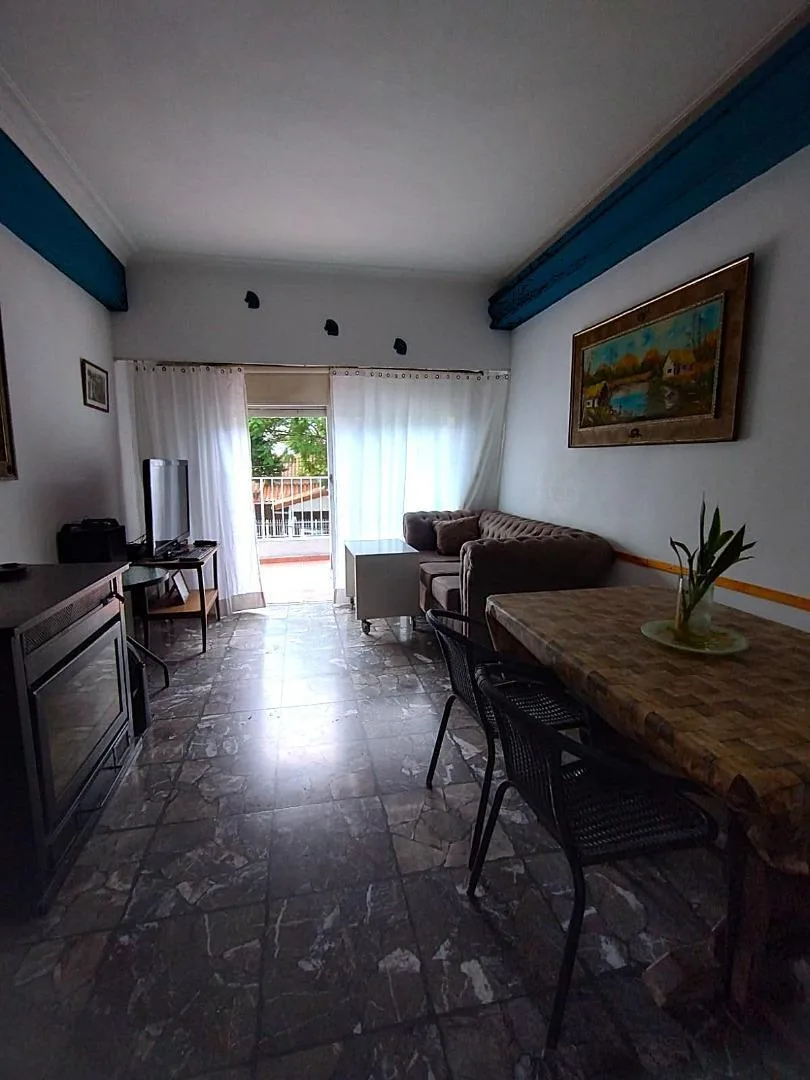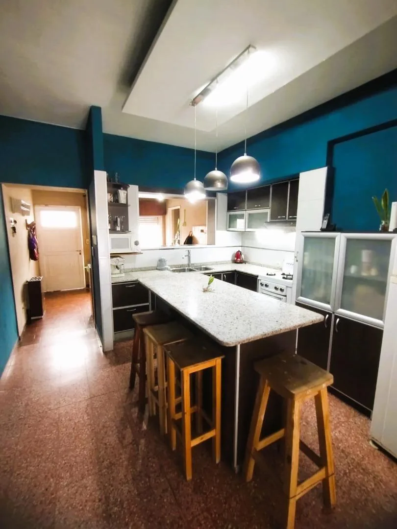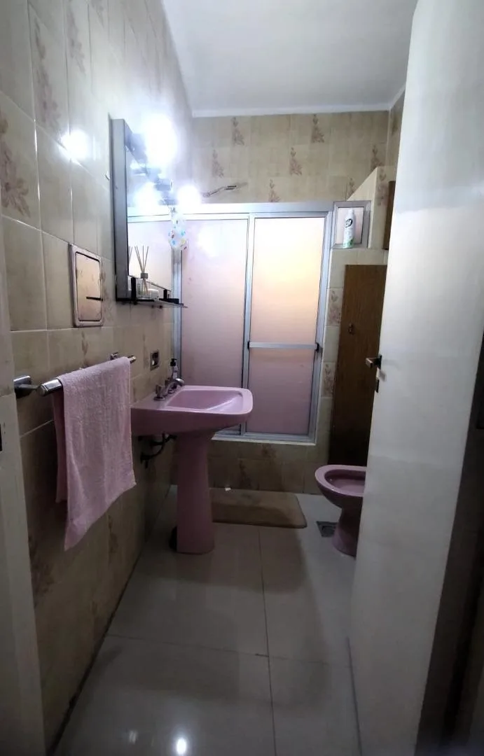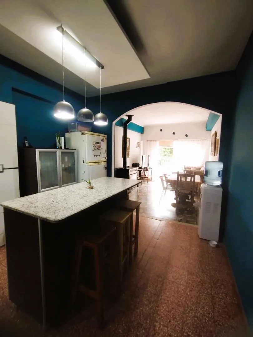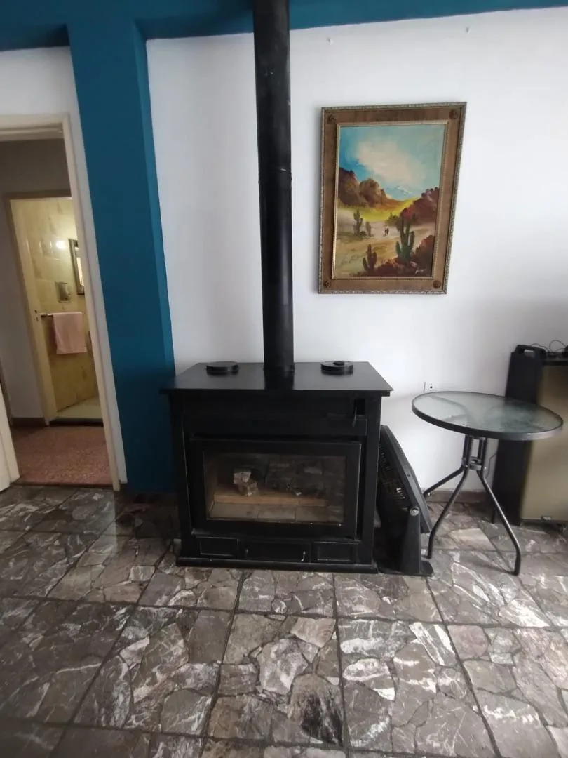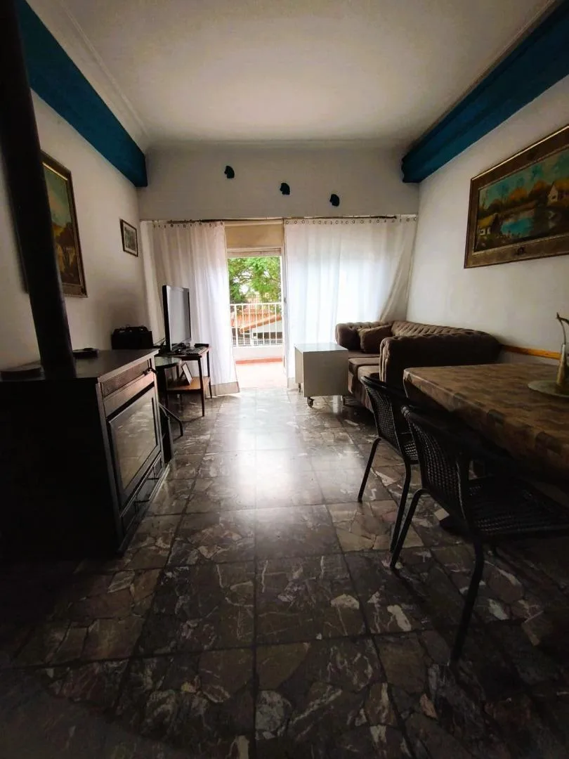 PH in upper floor with 4 rooms, accessed by stairs. The unit includes an eat-in kitchen, a dining/living area with a fireplace, a front balcony-terrace, a full bathroom, and 3 bedrooms, plus a covered laundry room. There is a pool and a grill/quincho with a bathroom and changing area in the ground floor. Located 3 blocks from Santa Rosa, with services including electricity, paving, sewer, gas and running water. The listing notes that measurements are approximate.