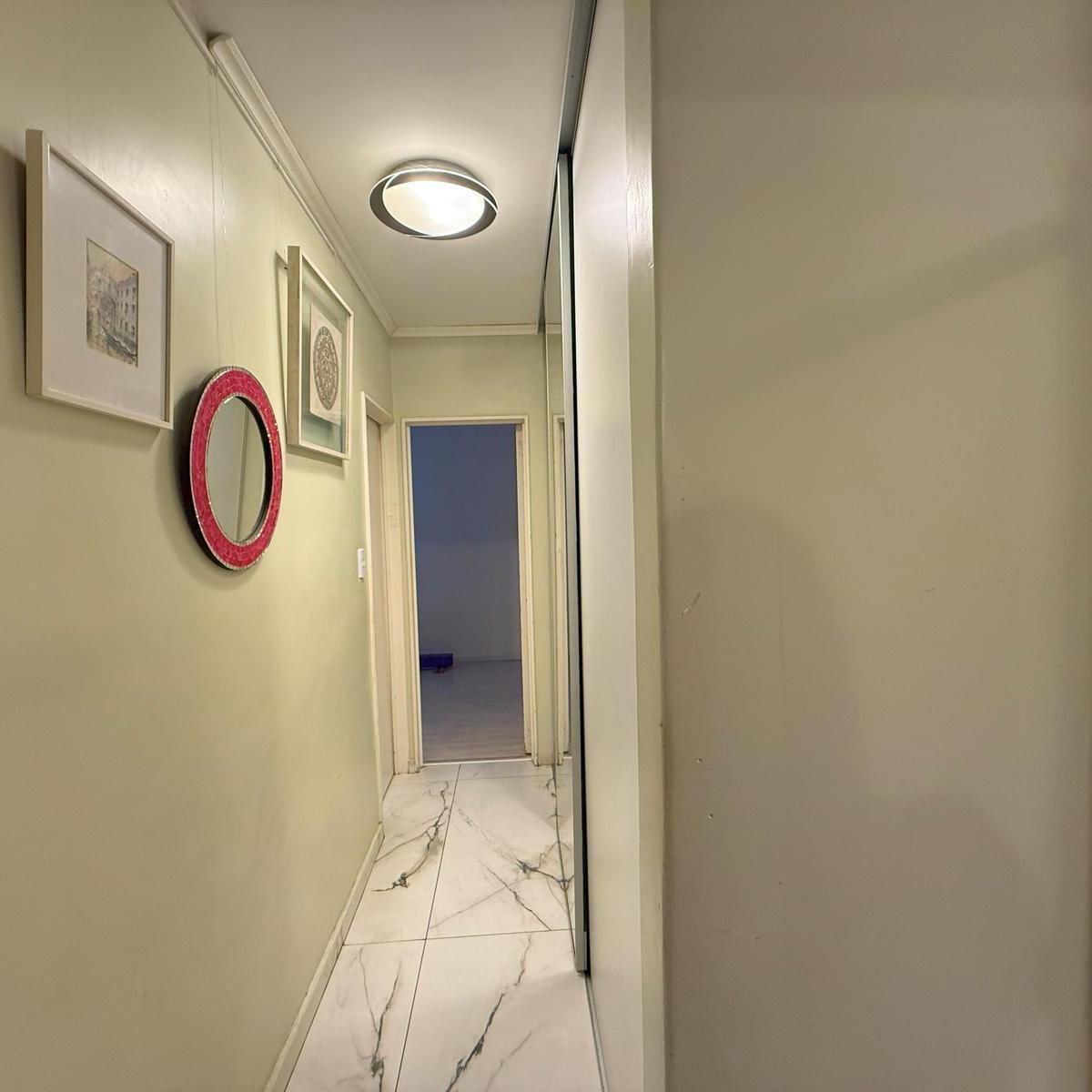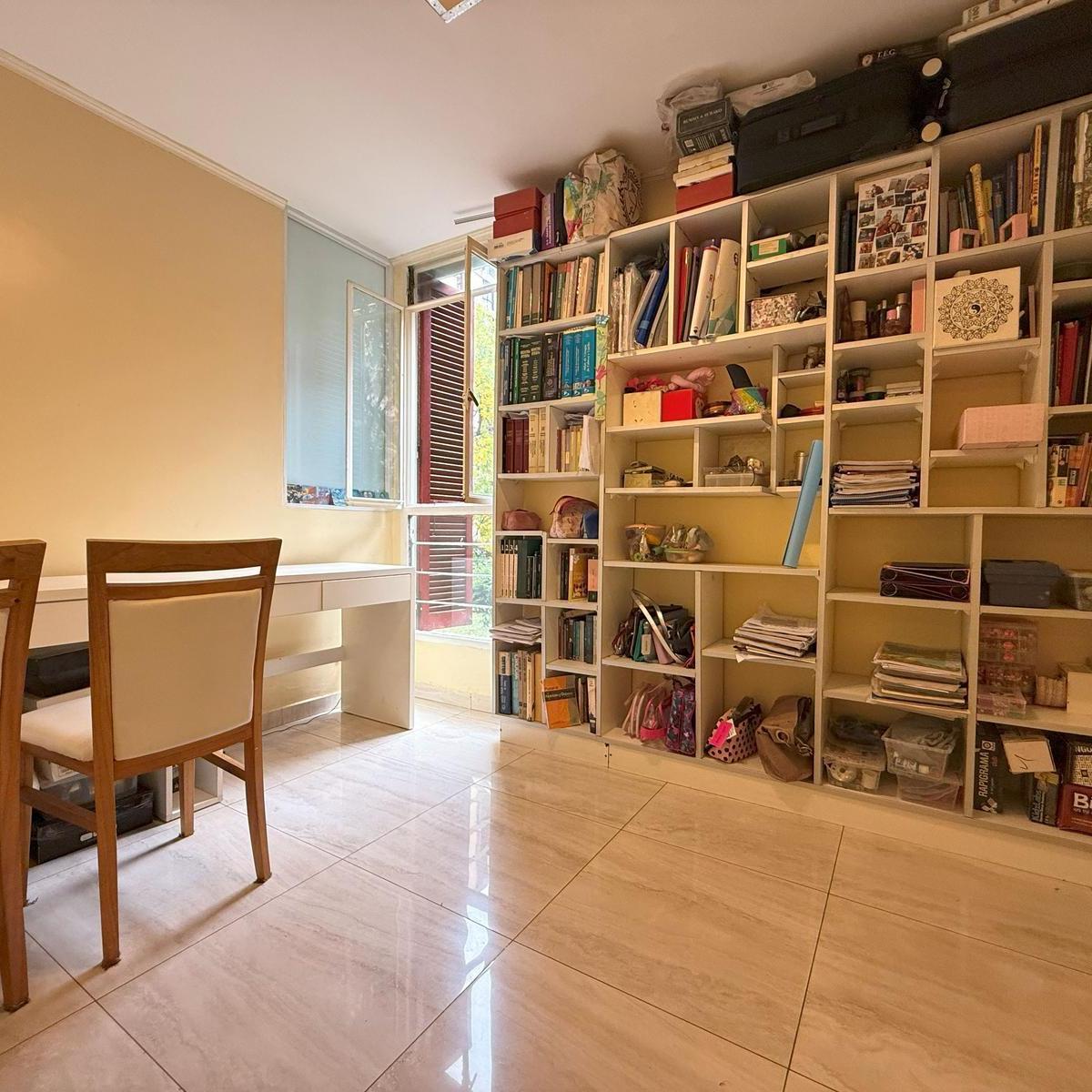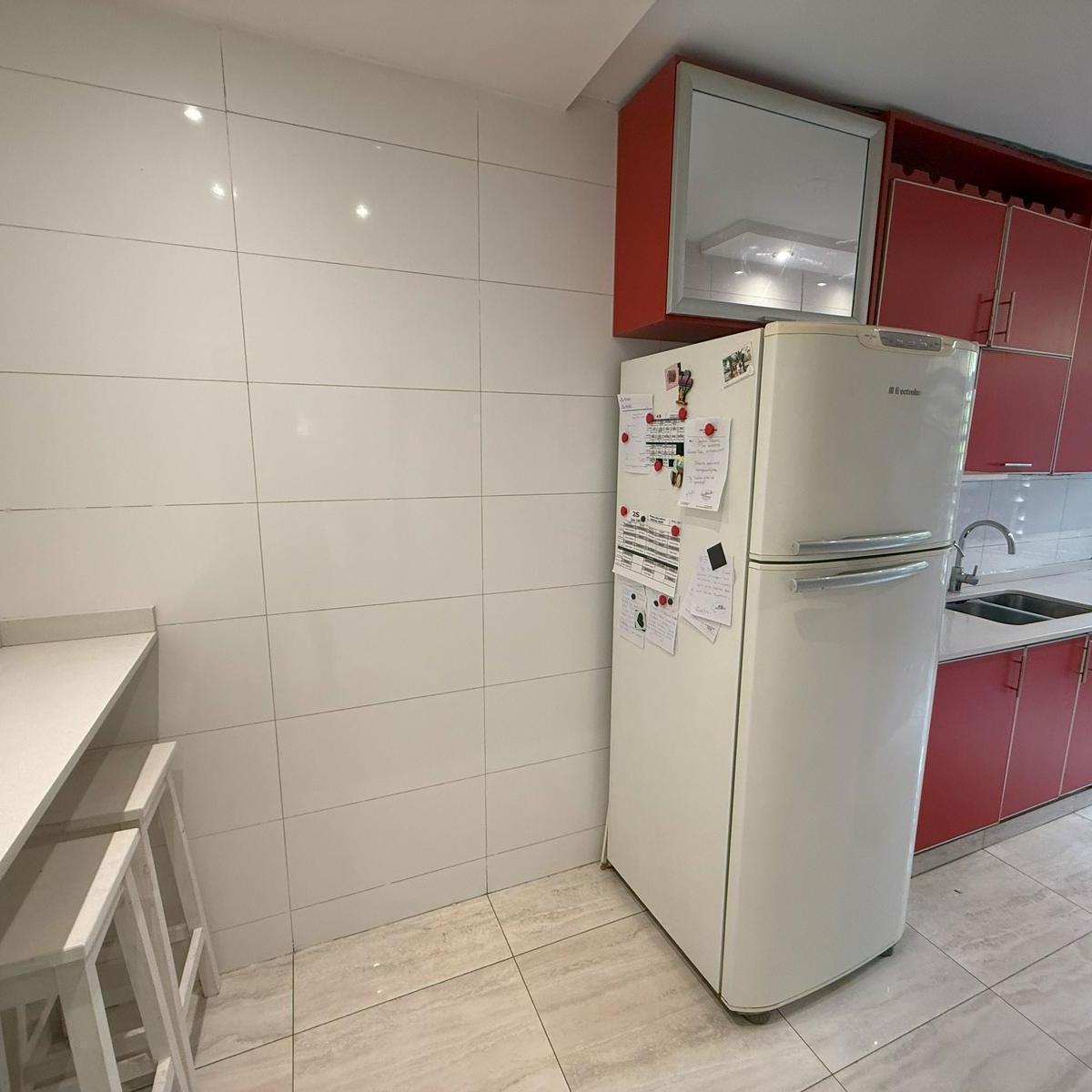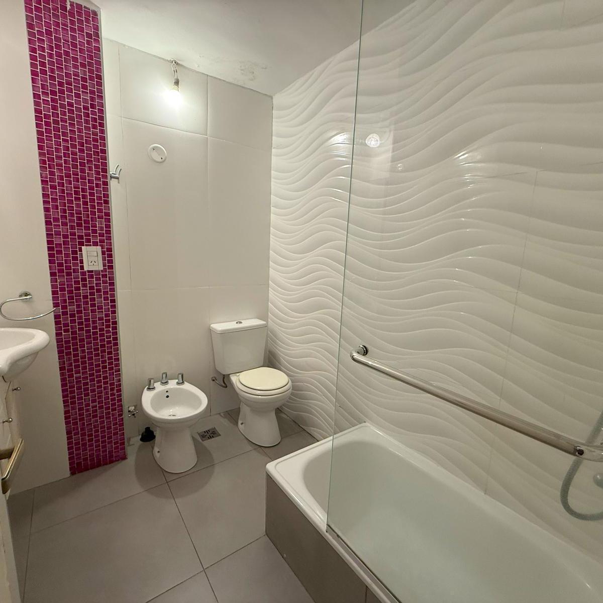 Four-room apartment in Catalinas Sur, La Boca. The unit is empty and ready to move in, with 3 bedrooms, including storage space in the main bedroom and in the hallways. There is a bright living-dining area with an open view of the park, a modern kitchen with a breakfast bar, and an independent laundry room. Three installed air conditioners and a ceiling fan are included, with porcelain tile floors; all rooms receive natural light and face the green park view.