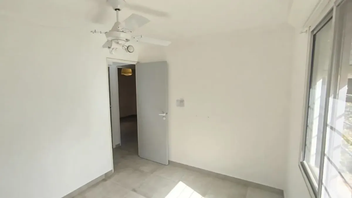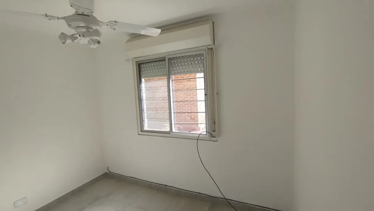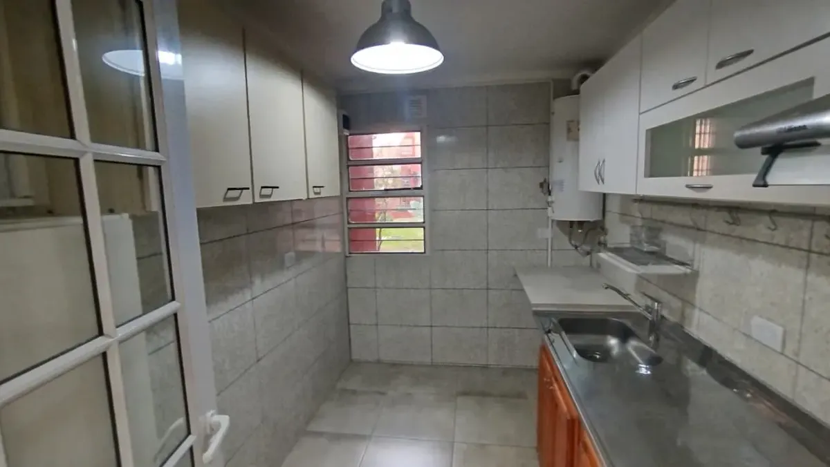 Four-room apartment on the ground floor in Barrio Isabel La Católica, Ciudad Evita (Edificio 29). The unit has a living-dining room, a balcony with enclosed glazing, a kitchen with upper and lower cabinets and a cooking appliance, and a full bathroom with shower enclosure and vanity. It also includes 3 bedrooms with built-in closets. The rent includes building fees and the municipal tax.