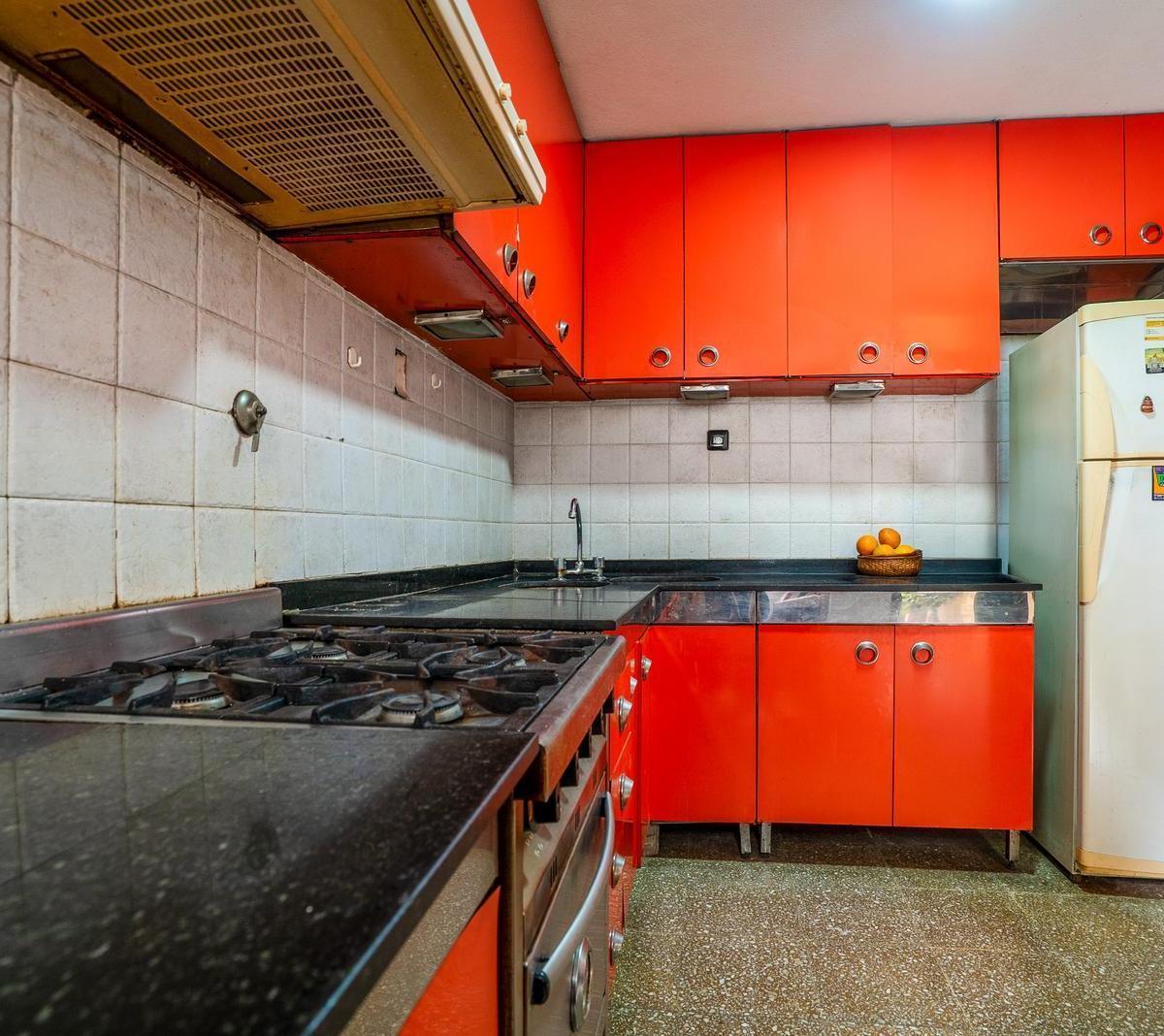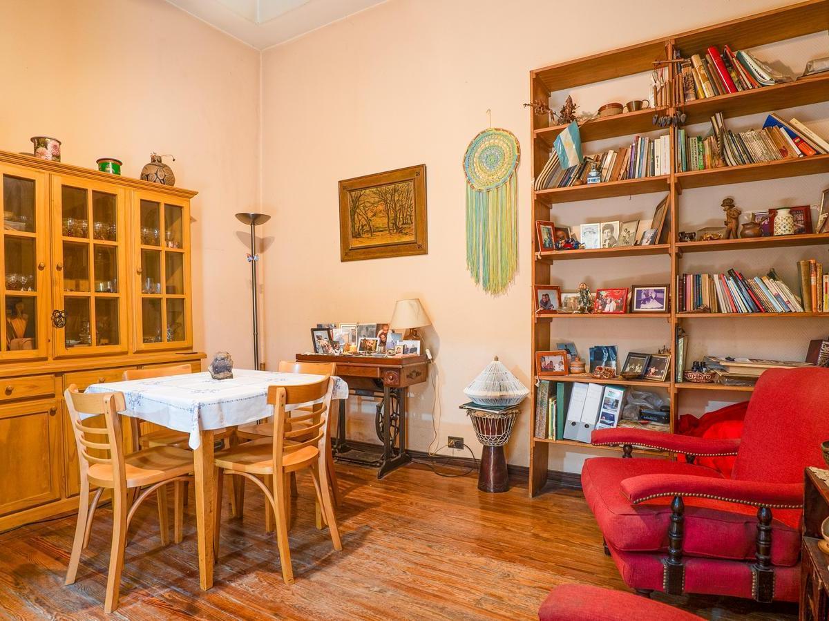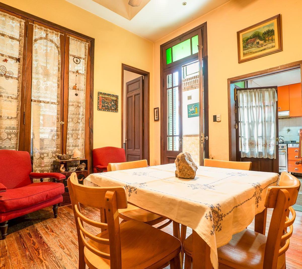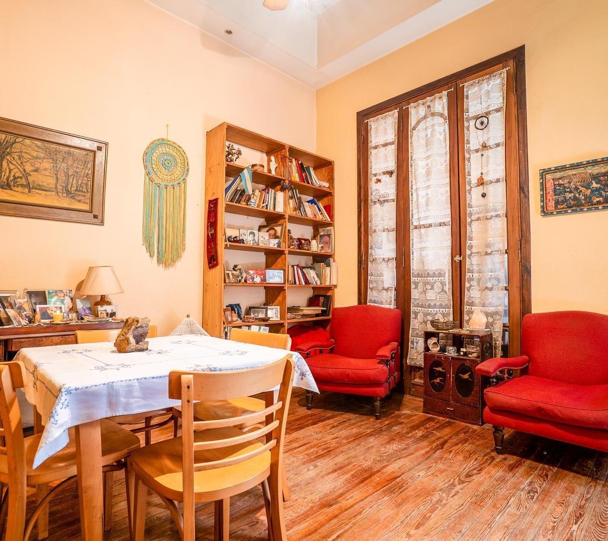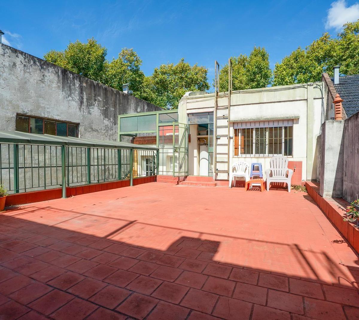 PH within a complex of 5 units, oriented east. Covered area 74 m², plus 50 m² uncovered, with high ceilings, parquet floors and wooden-framed windows with distributed glass. The layout includes 4 rooms, 3 bedrooms (one en suite on the main level and another en suite on the upper floor), plus a small fourth bedroom used as an office, 2 full bathrooms, and a light-filled courtyard with an enclosed section. There is also a terrace with a grill. Building age is 40 years. Utilities include running wa