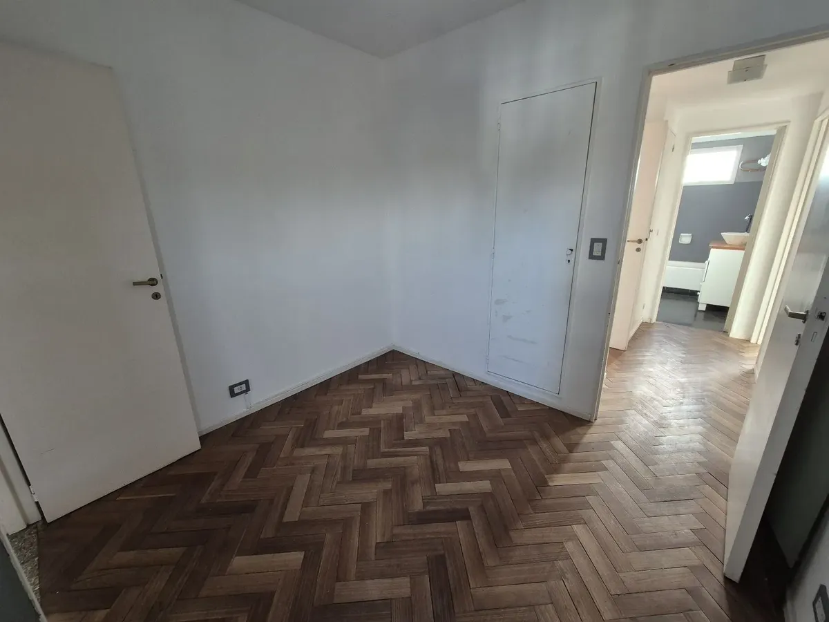 Four-room apartment at the rear of the building (contrafrente) in Banfield Oeste, with a main and a service entrance. It has a kitchen with granite flooring, gas cooktop, built-in upper and lower cabinets, plus a laundry area with an attached bathroom. The living-dining room has parquet flooring and a contrafrente balcony with an open view. There is a distribution hall, a full bathroom, and 3 bedrooms with built-in wardrobes and parquet floors. Central hot water and central heating via radiant s