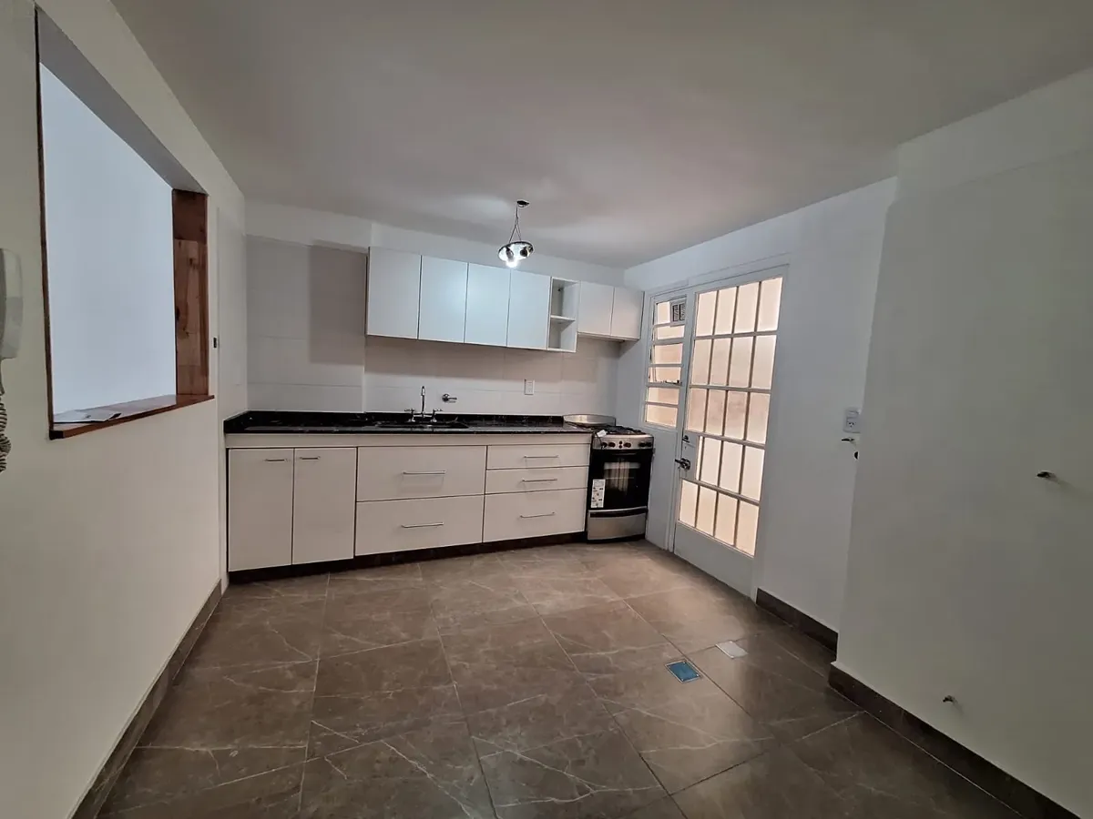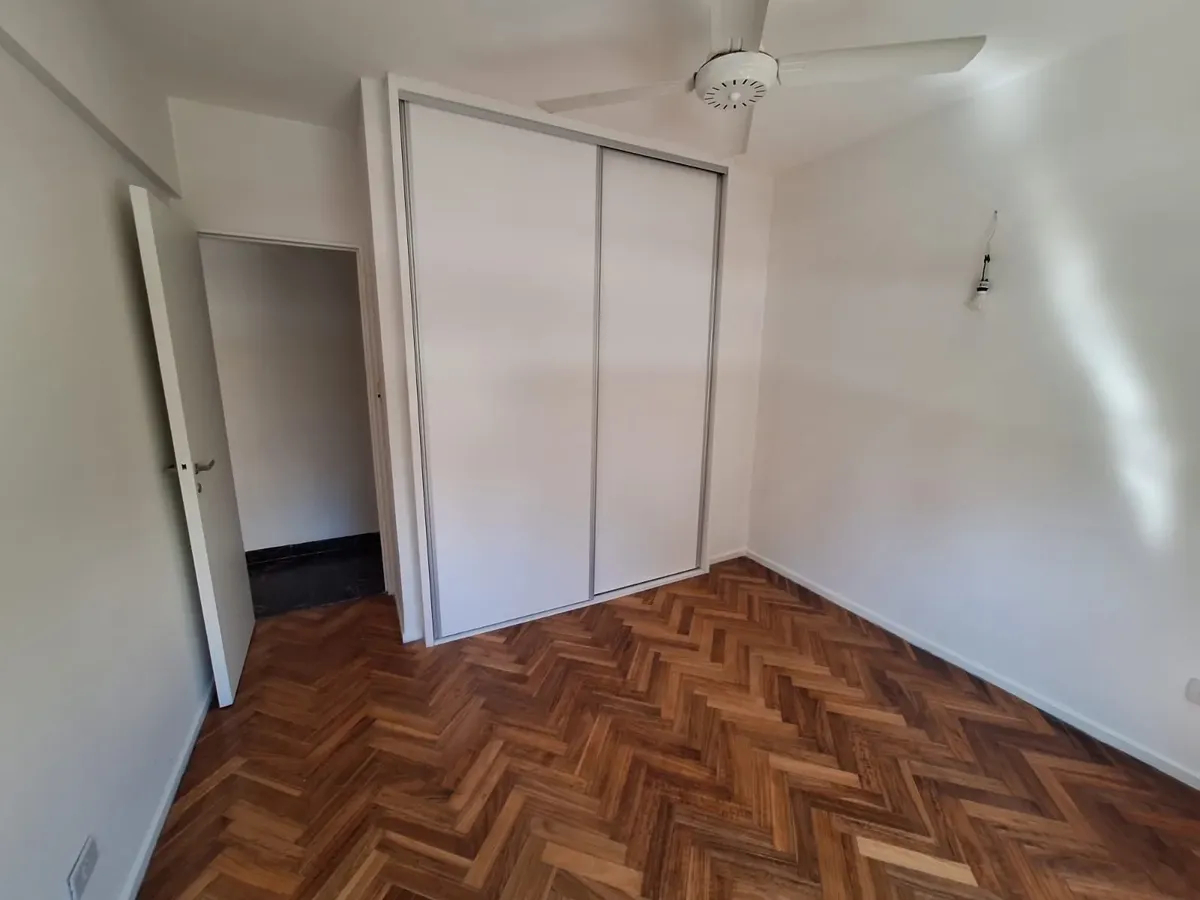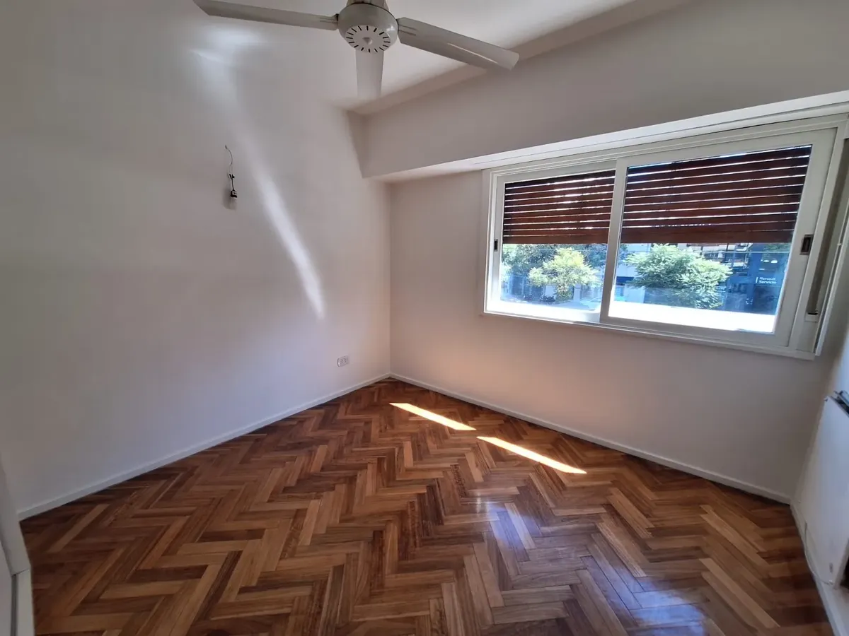 Refurbished four-room apartment on the 1st floor in Núñez. The living-dining room faces Av. Cabildo. A newly made semi-independent kitchen has a pass-through to the living area, new under-counter units and wall cabinets, a gas cooktop, and access to a covered patio. There are 3 bedrooms with new built-in wardrobes and wooden floors, plus a full bathroom and blinds in all rooms. There is air-conditioning heating only (no units installed at present). Building fees are not mentioned; measurements a
