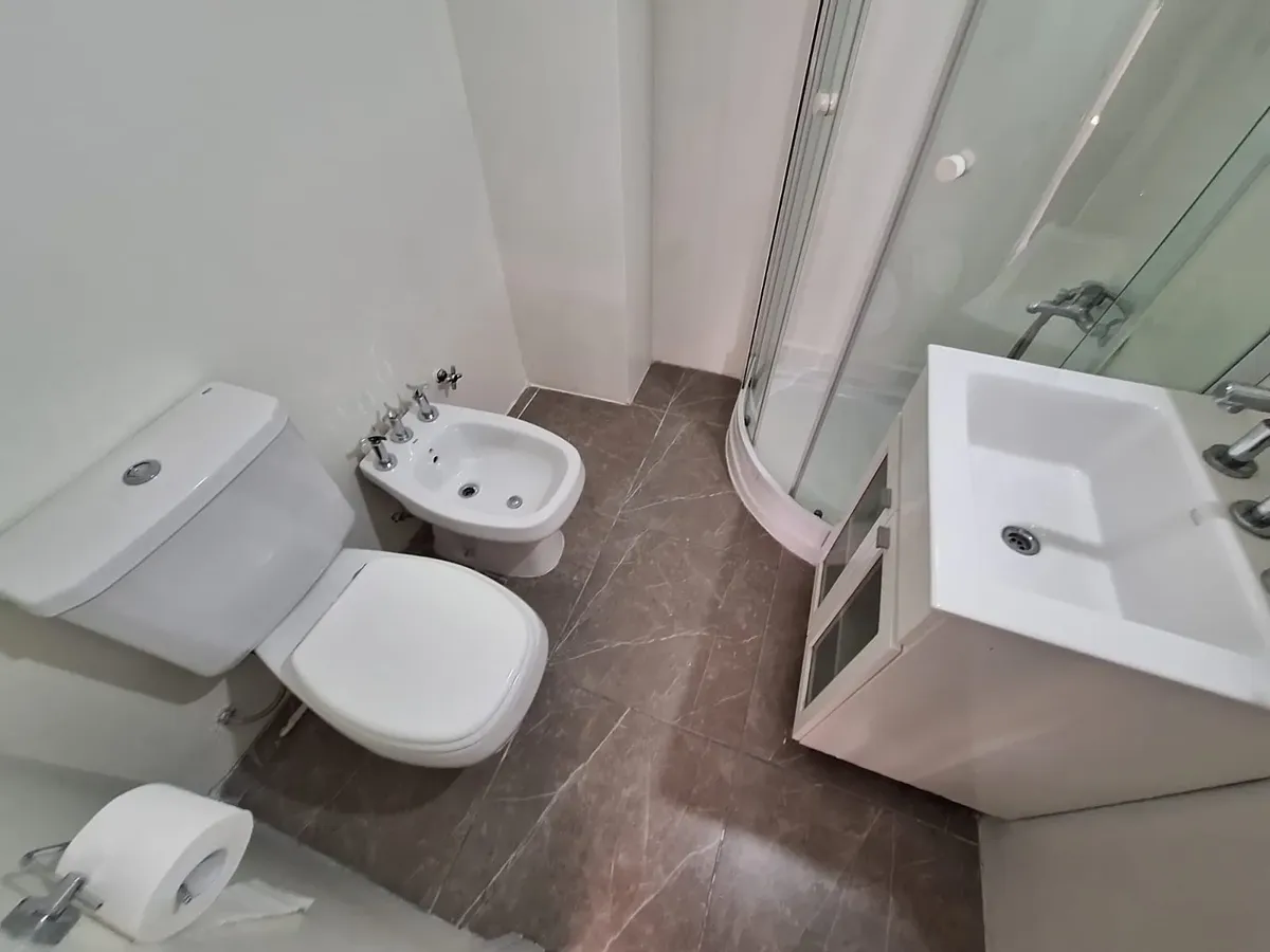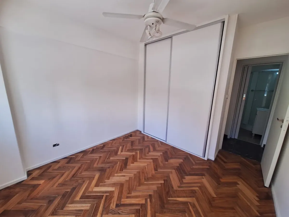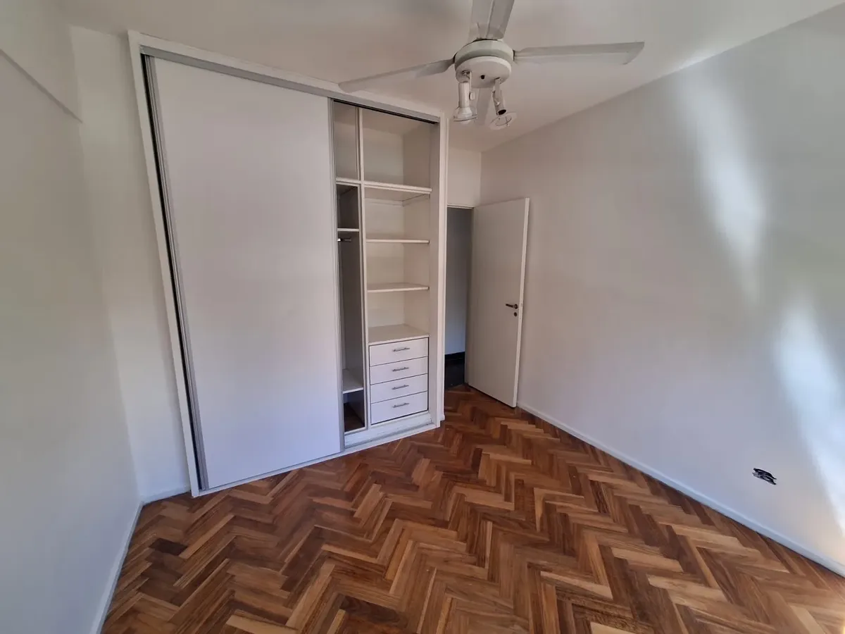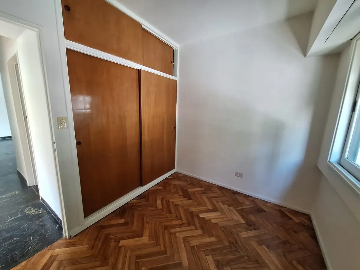 Refurbished four-room apartment on the 1st floor in Núñez. The living-dining room faces Av. Cabildo. A newly made semi-independent kitchen has a pass-through to the living area, new under-counter units and wall cabinets, a gas cooktop, and access to a covered patio. There are 3 bedrooms with new built-in wardrobes and wooden floors, plus a full bathroom and blinds in all rooms. There is air-conditioning heating only (no units installed at present). Building fees are not mentioned; measurements a