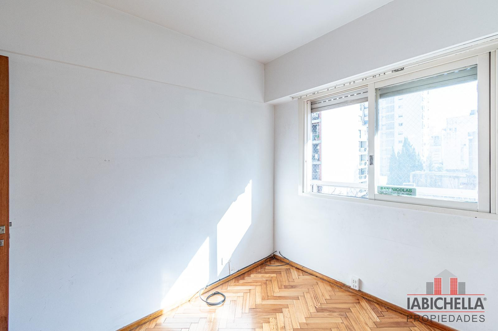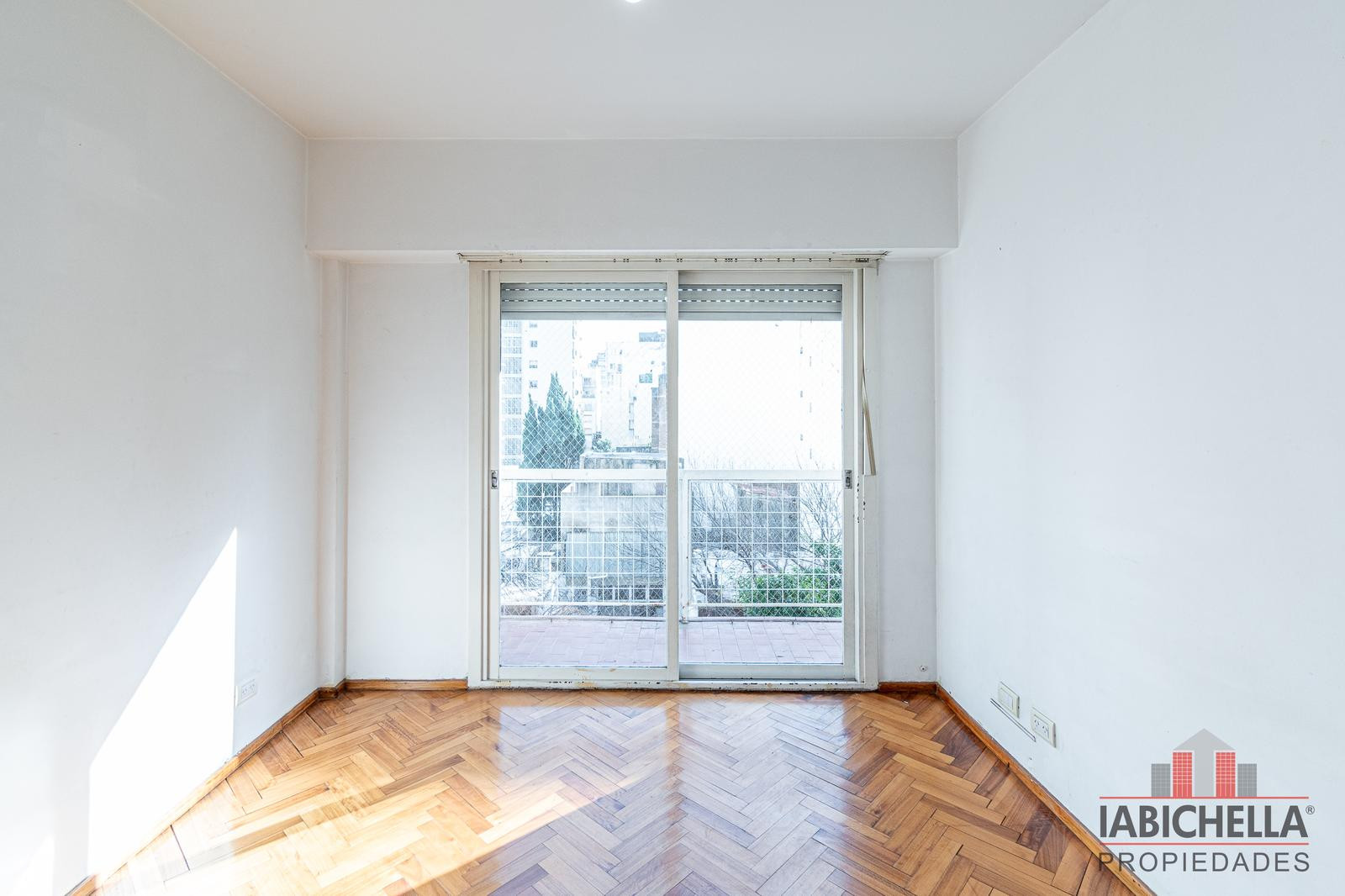 Four-room apartment on the 4th floor, street-facing in Núñez, with a continuous balcony and open views. It has 3 bedrooms with built-in wardrobes, a separate laundry area, and parquet floors in all rooms except the kitchen and bathrooms. The unit includes an assigned parking space and a private storage room, with cross-ventilation. The building has two elevators and a live-in caretaker; building fees are not specified.
