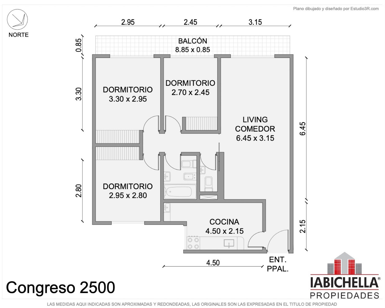 Three-bedroom, front-facing apartment with balcony in Núñez