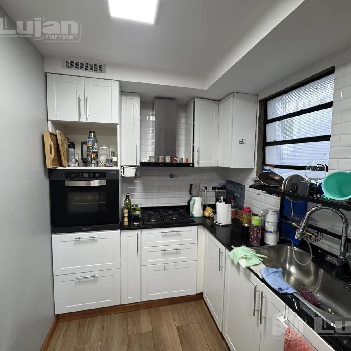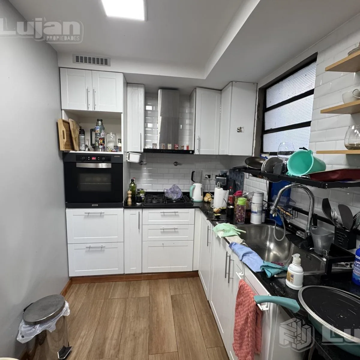 Four-room house for rent in Parque Avellaneda with 2 bathrooms and a terrace with a grill. Street-facing unit with private entrance, developed over ground floor and first floor, including a 2.8 x 5.1 garage with automatic gate. A 3 x 3 entrance hall leads to a front bedroom (3.6 x 3) with built-in wardrobe and window with bars, plus a fully tiled 2.2 x 2 bathroom. The main area has a daily dining room with an integrated kitchen (3 x 7.6) linked to a 4 x 3.3 living room; it includes an LG cold-an