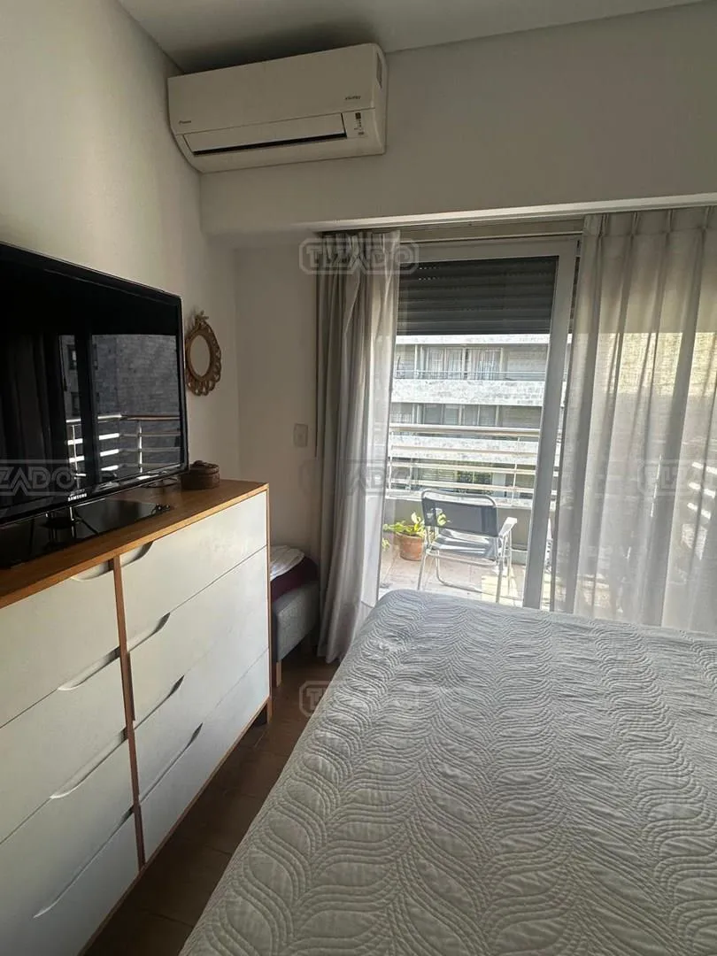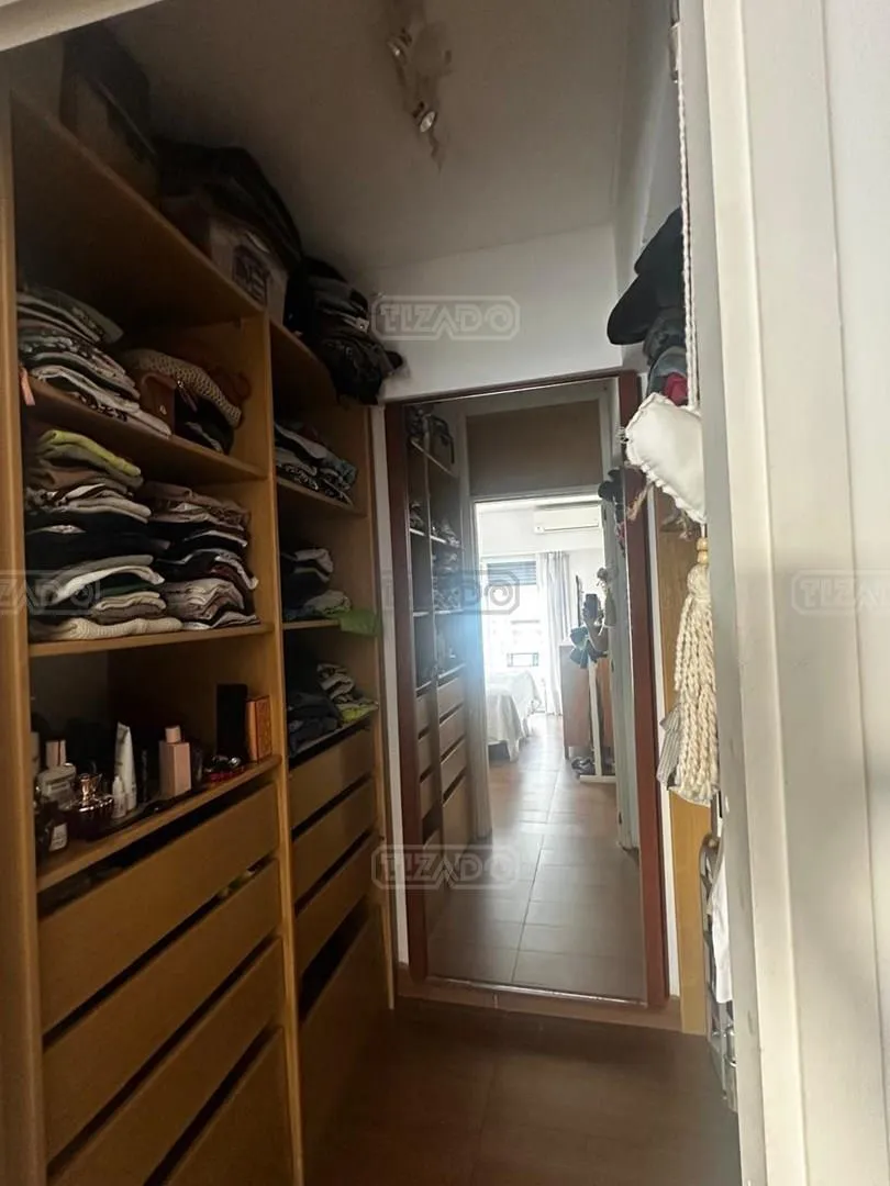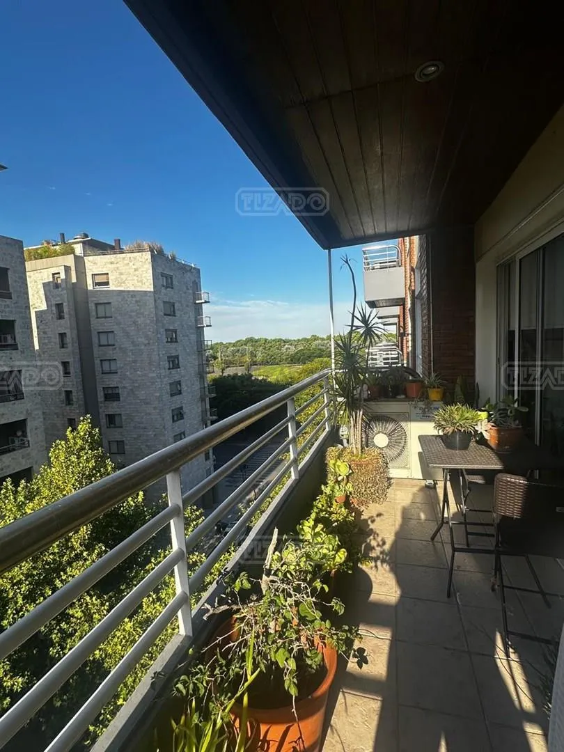 Four-room, street-facing apartment in Puerto Madero with a covered area of 91 m² and north orientation. The unit is on a single, linear floor plate with all rooms facing Encarnación Ezcurra (a cut-off street) and includes a living-dining room with access to a generous balcony, an independent kitchen with an integrated breakfast area, and three bedrooms in a row with built-in wardrobes. The master bedroom has an en-suite bathroom, a dressing area and access to a second balcony. Porcelain floor ti