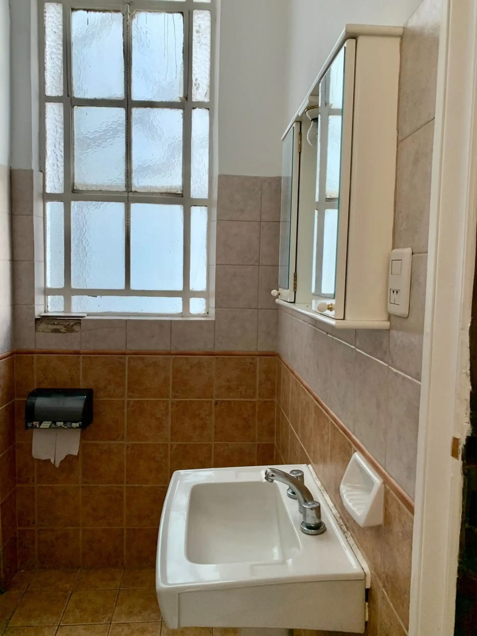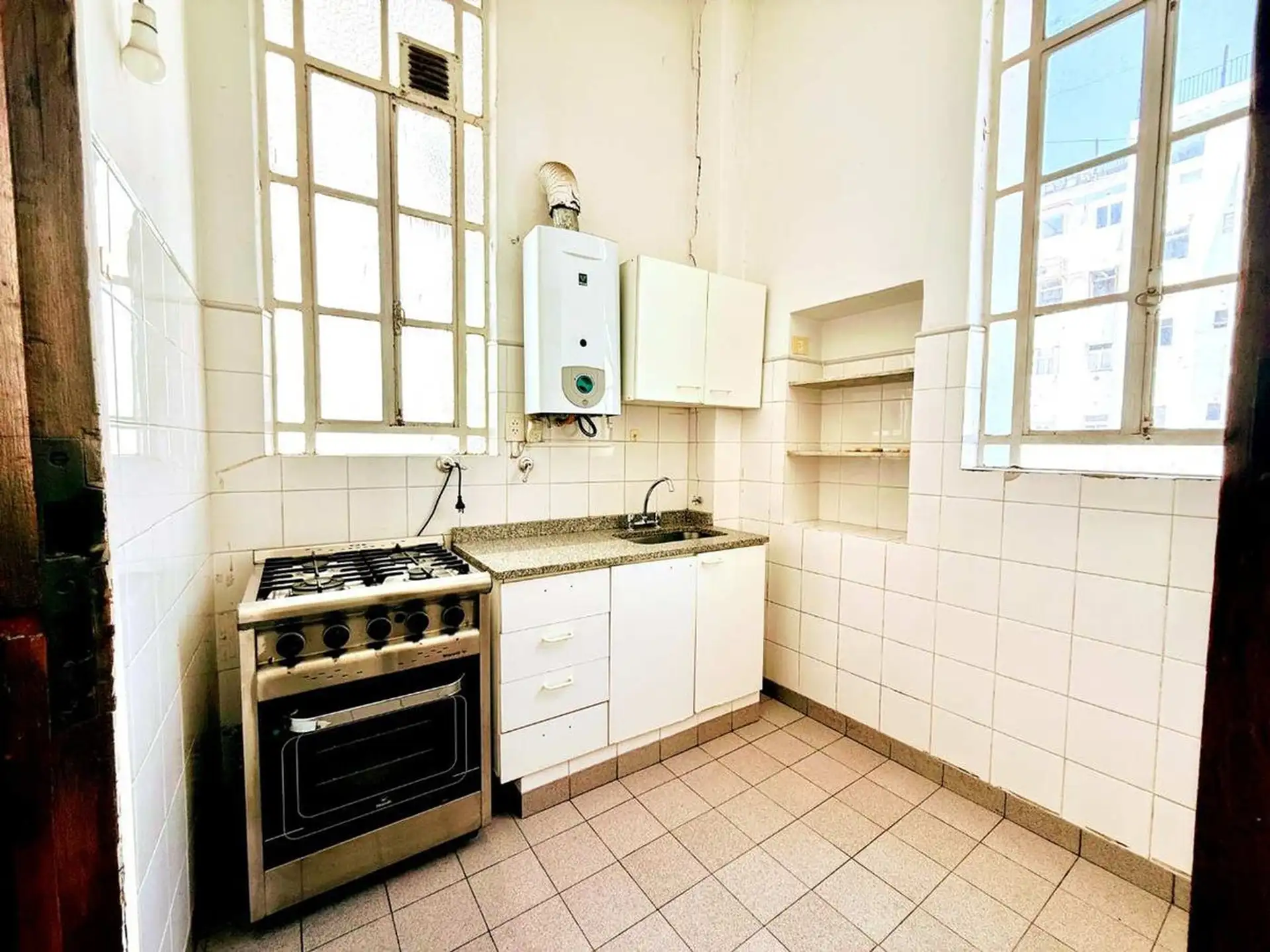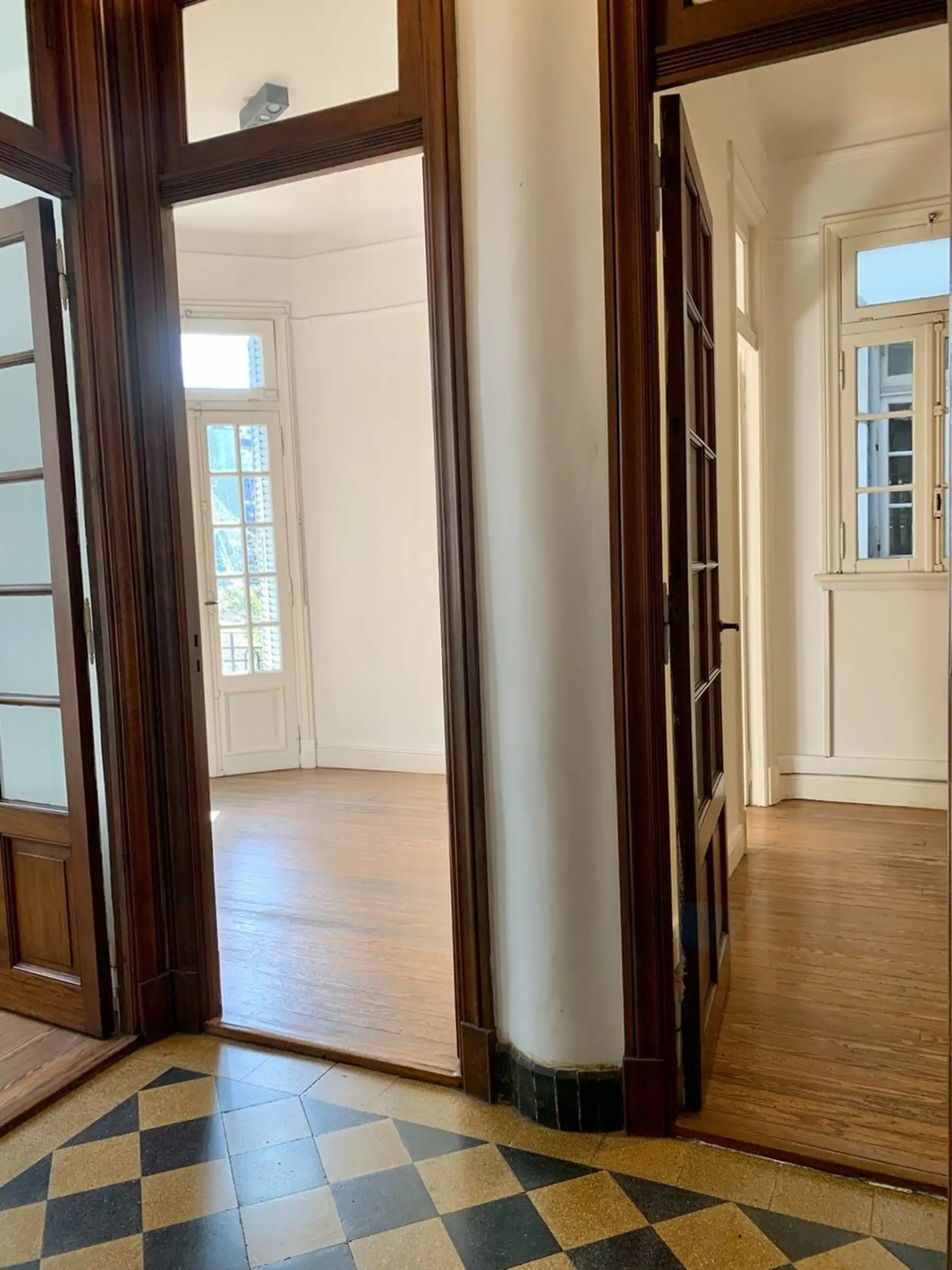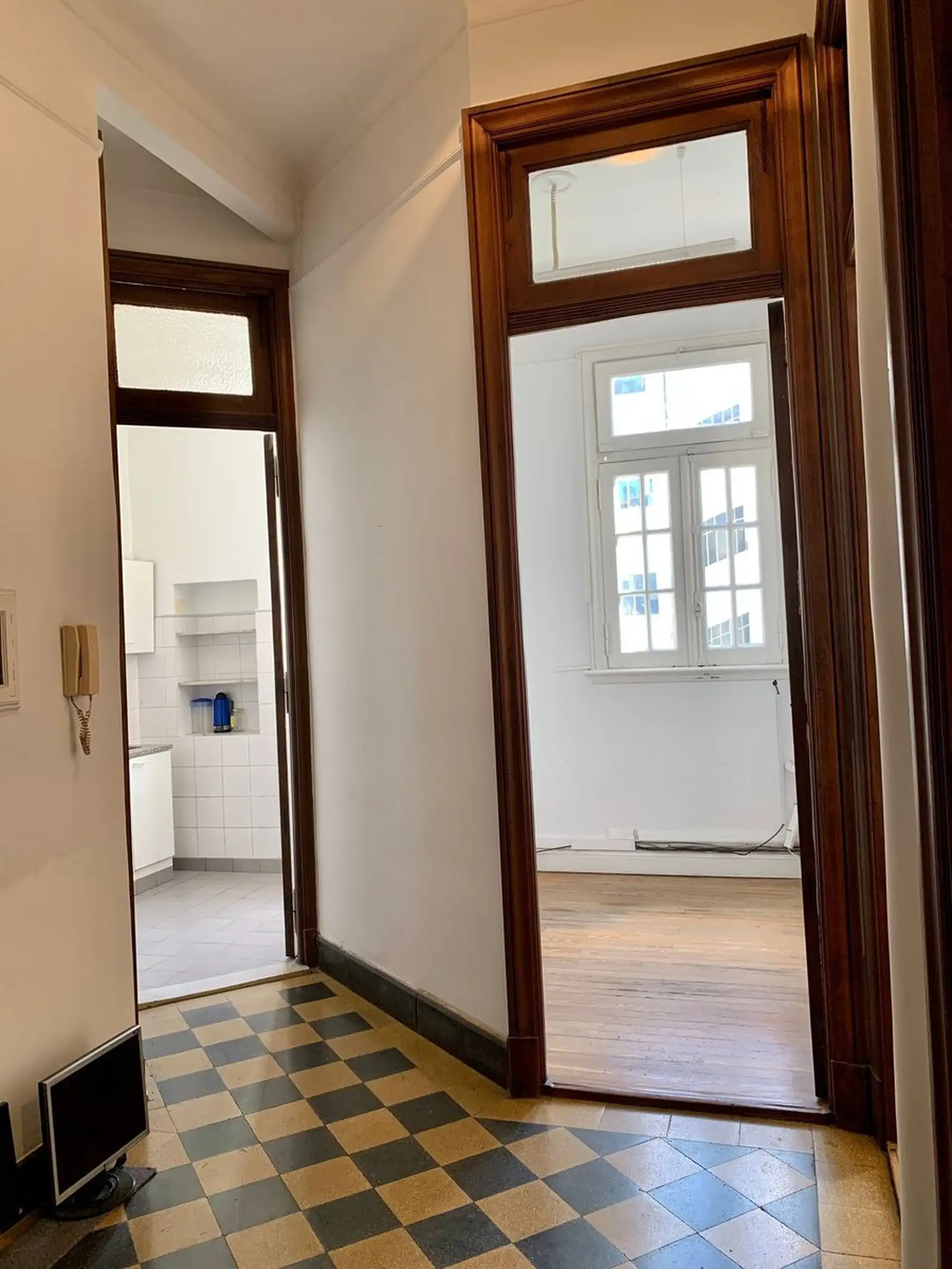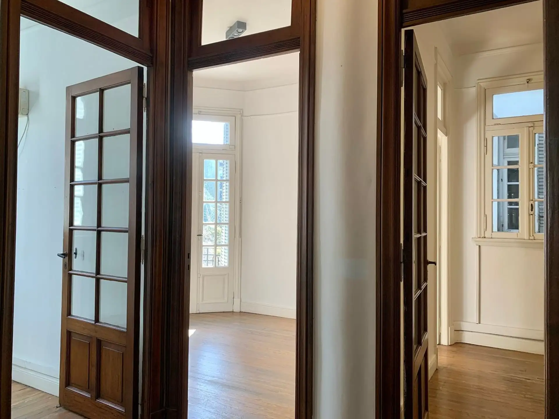 Three-bedroom apartment in San Nicolás, 75 m², street-facing on Lavalle between Alem and Bouchard, in front of Plaza Roma. The building is an early-20th-century Italian-style structure in very good condition with 3.6-metre-high ceilings and pinotea floors. The layout includes an area for a reception and a full bathroom; building security is available throughout the day. Building fees are $150,000, ABL is $13,000; AYSA is charged via the building fees. A rental guarantee bond or a property guaran