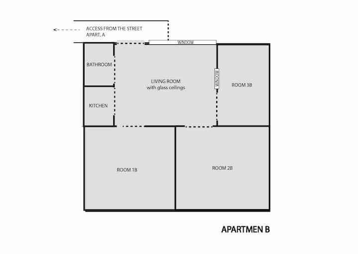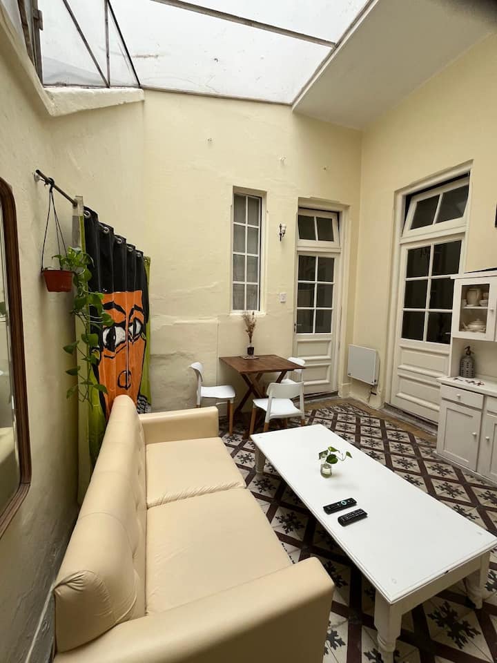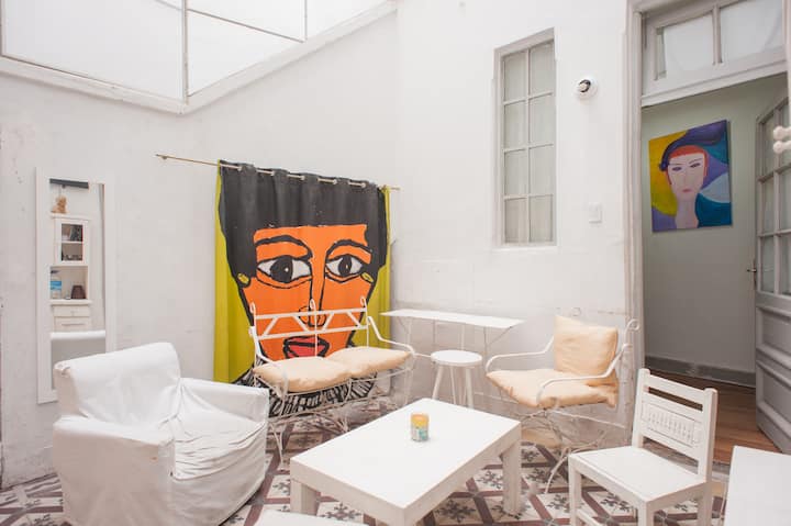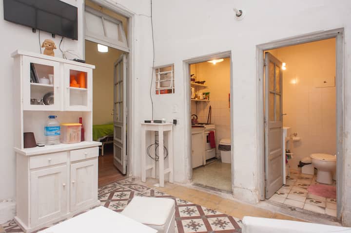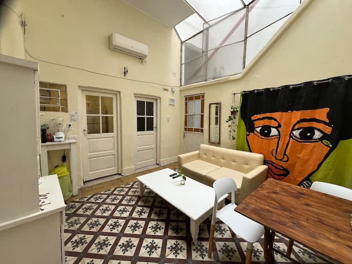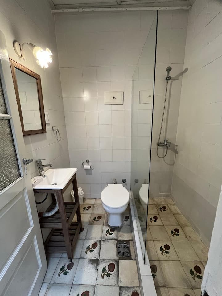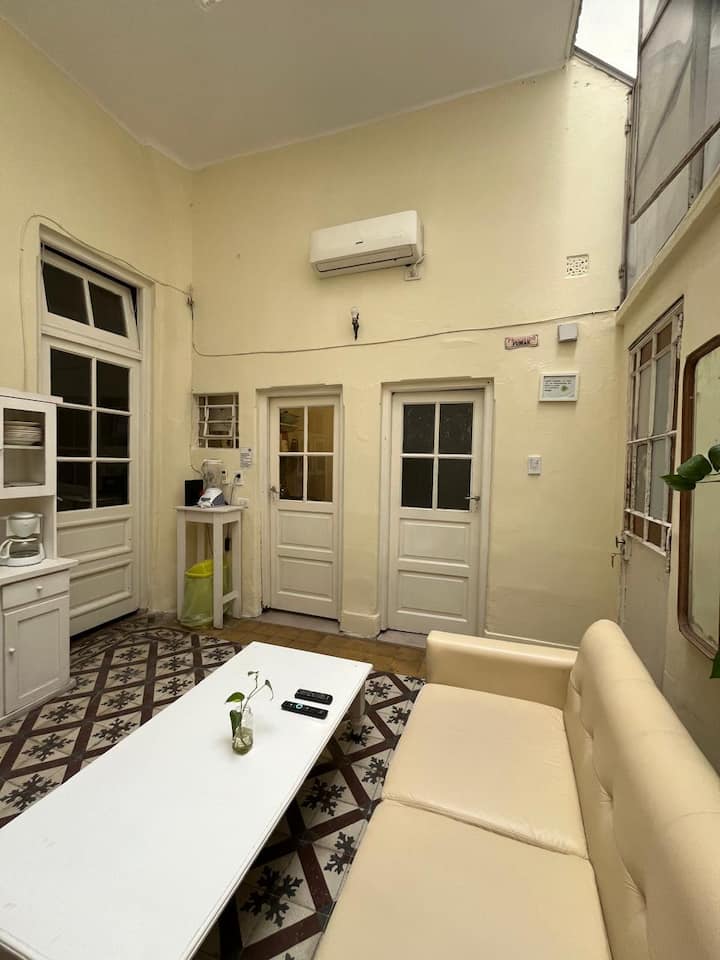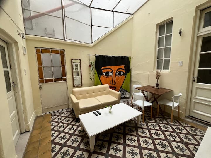 Furnished 3-bedroom apartment in a fully renovated, old-style house-looking building with 4 units in San Telmo. It has high ceilings, original wooden or mosaic floors, and a living room with a glass ceiling. The apartment is equipped with modern appliances, air conditioning, heating and fast Wi‑Fi. The rental is a full unit and all building expenses are covered, with cleaning service subject to Covid conditions.
