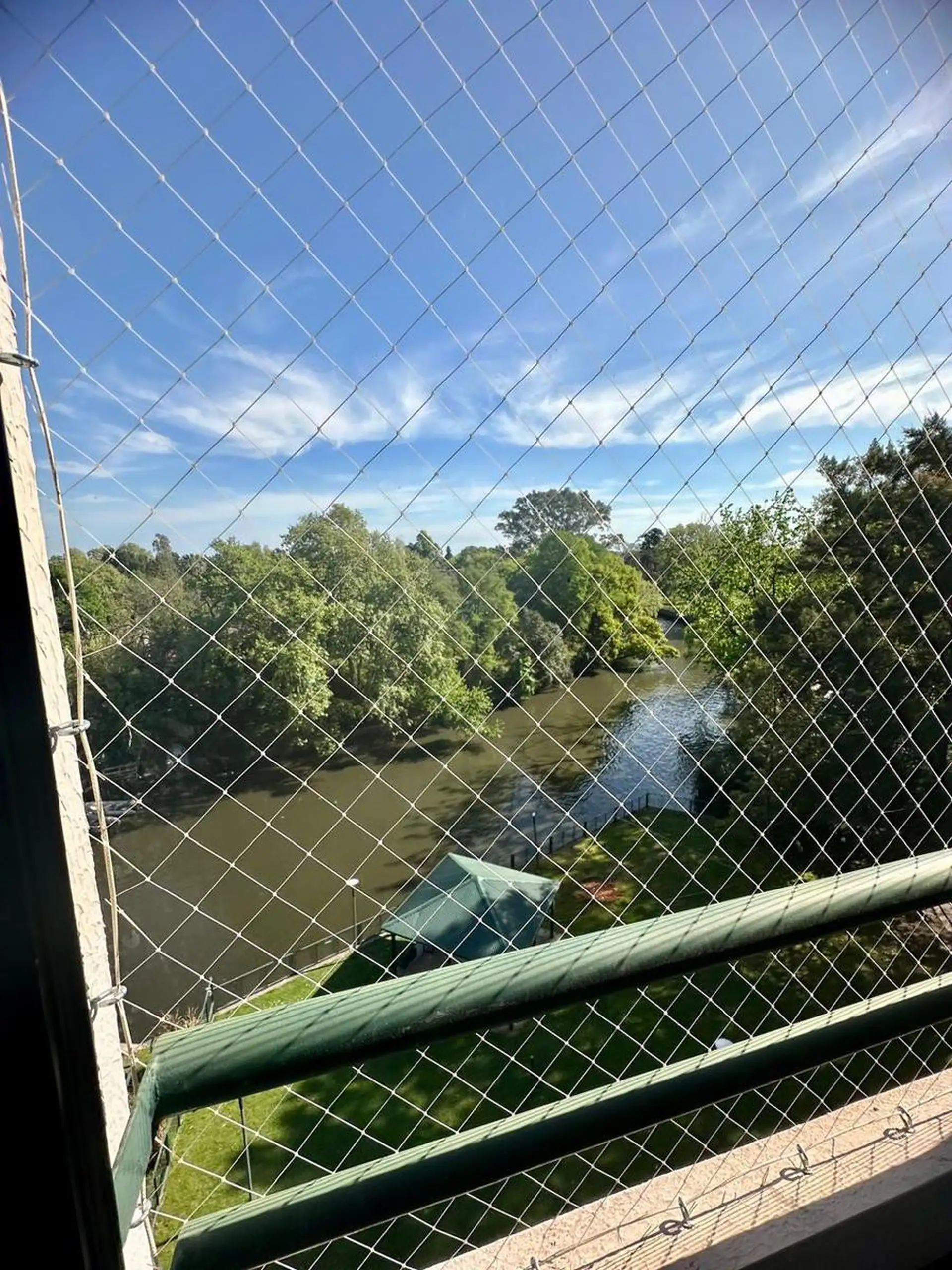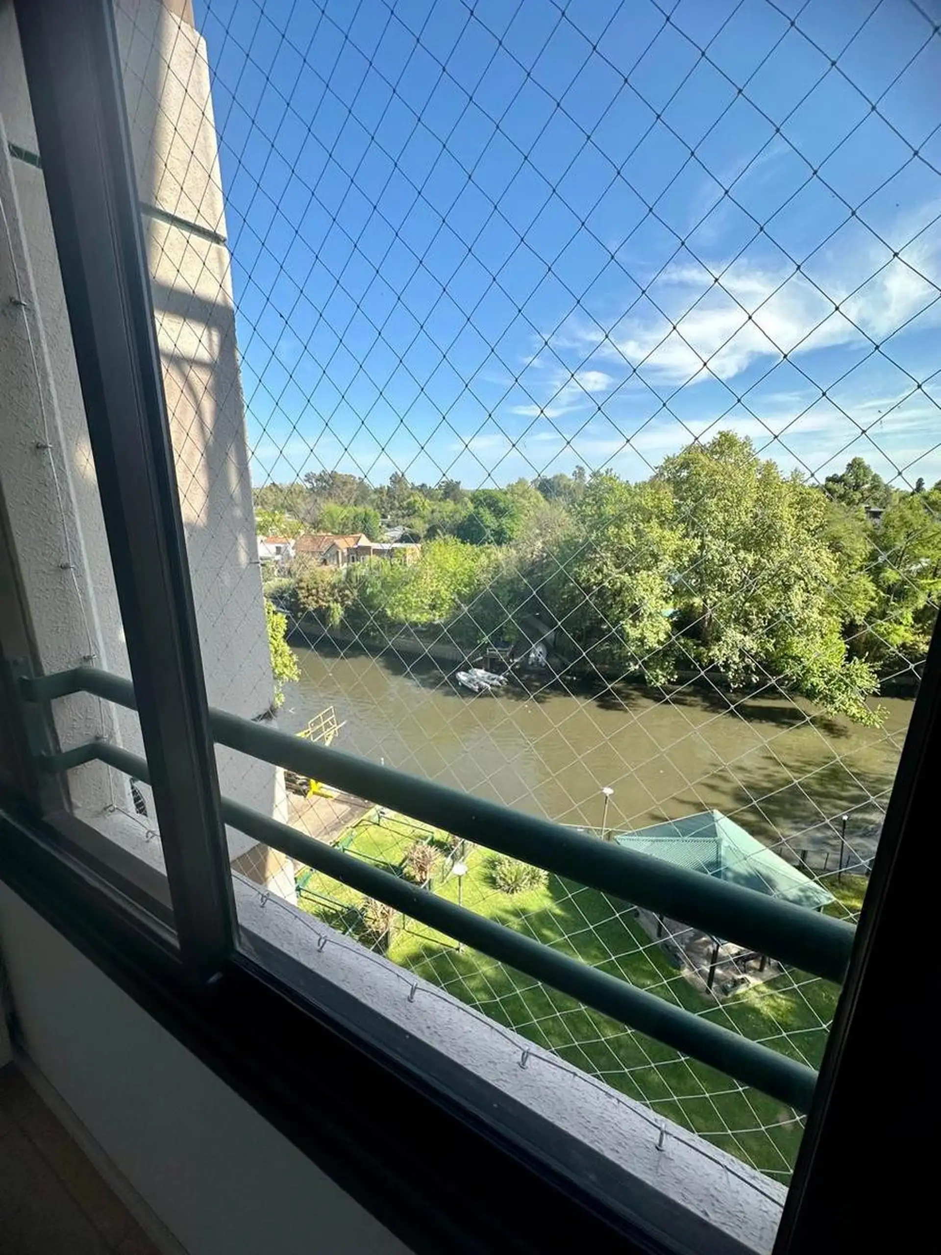 Four-room apartment in Riverside, Tigre Centro, with open river views. Living-dining room with access to the balcony, a large kitchen with laundry area and breakfast nook, a master bedroom with en-suite bathroom, and 2 additional bedrooms sharing a bathroom that also serves as a guest toilet. Covered parking, balanced flue heating, and access to a complex with a heated pool, grill-equipped quincho, communal room, landscaped gardens, nautical daycare, children’s play area, laundry facilities, 24-