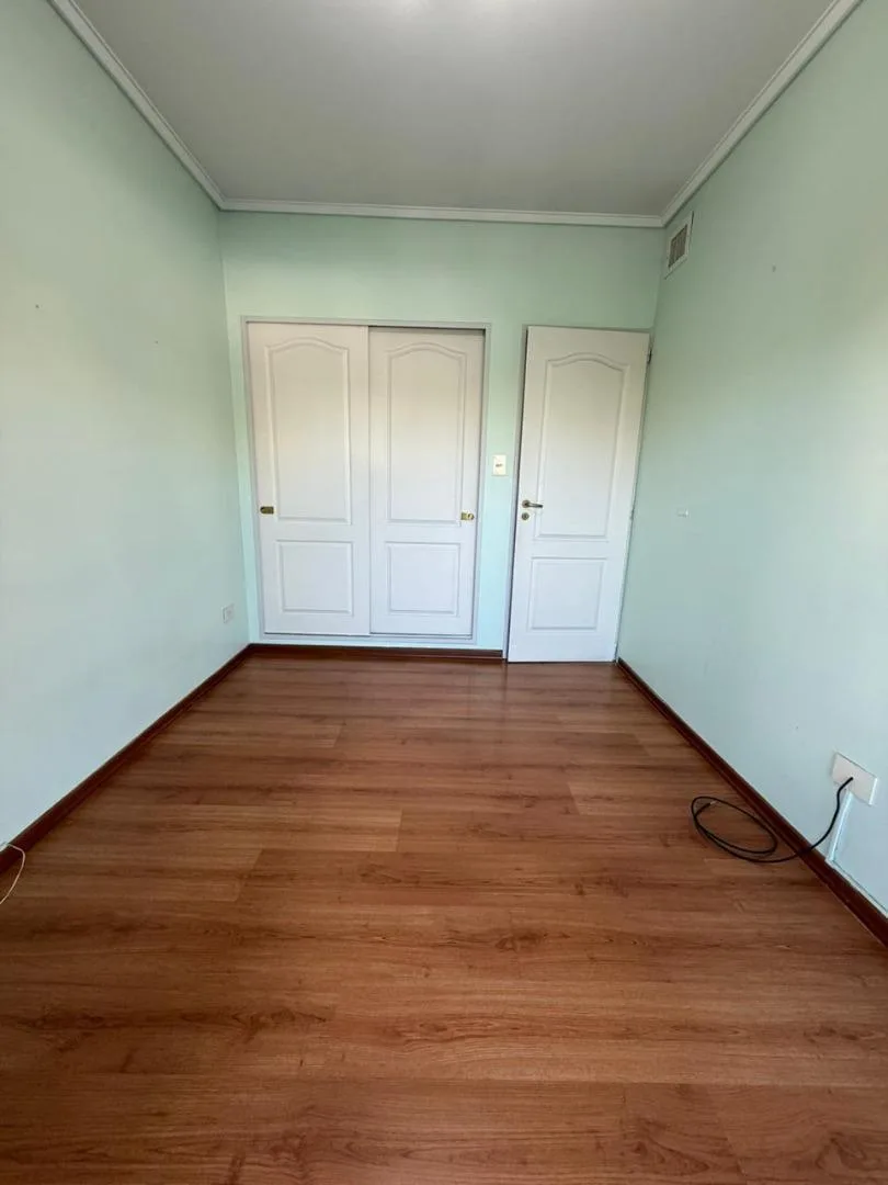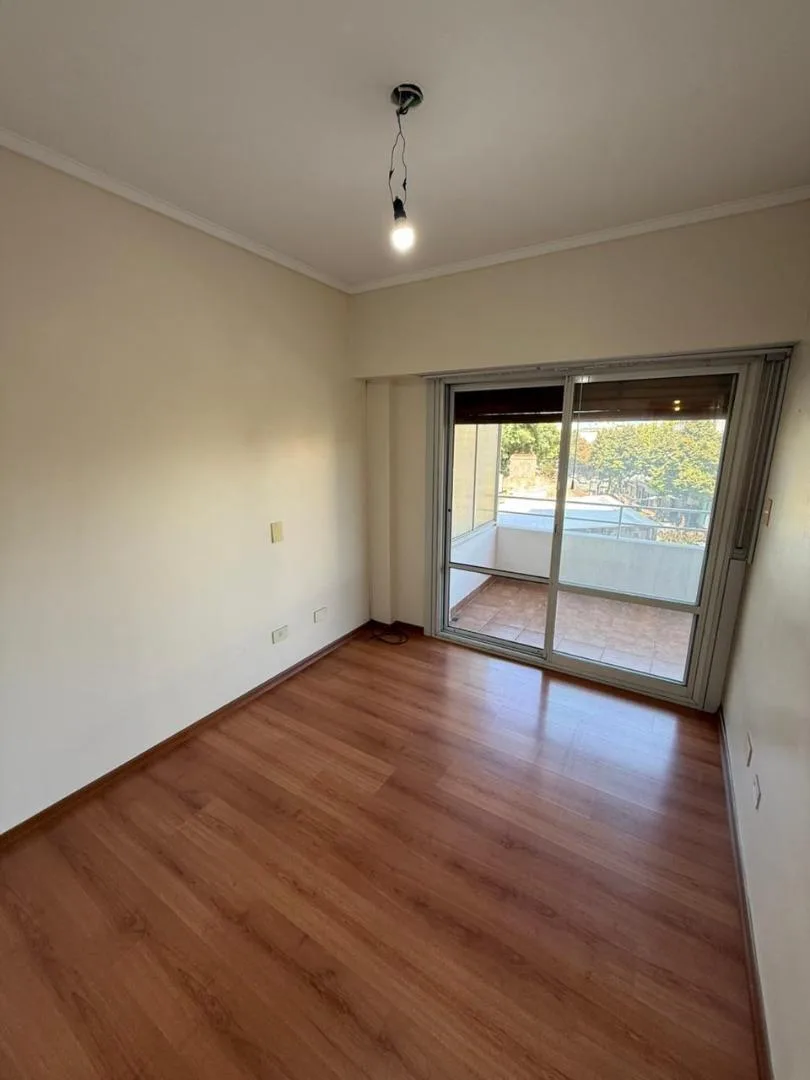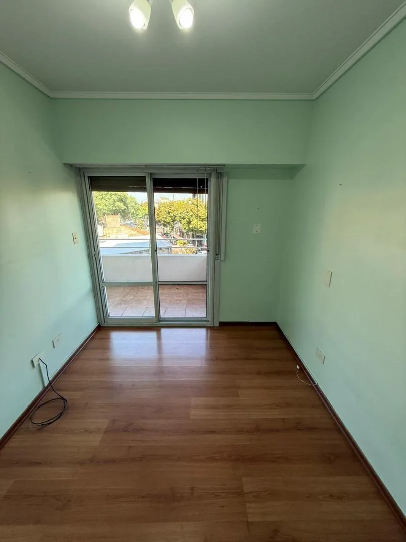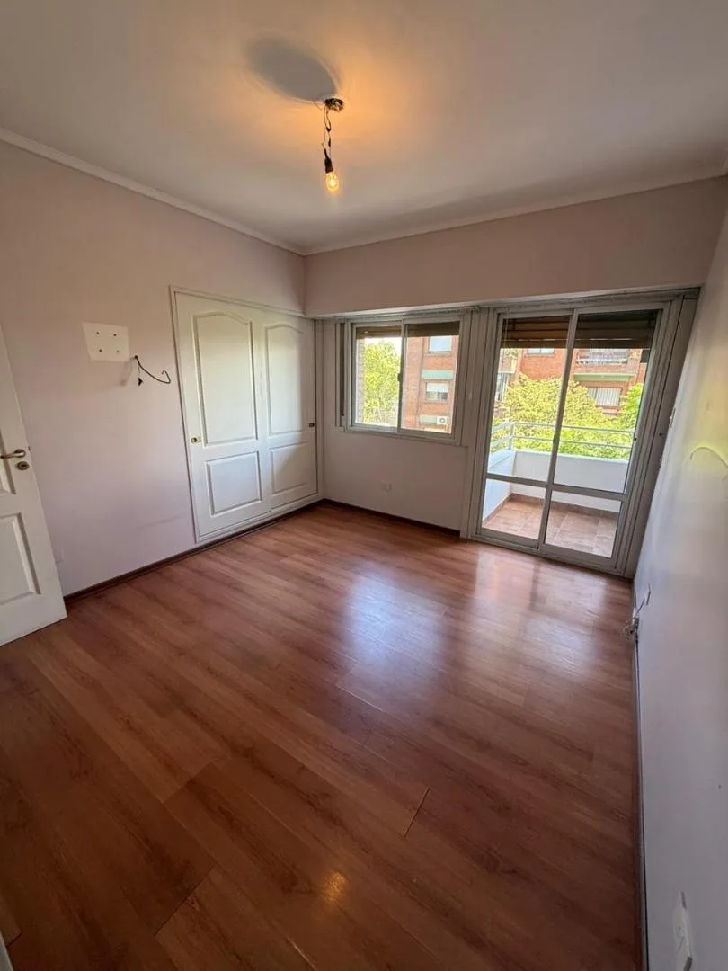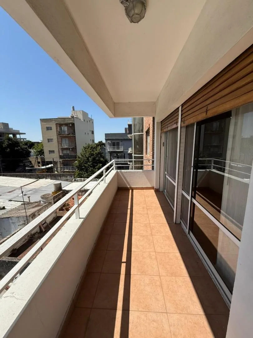 Four-room apartment of 3 bedrooms in Victoria, on Santamarina at 1100, 2nd floor, semipiso. Living-dining room with balcony facing Santamarina, reception toilet, separate eat-in kitchen with countertop, under-counter cabinets and wall units, plus a built-in laundry area. Two bedrooms with closets and access to a second balcony, full bathroom with bathtub, and a primary bedroom with closets and an en-suite full bathroom. The building has a pool and a communal room (SUM) with a grill.
