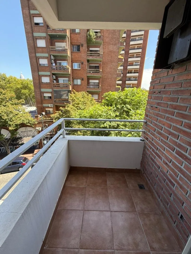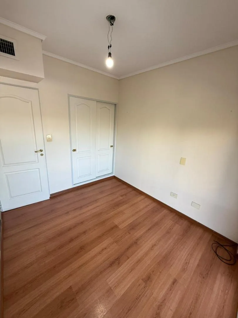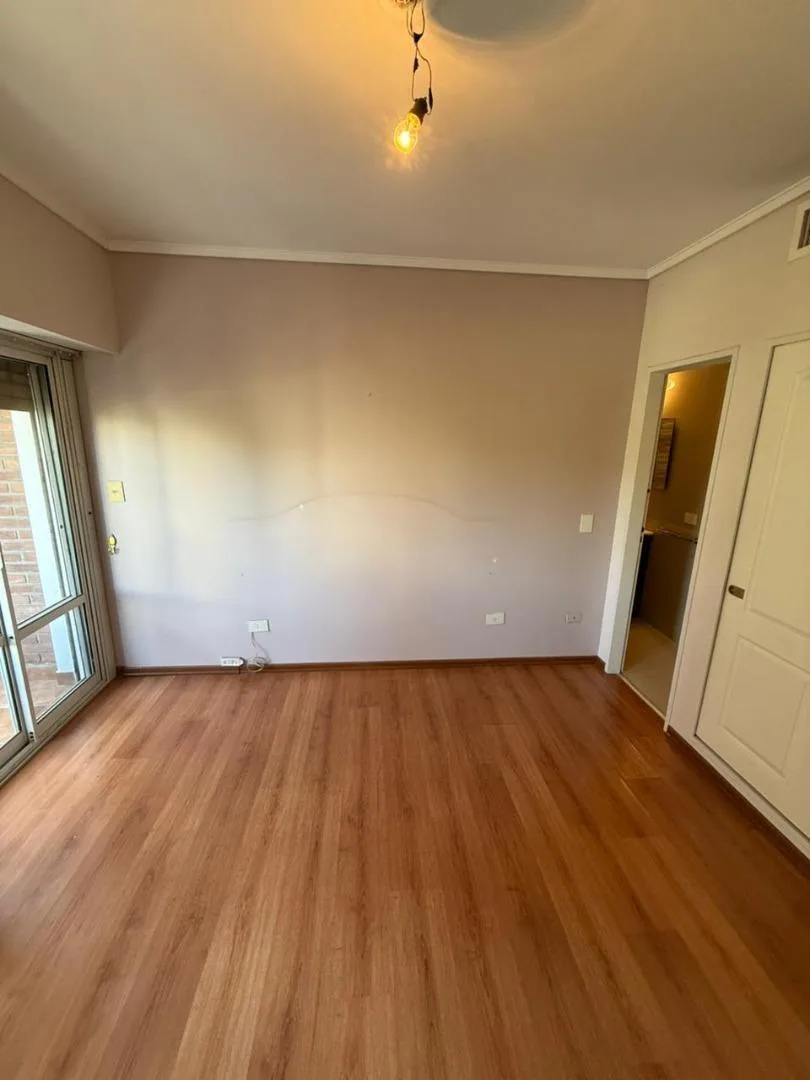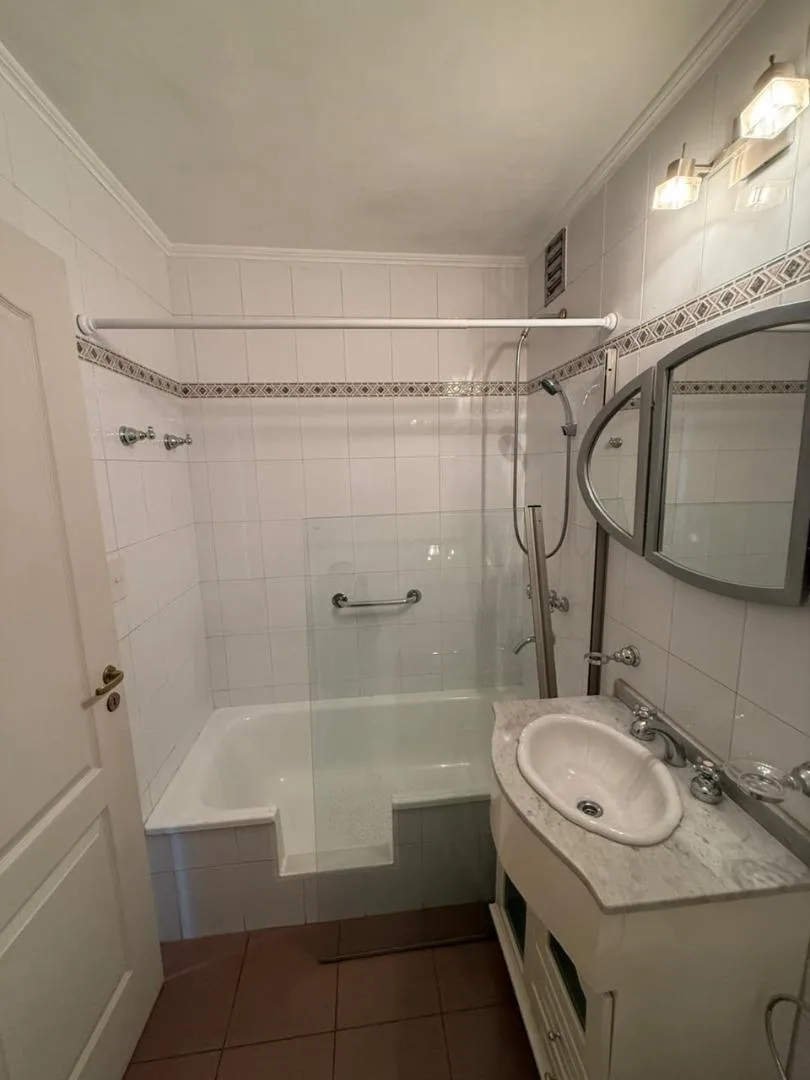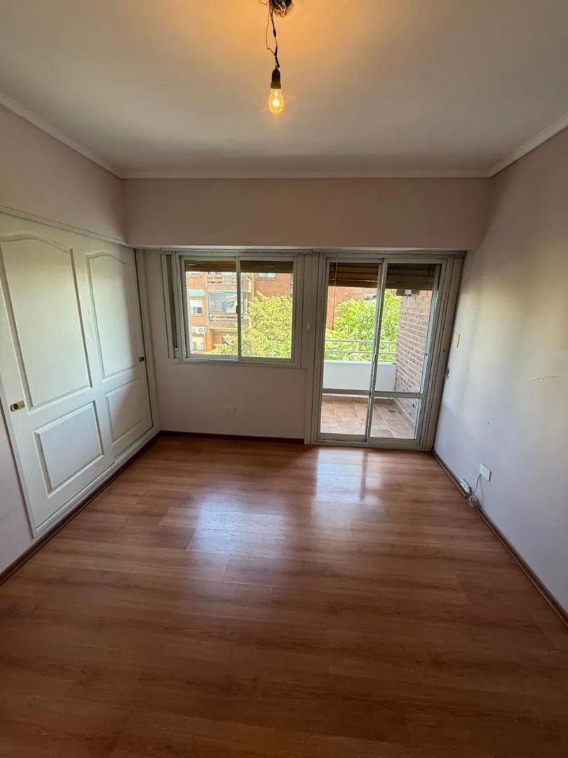 Four-room apartment of 3 bedrooms in Victoria, on Santamarina at 1100, 2nd floor, semipiso. Living-dining room with balcony facing Santamarina, reception toilet, separate eat-in kitchen with countertop, under-counter cabinets and wall units, plus a built-in laundry area. Two bedrooms with closets and access to a second balcony, full bathroom with bathtub, and a primary bedroom with closets and an en-suite full bathroom. The building has a pool and a communal room (SUM) with a grill.