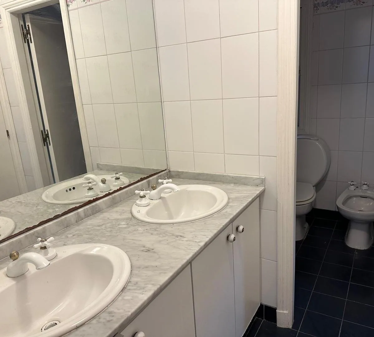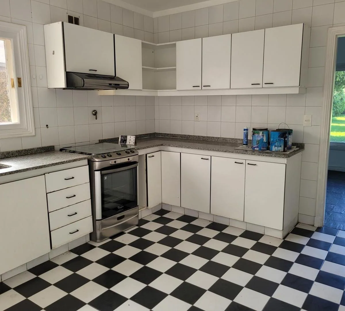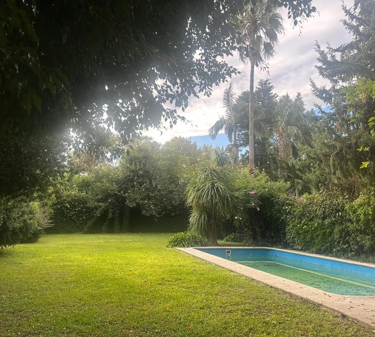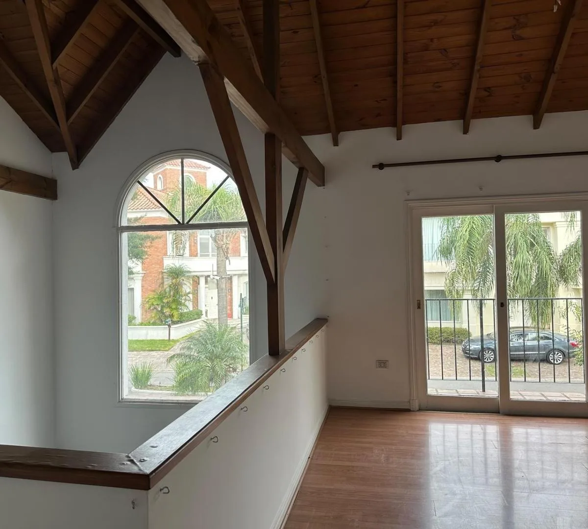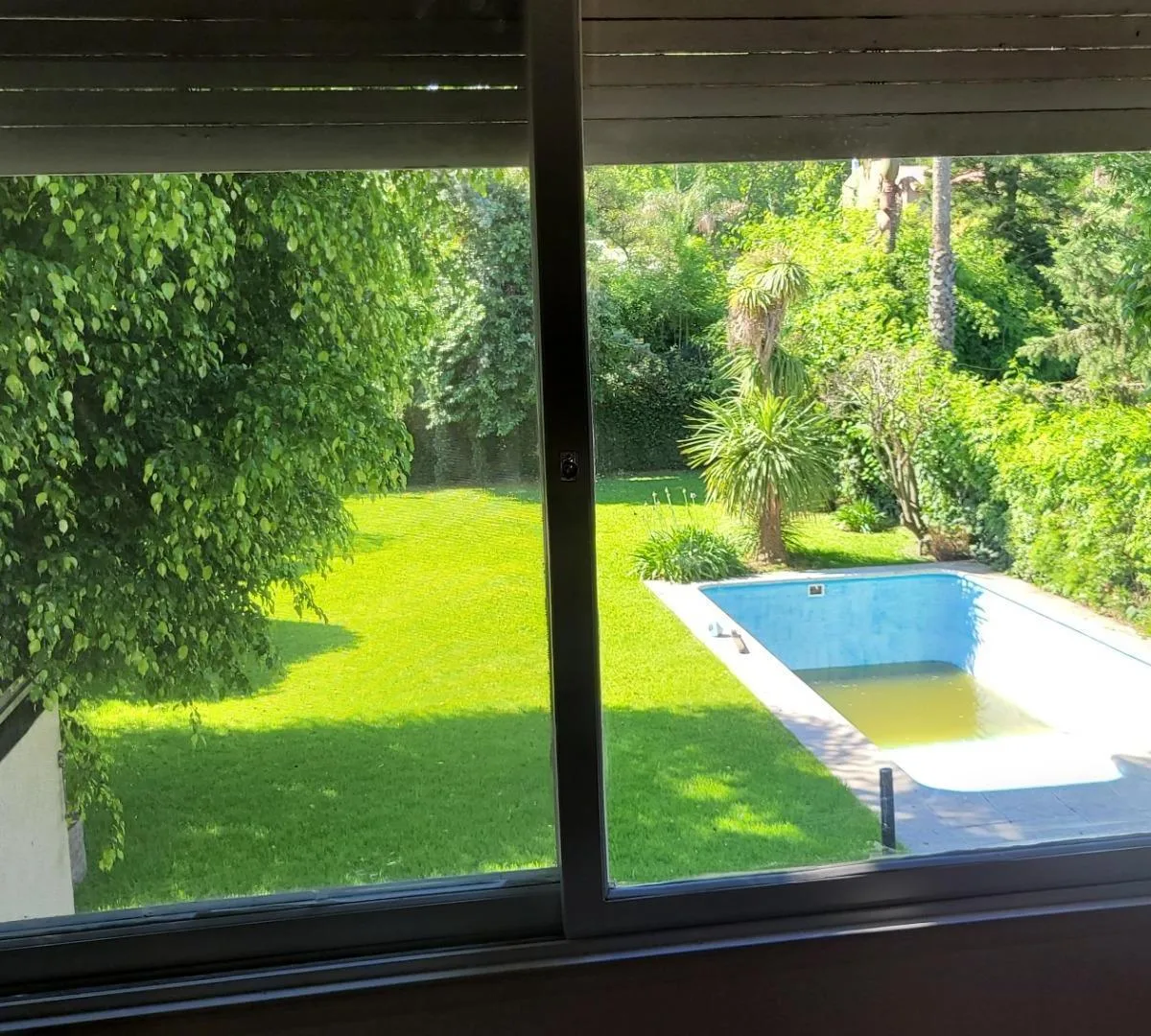 House for rent with 4 rooms in El Boating Club, San Isidro. 3 bedrooms and service quarter, with 2-year contract; unfurnished. Ground floor has an entry hall, powder room, L-shaped living room with double windows and a wood-burning fireplace, dining room overlooking the garden, family room, equipped kitchen, separate laundry with access to the patio, and a service bedroom with a full bathroom and side entrance. Exterior includes a covered gallery with awning, BBQ grill and built-in asador, and a