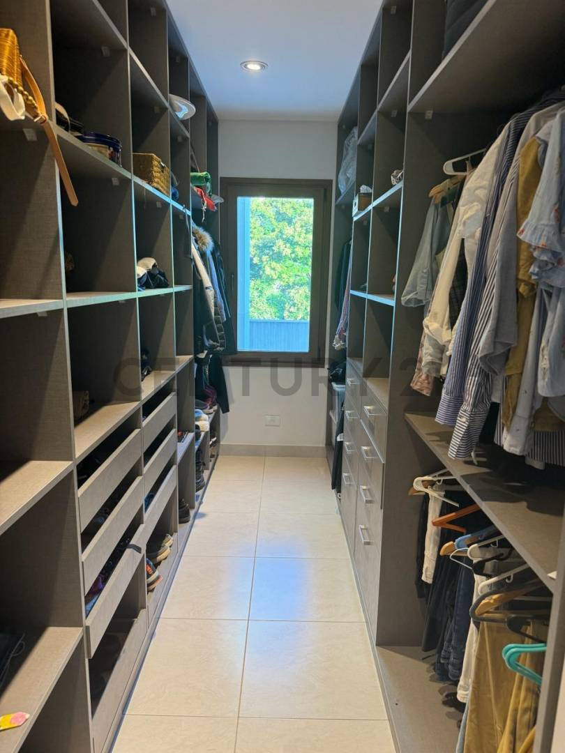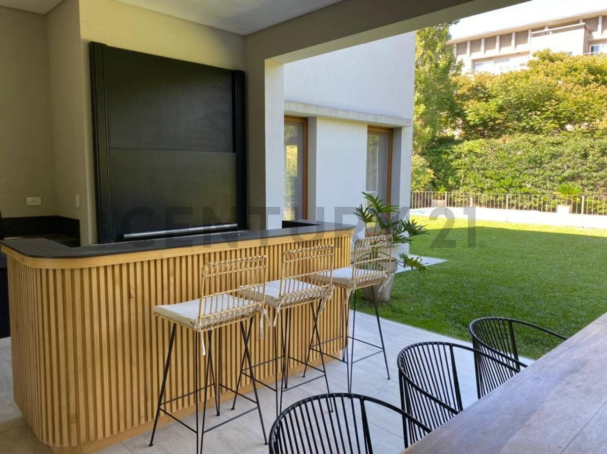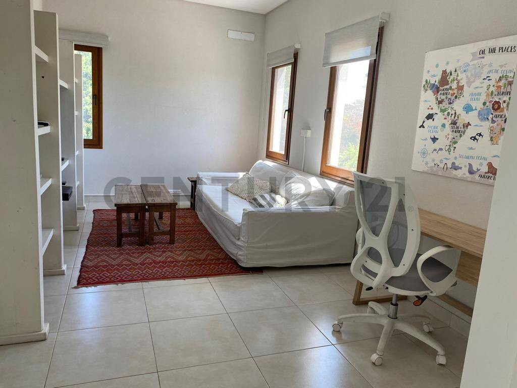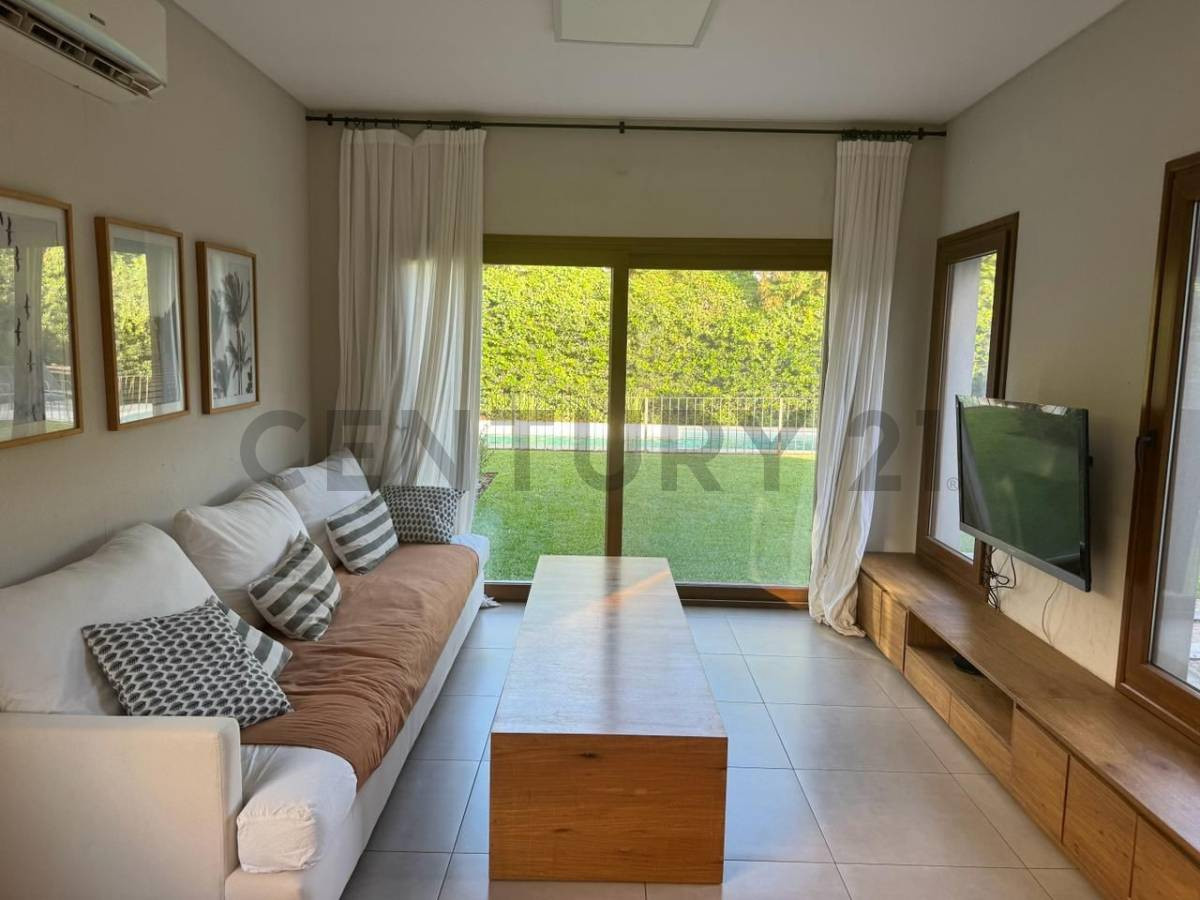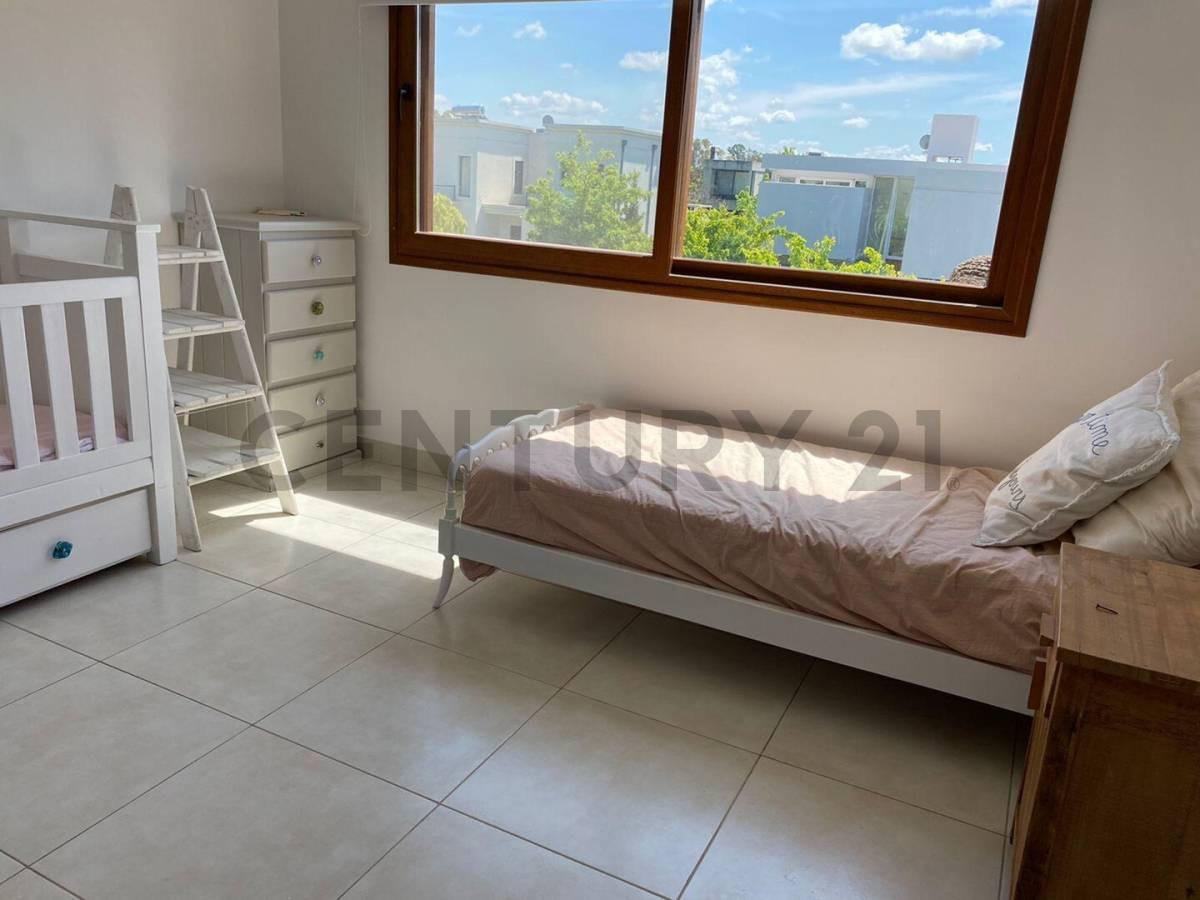 Temporary rental house in Windbells, San Fernando, in a gated community. It has 3 bedrooms, 2 en-suite bedrooms and 2 bedrooms sharing a bathroom, plus a playroom and a family room. Ground floor includes a kitchen with a daily dining area, a living-dining room, a guest toilet, a service area with laundry and a service room. The garden includes a covered gallery with living area, bar and table, a grill, and a fenced pool. Available from 5 January to 15 February for USD 6,200 for the period, and U