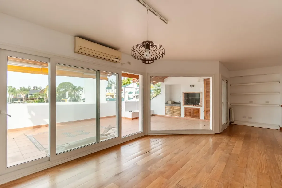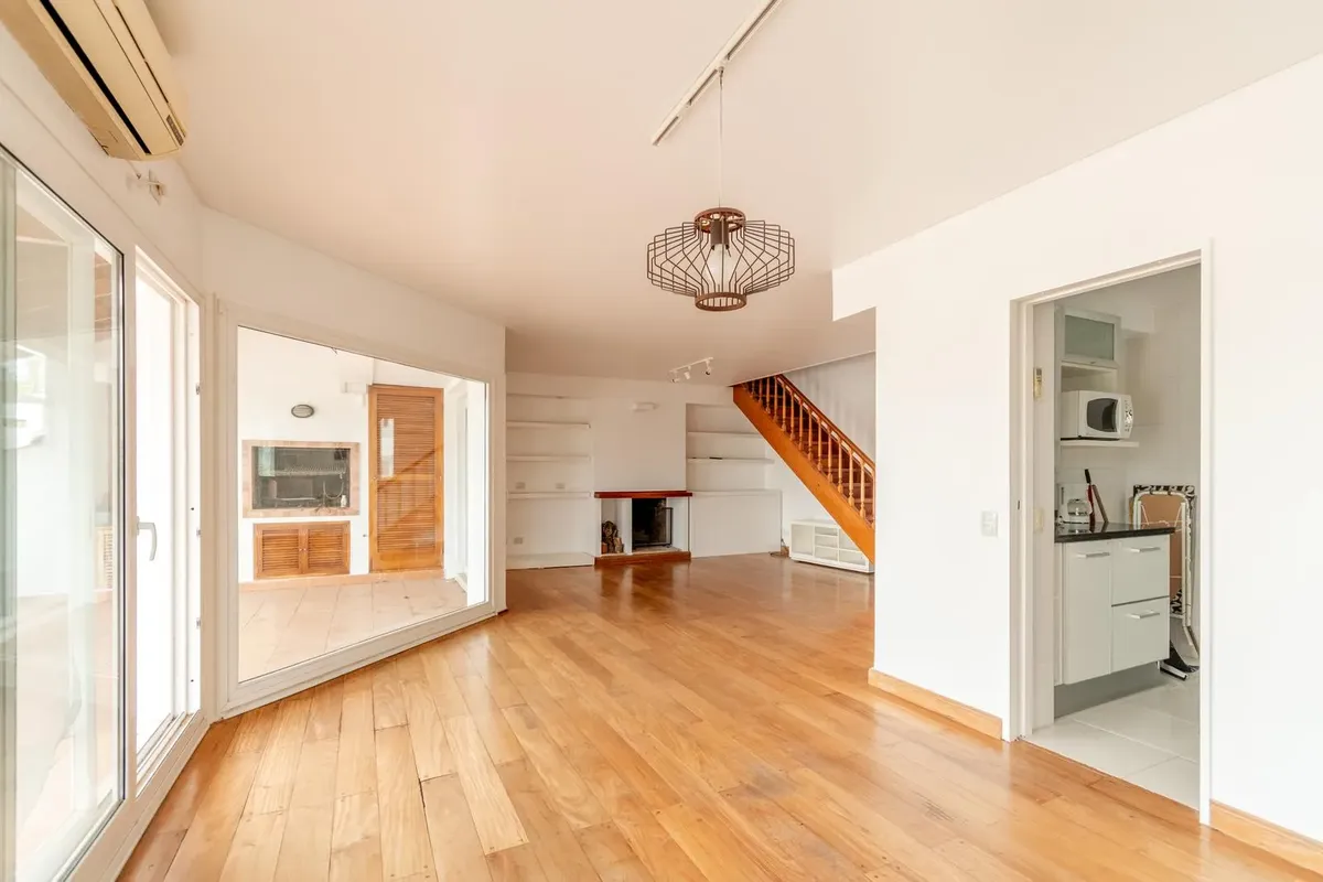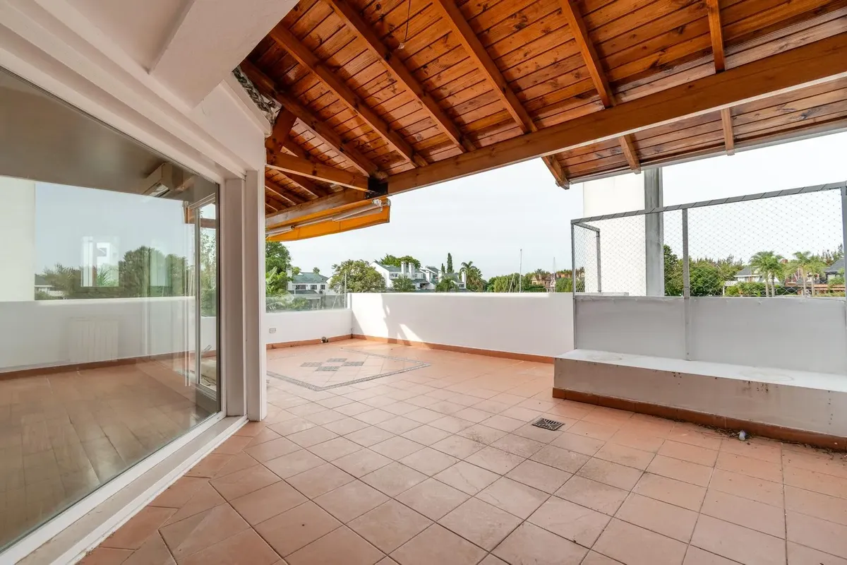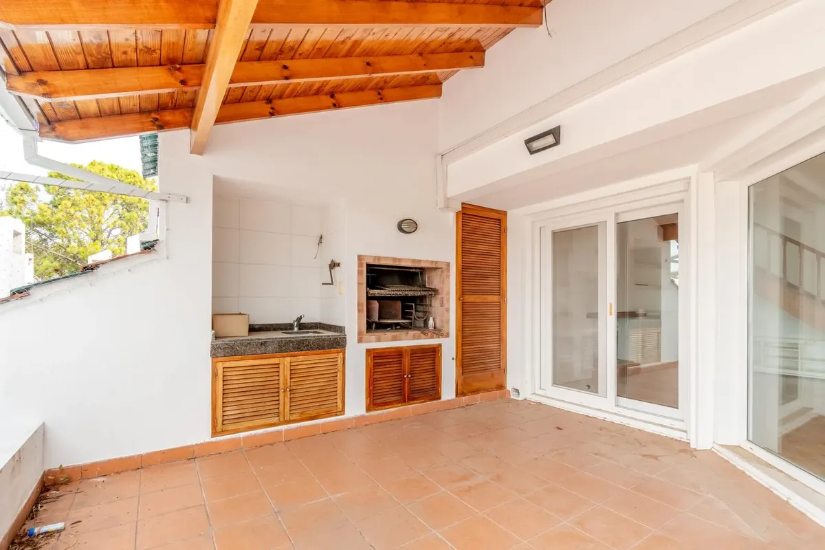 Two-storey apartment in the Marina del Sol residential area in Victoria, with 3 bedrooms and a parking space. It has 24-hour security and access to a clubhouse, 2 restaurants, tennis courts, a gym and a pool. Ground floor comprises a living-dining room with fireplace and access to a terrace, a guest toilet, a kitchen with a separate laundry area, and a semi-covered terrace with a grill and a sink. The upper floor has a distribution hallway with a large storage closet, a master bedroom en suite,