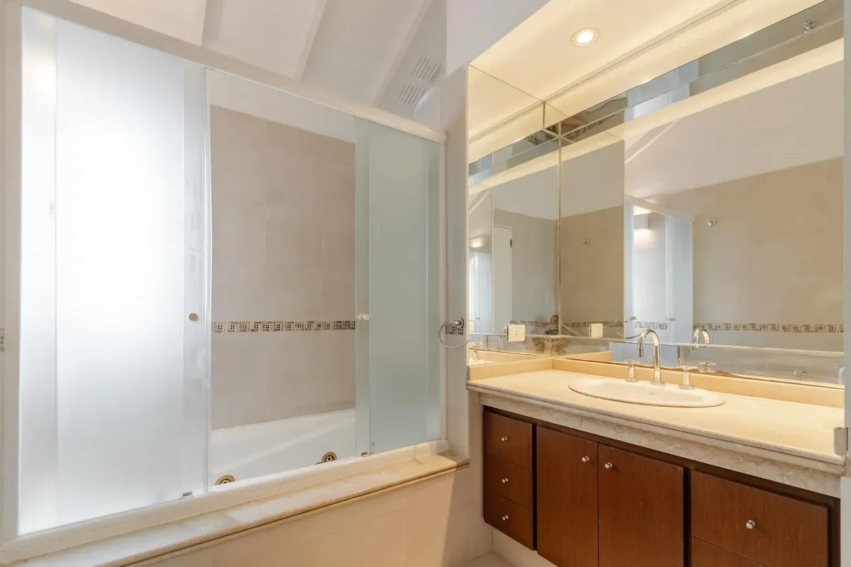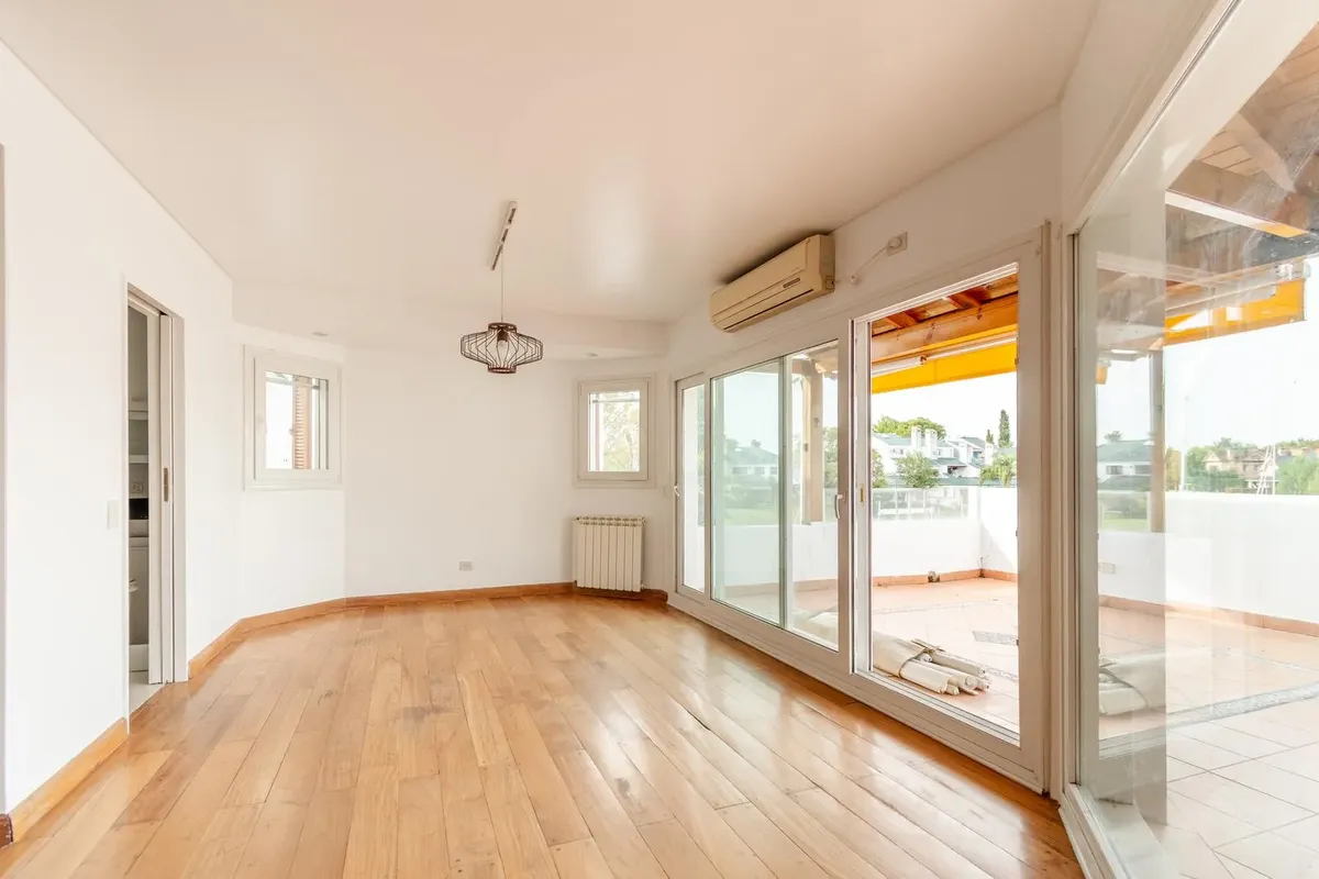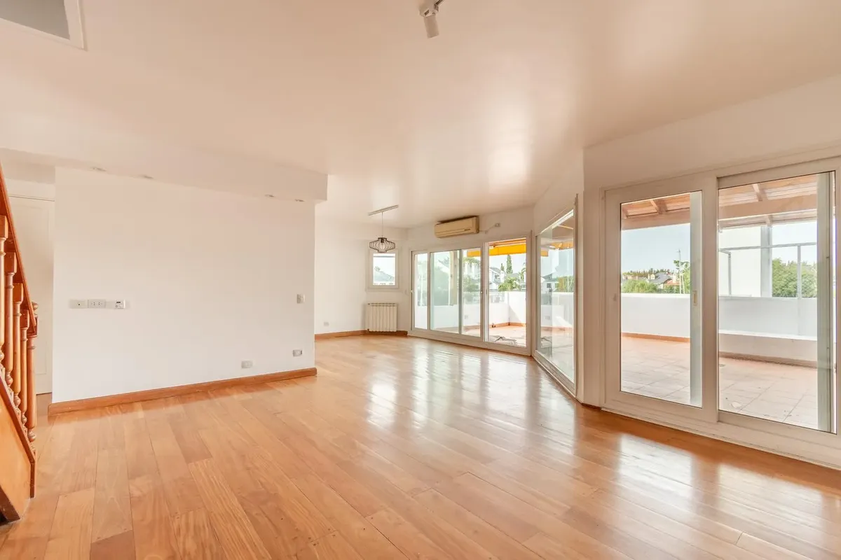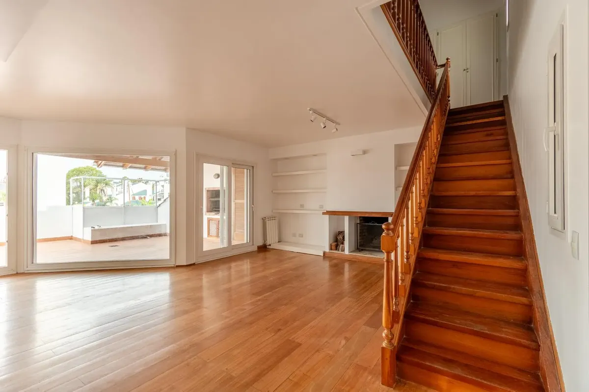 Two-storey apartment in the Marina del Sol residential area in Victoria, with 3 bedrooms and a parking space. It has 24-hour security and access to a clubhouse, 2 restaurants, tennis courts, a gym and a pool. Ground floor comprises a living-dining room with fireplace and access to a terrace, a guest toilet, a kitchen with a separate laundry area, and a semi-covered terrace with a grill and a sink. The upper floor has a distribution hallway with a large storage closet, a master bedroom en suite,