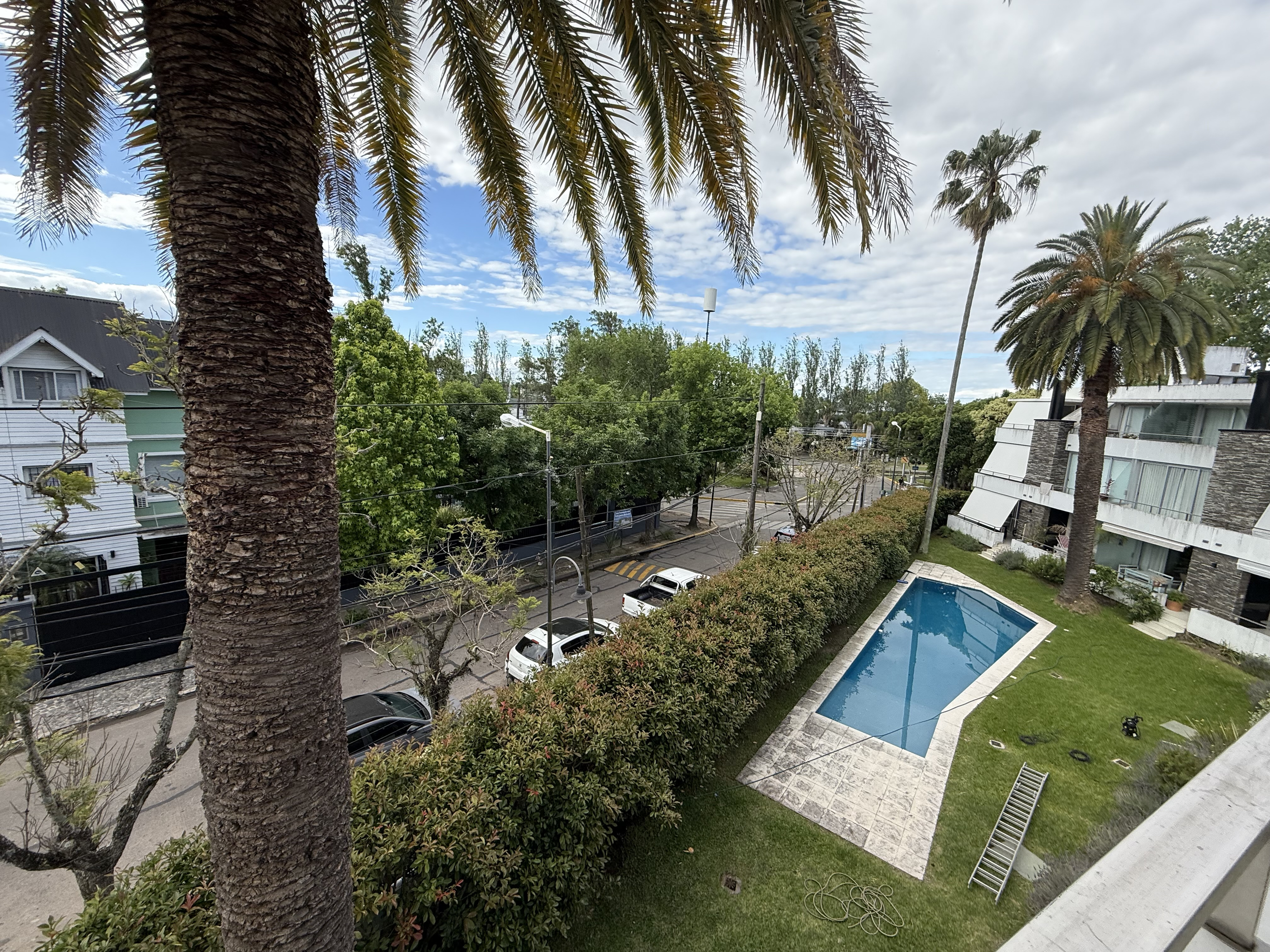 Three-bedroom apartment in Victoria, San Fernando, with north-facing orientation. The unit is set within a property on the corner of Lanusse and Arias in Punta Chica, and the apartment extends over ground floor and floors 1 and 2. The living-dining room opens to a gallery, with an integrated kitchen, 2 en-suite bedrooms and a playroom. Outdoor expansion includes a covered grill area and an expansion with 2 covered parking spaces; there is also a pool, solarium, staff changing room and laundry, p