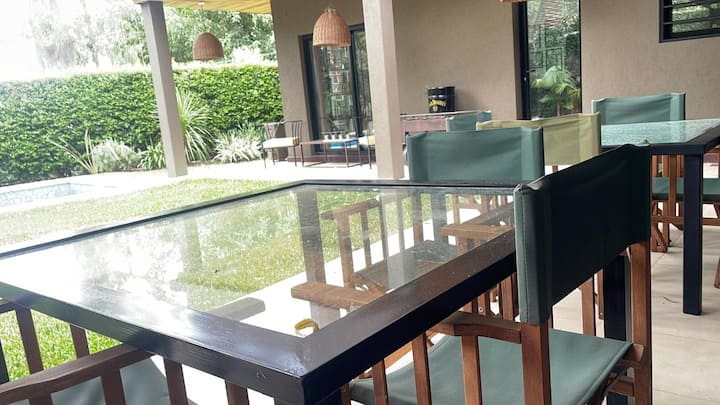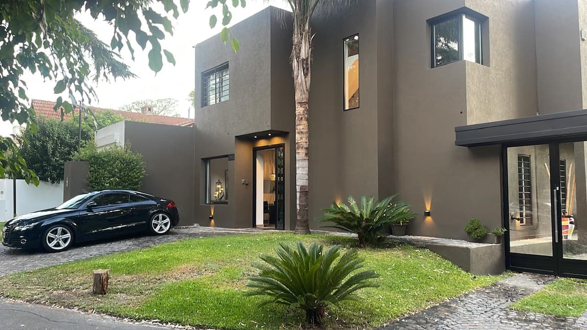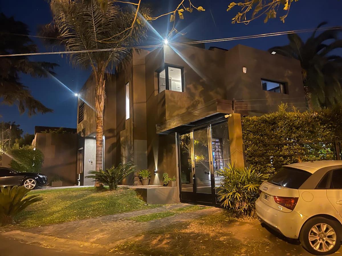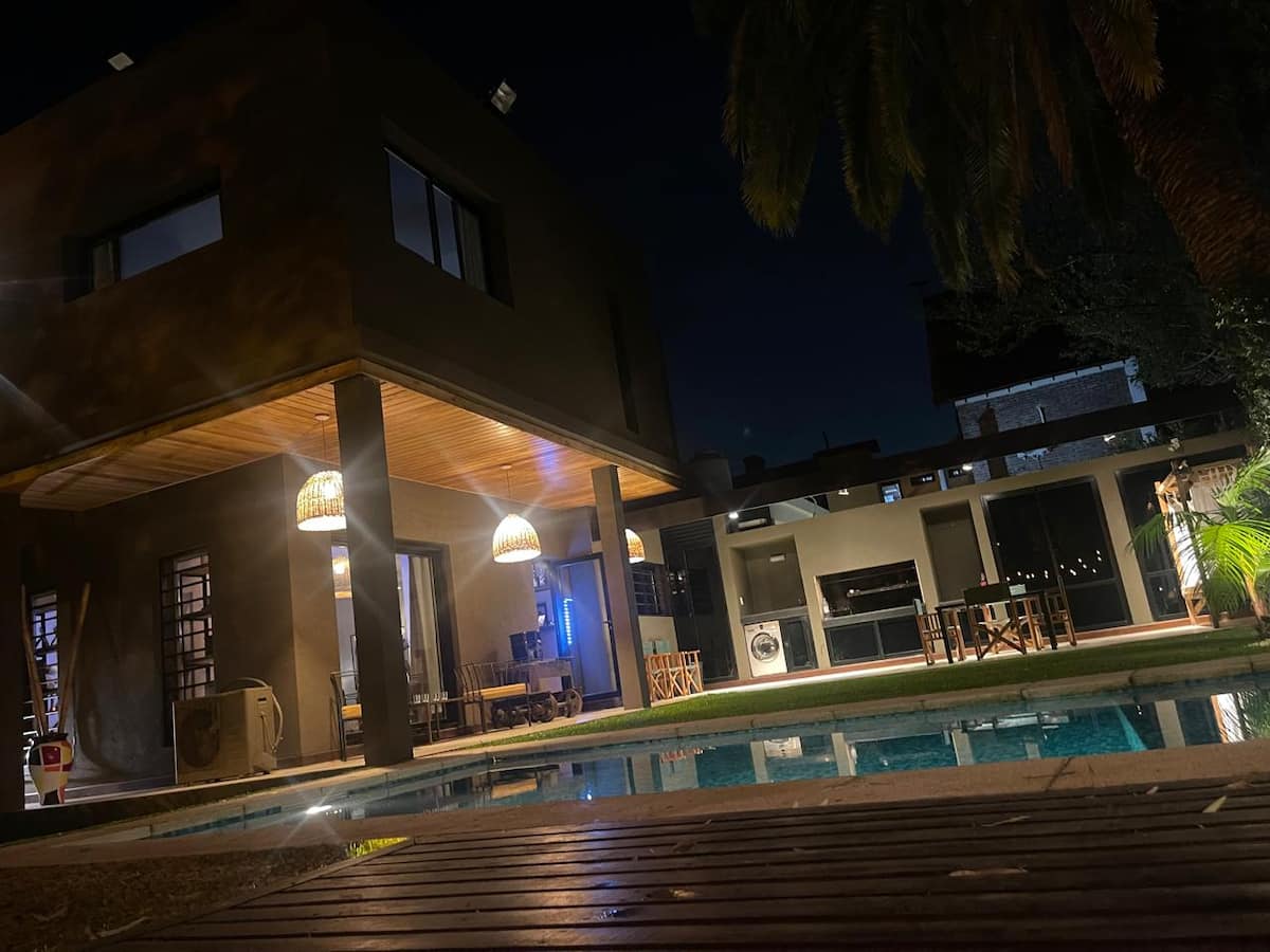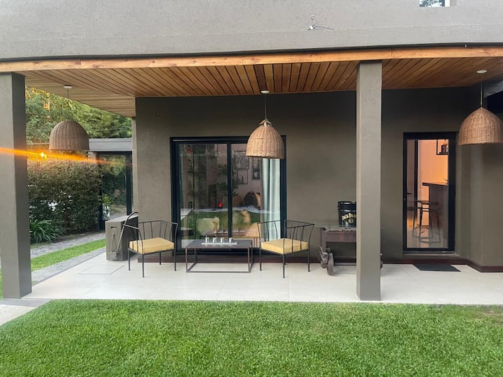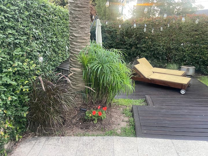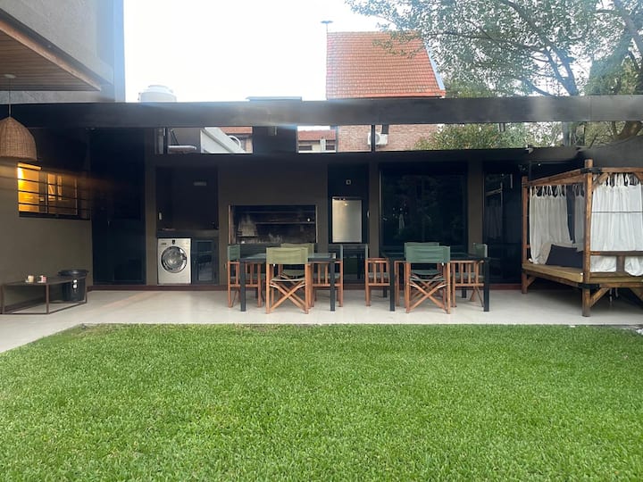 Three-bedroom apartment with 180 m² in Punta Chica. The property has a private garden with a pool, covered BBQ area and outdoor lounging, plus a walk-in setup. Each room includes Smart TV, split air conditioning and a desk area, and the main suite includes a Jacuzzi. Up to 6 people can be accommodated.