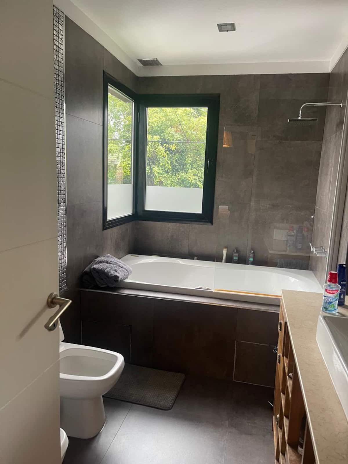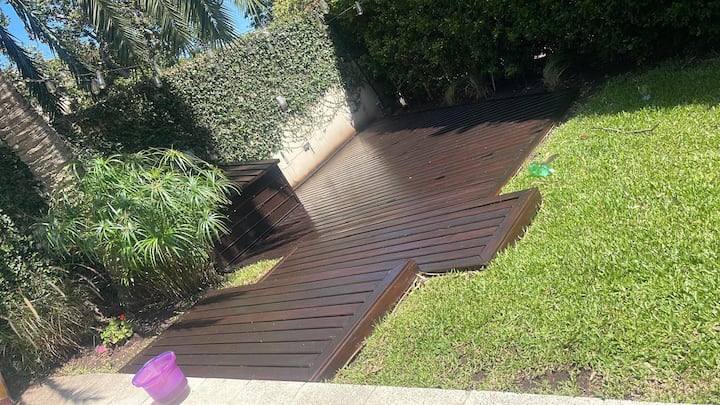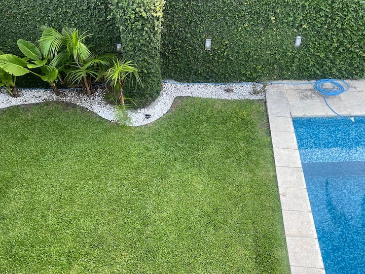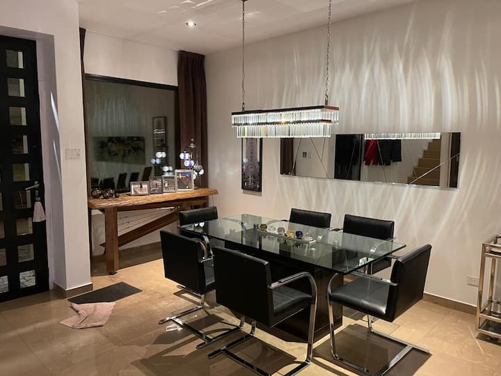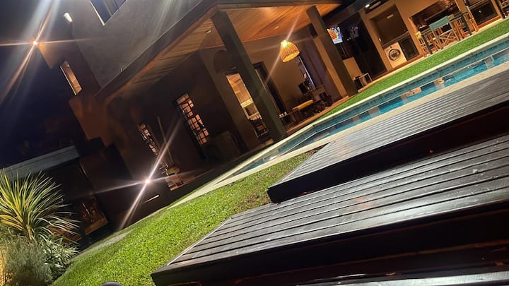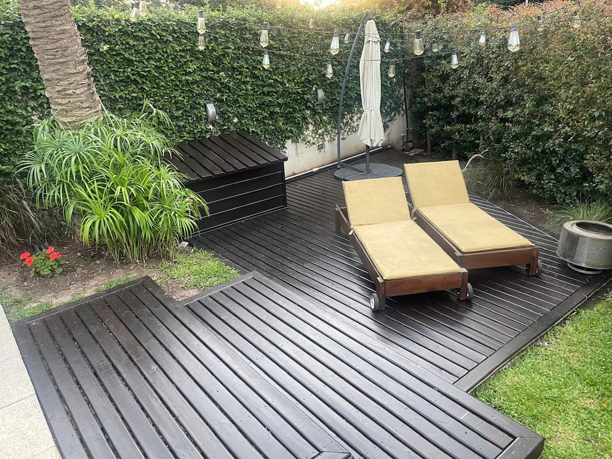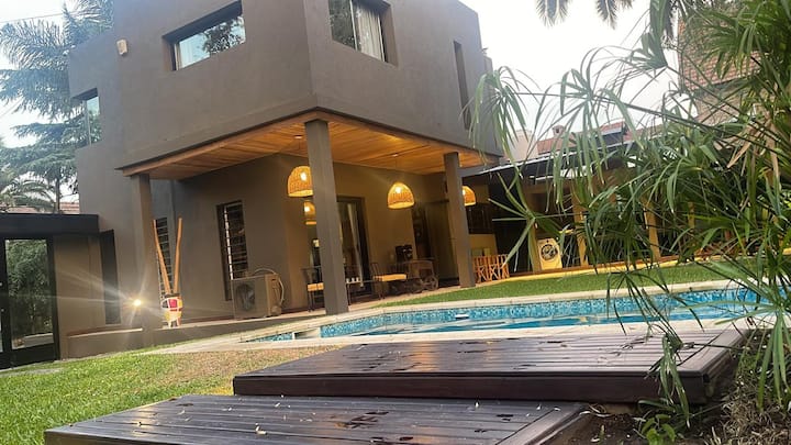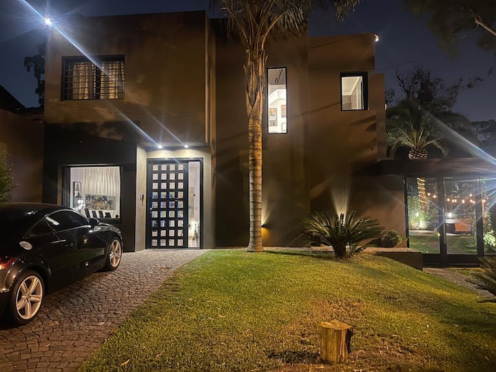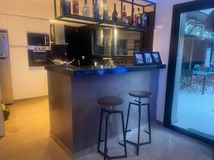 Three-bedroom apartment with 180 m² in Punta Chica. The property has a private garden with a pool, covered BBQ area and outdoor lounging, plus a walk-in setup. Each room includes Smart TV, split air conditioning and a desk area, and the main suite includes a Jacuzzi. Up to 6 people can be accommodated.