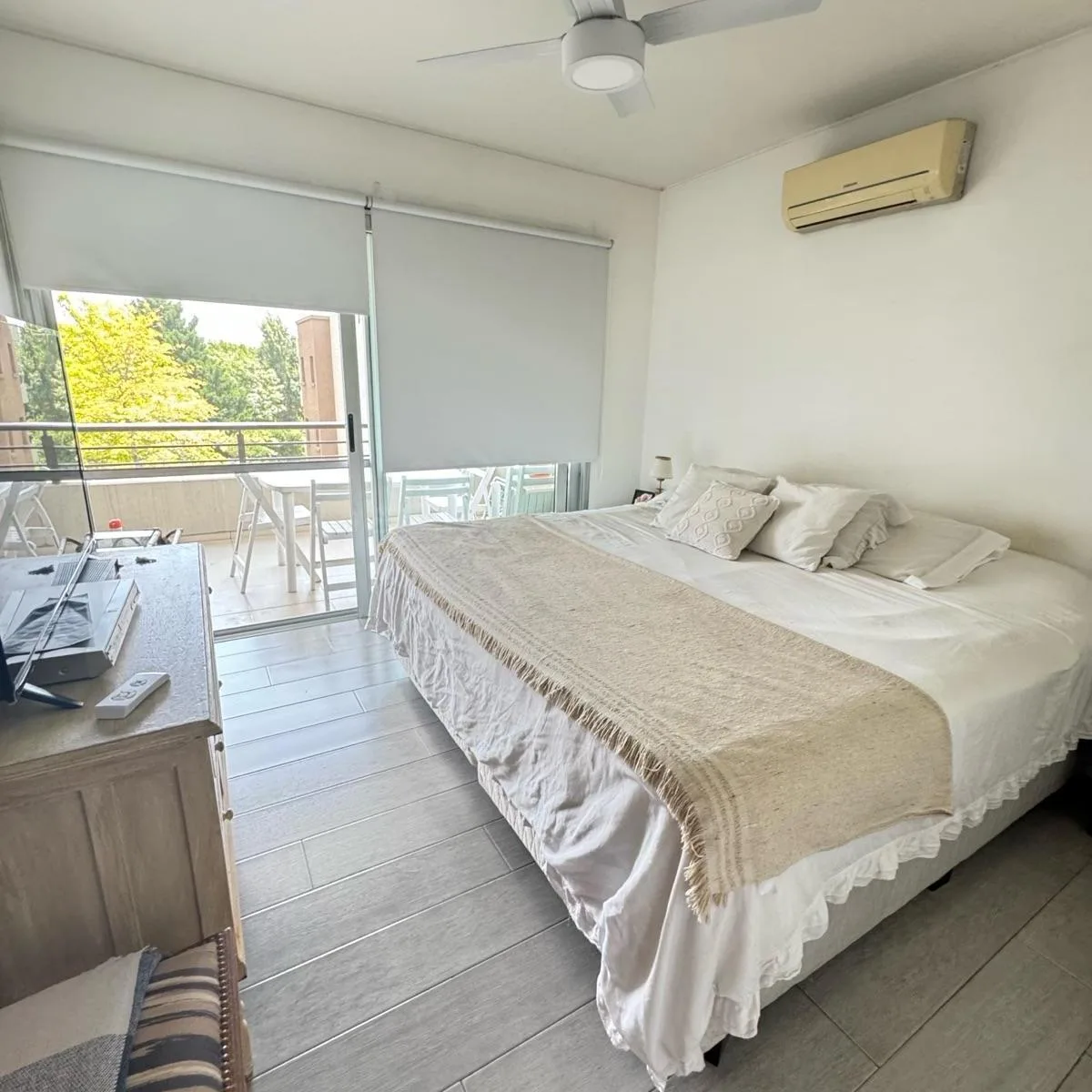 Semi-furnished apartment in Ayres Chico with 3 bedrooms, including an en-suite master bedroom with a walk-in dressing area. The layout includes a living-dining room and kitchen, plus 2 additional bedrooms with built-in wardrobes sharing a full bathroom. Heating is provided by an individual boiler and there is air conditioning in the bedrooms and the living-dining room; it also has running water. The price includes 2 fixed, semi-covered (assigned) parking spaces. The complex has 24-hour security,