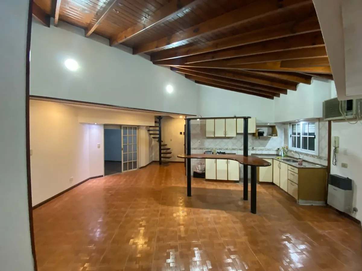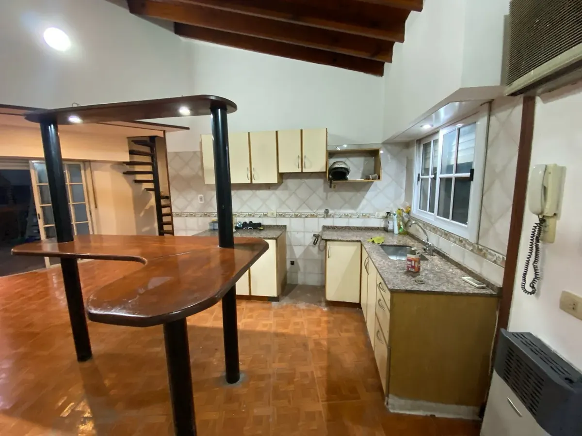 Four-room apartment-house on the first floor accessed by stairs in Villa General Mitre, street-facing on a corner with balconies. The kitchen is integrated into the dining area, with space for a refrigerator; there are 2 bathrooms on the main level and an additional room on the second floor with its own bathroom. There is a large internal patio with a grill and the property receives natural light throughout the day. Rent is updated every 3 months according to the IPC and the listing states there