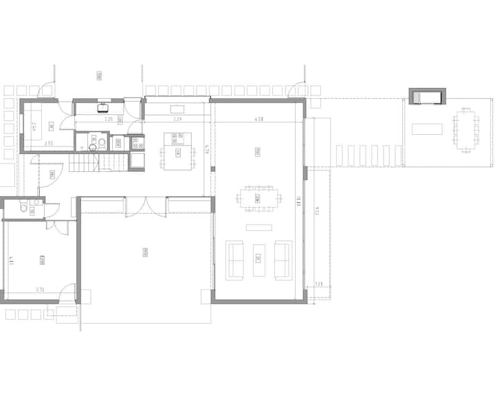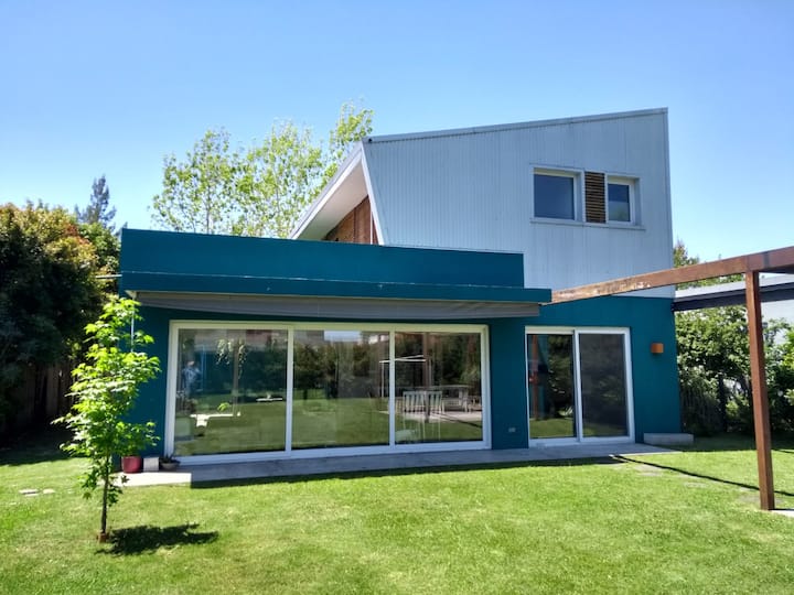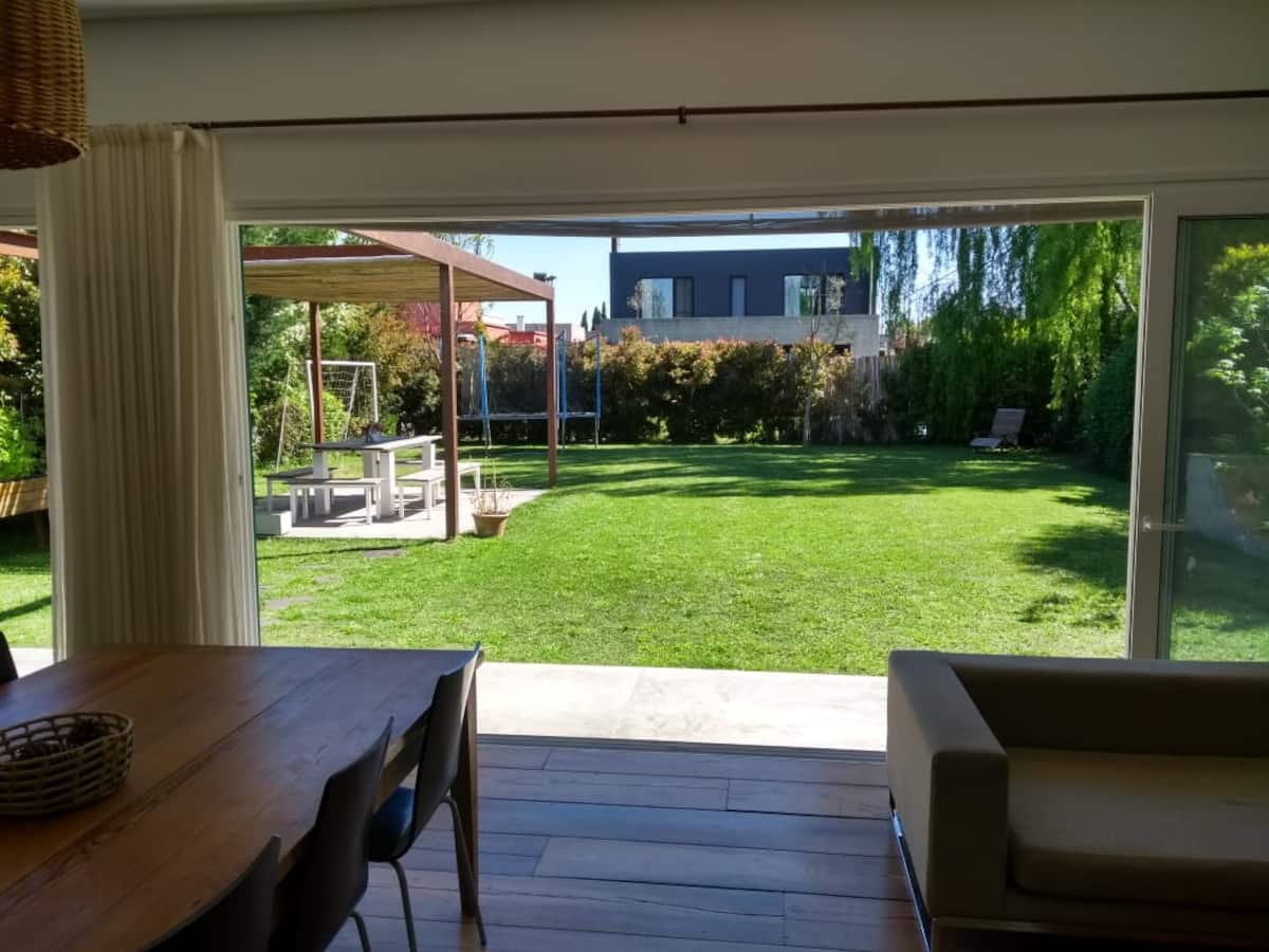 Modern house with 230 m² built area on a 650 m² plot within Barrio Cerrado in San Fernando. Single-storey living opens to the garden and an interior courtyard; it has a pergola with a grill and a desk area with a private entrance. Upper floor comprises 3 bedrooms and 2 bathrooms, one en suite with a dressing room. The property is in the hall of PA; the neighbourhood has a shared pool 100 m away, plus a clubhouse and a children’s games area.