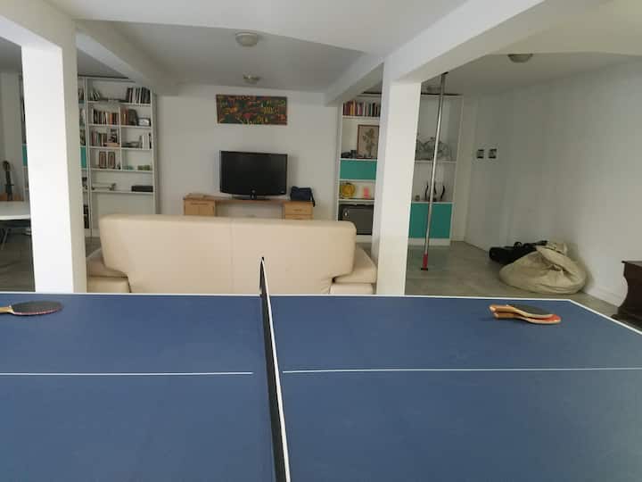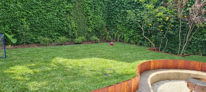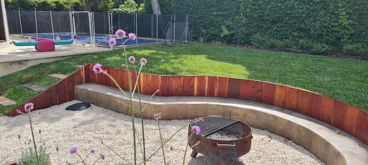 House with Nordic design in Acassuso, described as having large, connected living spaces. The property is protected by 24-hour security at the entrance. It is three blocks from the river and two blocks from Av. del Libertador, and includes a living-dining room, playroom, large garden, swimming pool, grill, mud oven, ping-pong table, trampoline and fire pit. Facilities also include a jacuzzi; mattresses can be added.