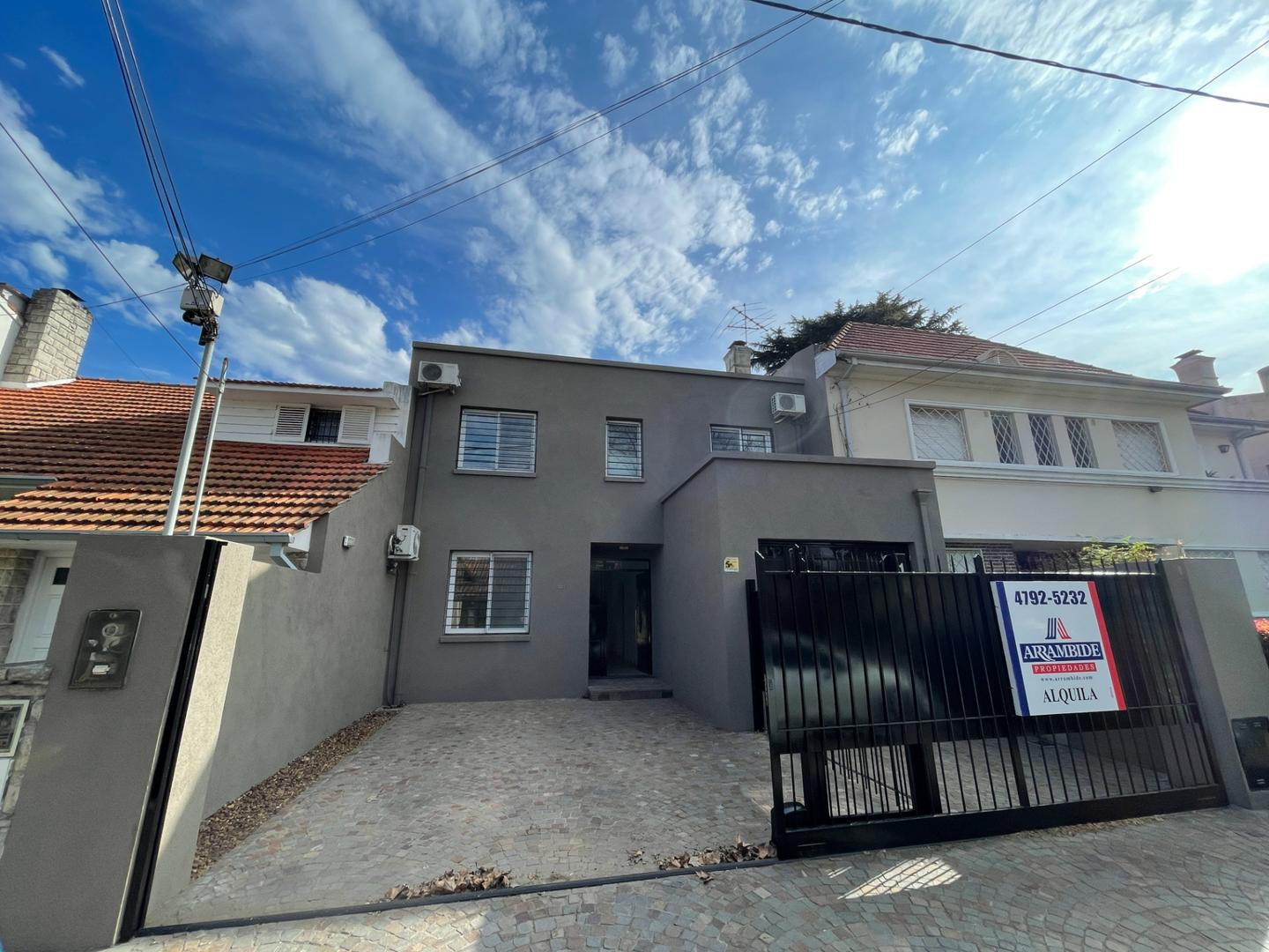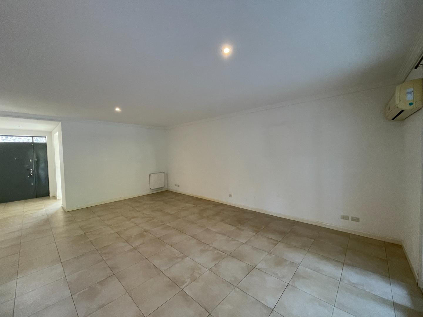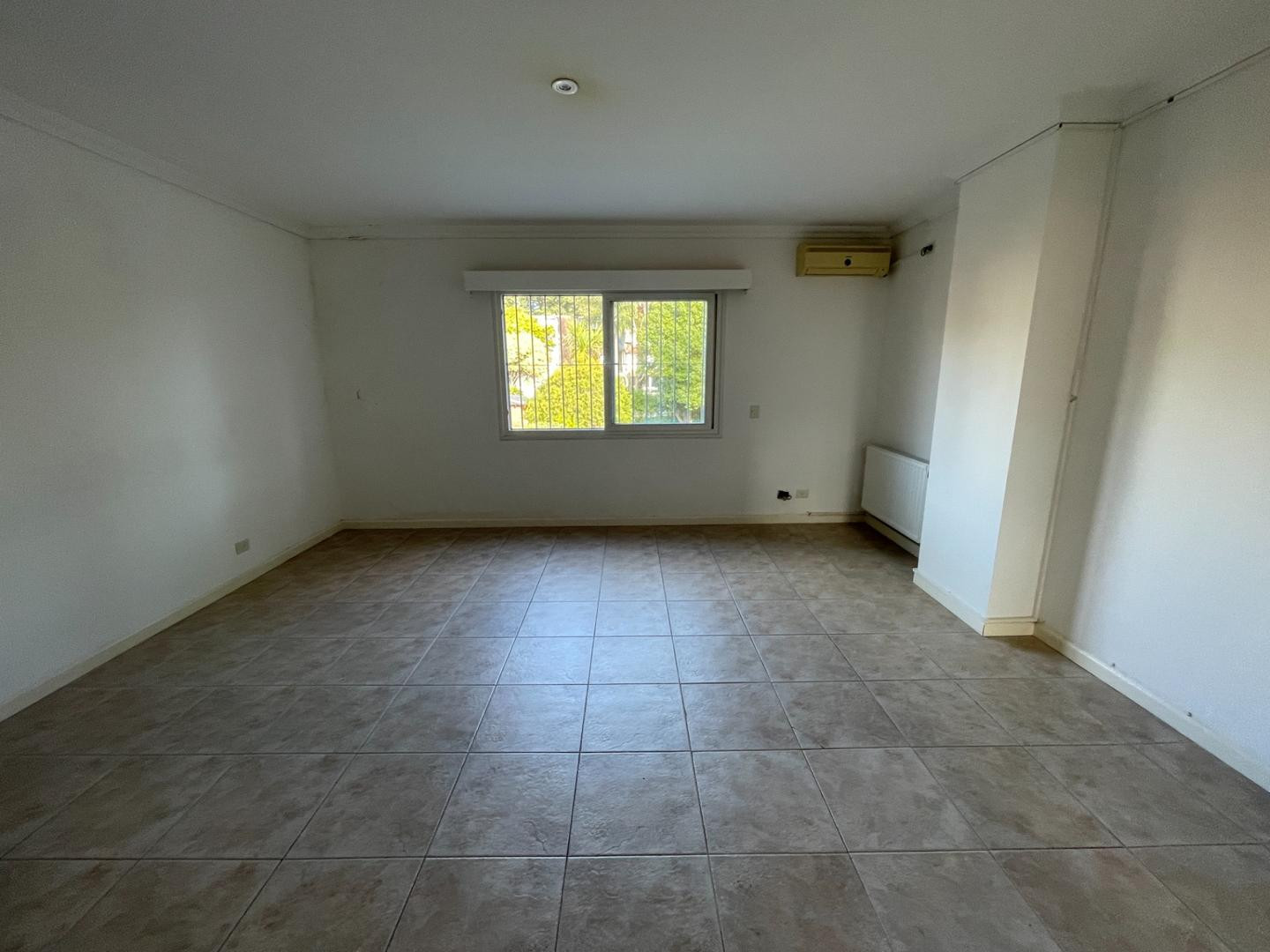 Ground-floor unit with a hall, full bathroom with shower, and a large living-dining room with a fireplace and access to a covered gallery. There is an office with built-in cupboards, a large kitchen with a dining area, a laundry area, and a garage for 1 car with an automatic lift gate plus an additional entry for 2 more. Upper floor: 4 bedrooms and 2 bathrooms, including a large en-suite master bedroom with a walk-in dressing area. The house has ceramic floors throughout, PVC double-glazed windo