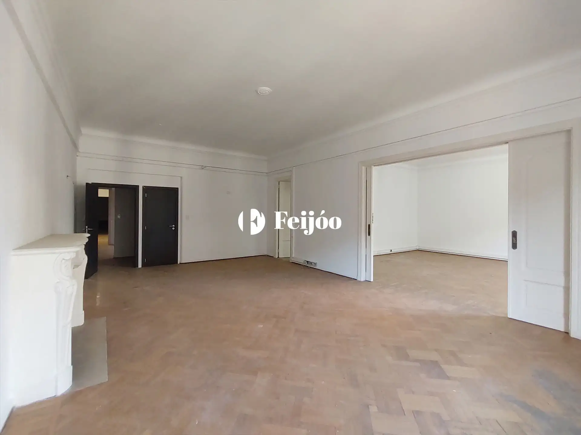 Apartment of approximately 350 m² in a category building, suitable for professional use and/or residential living. It has a large L-shaped reception room at the front, a living room, 4 large bedrooms, and 2 service rooms plus a wardrobe/laundry room. There are 4 bathrooms (2 full, 1 toilet, and 1 service) and balconies at the front, central and courtyard-facing. Building fees include AySA.