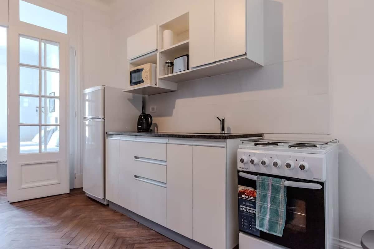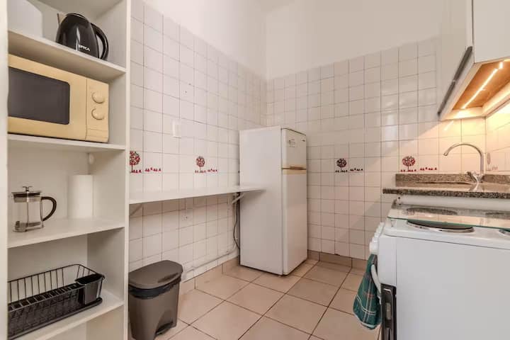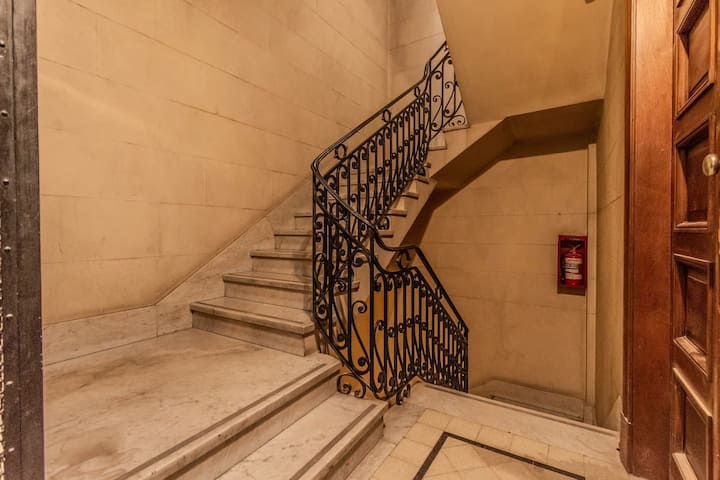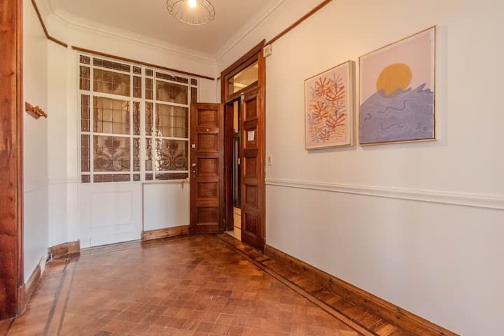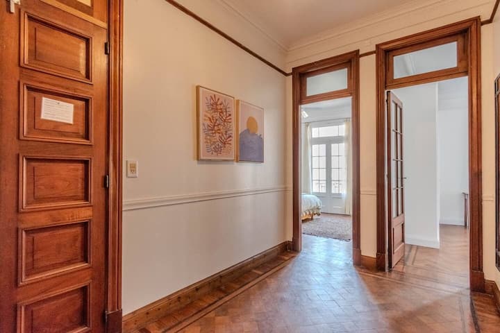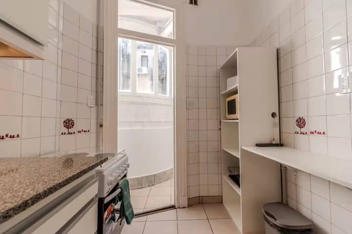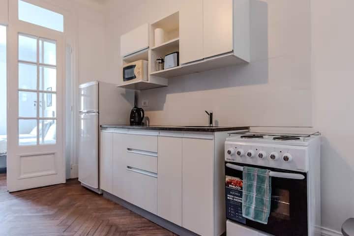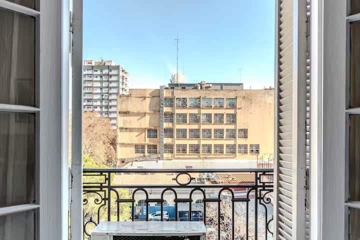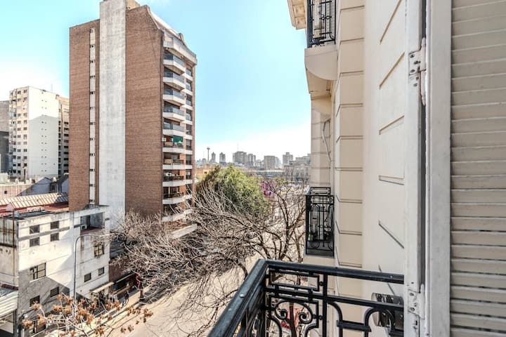 Two separate apartments on the same floor in Balvanera, with capacity for 8 guests in total. Each unit has an equipped kitchen-dining room, a full bathroom, a Smart TV, and options of double and single beds; one of the units has a small balcony. The two apartments are for exclusive use by guests and do not share spaces with other tenants, one block from Plaza Miserere and the Plaza Miserere subway station (Line A).